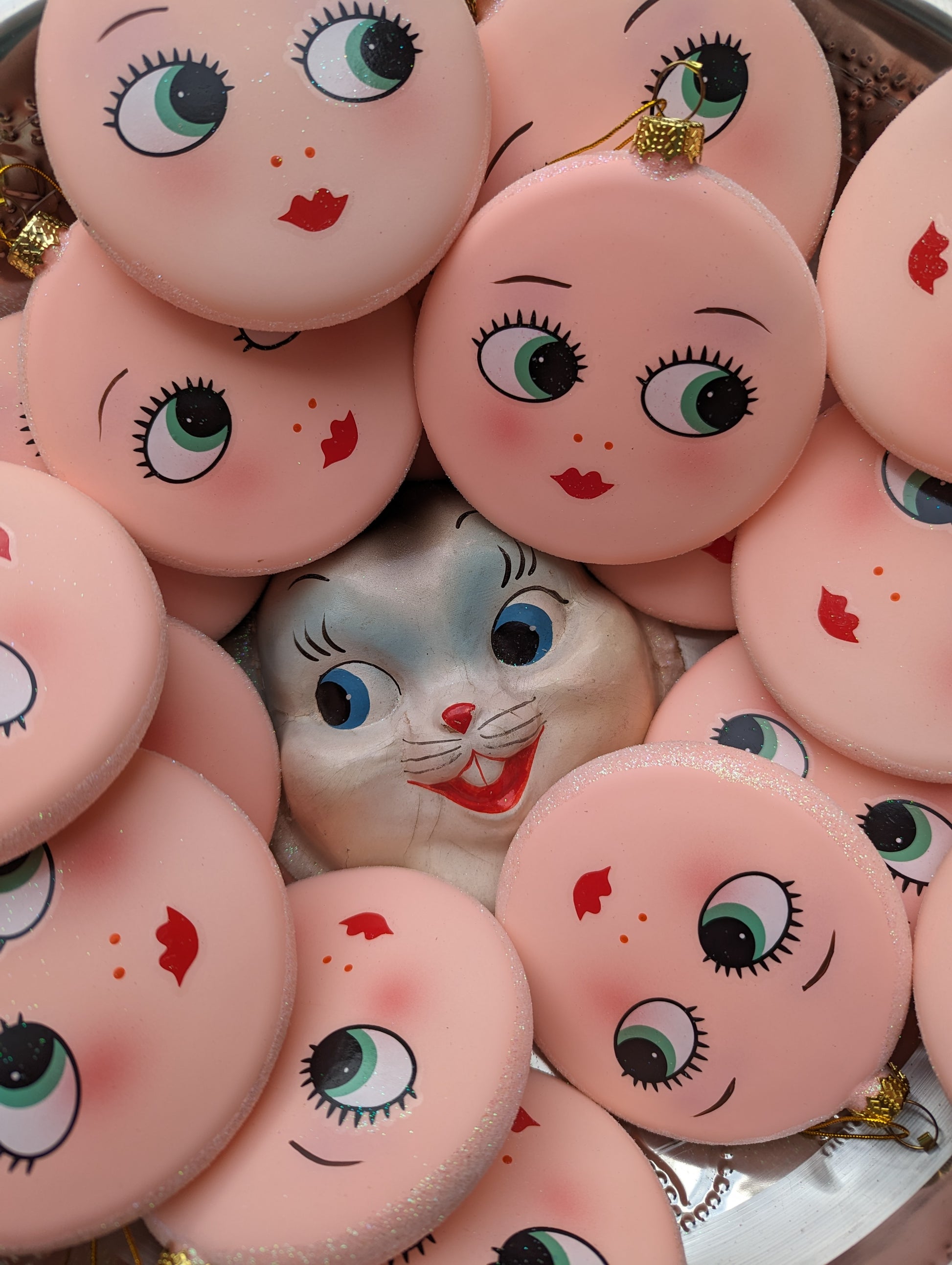 Based on the cloth and celluloid doll face used in dollie production from the 50s!