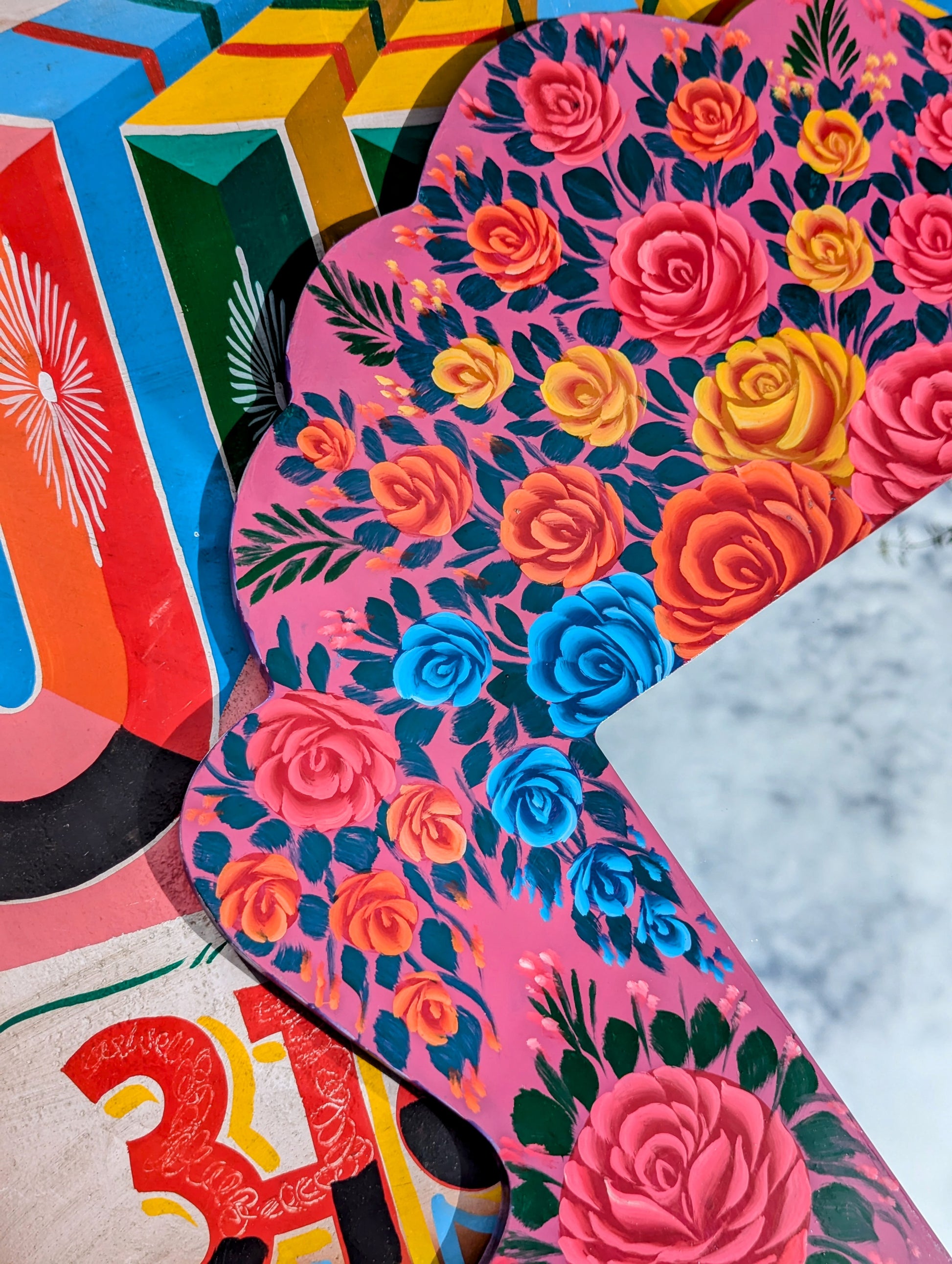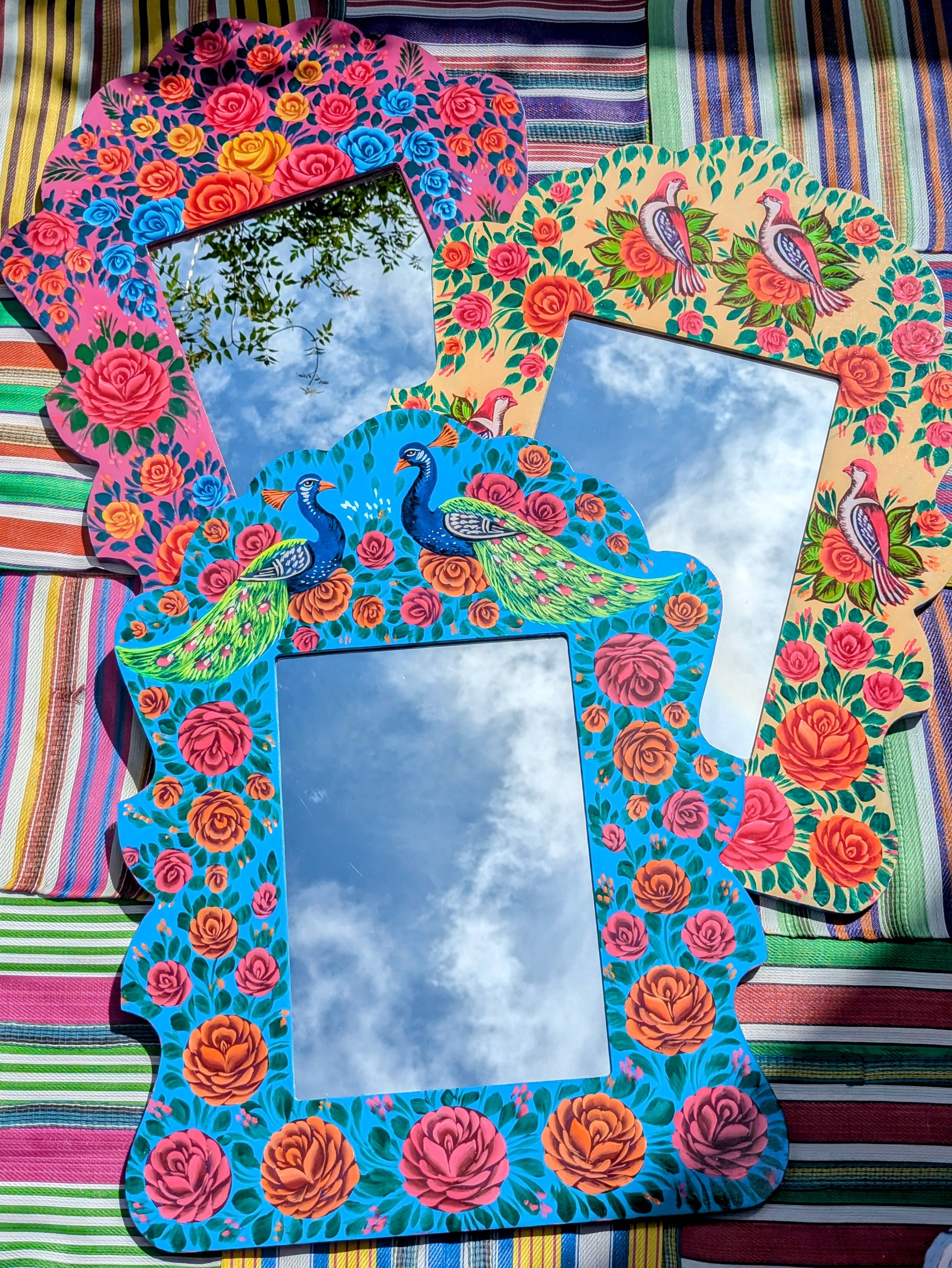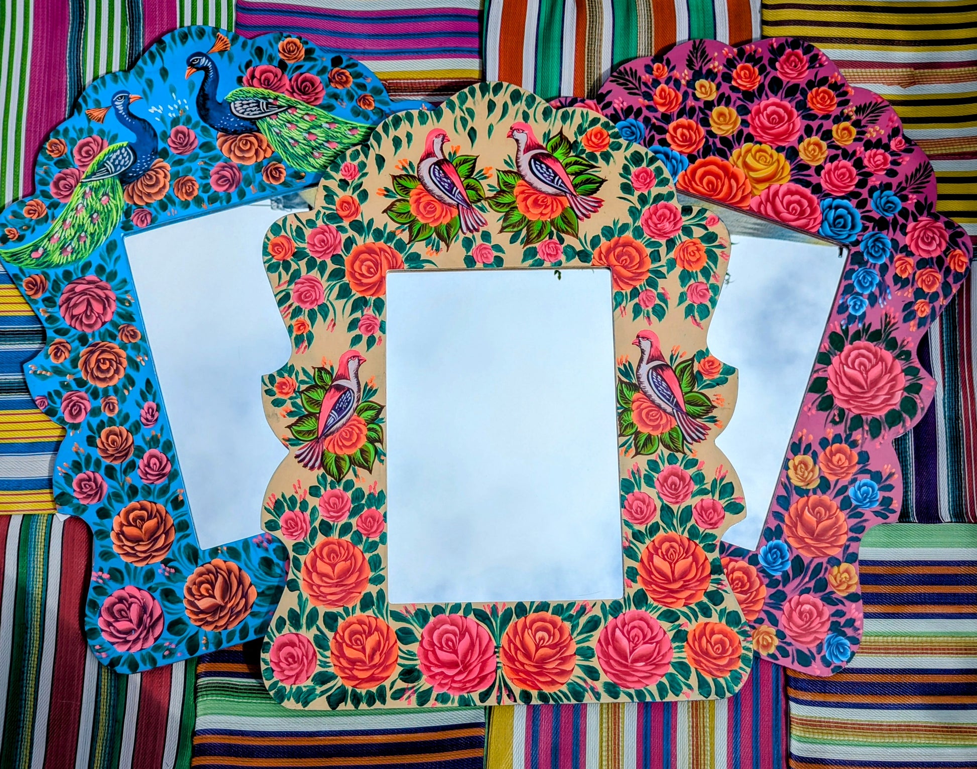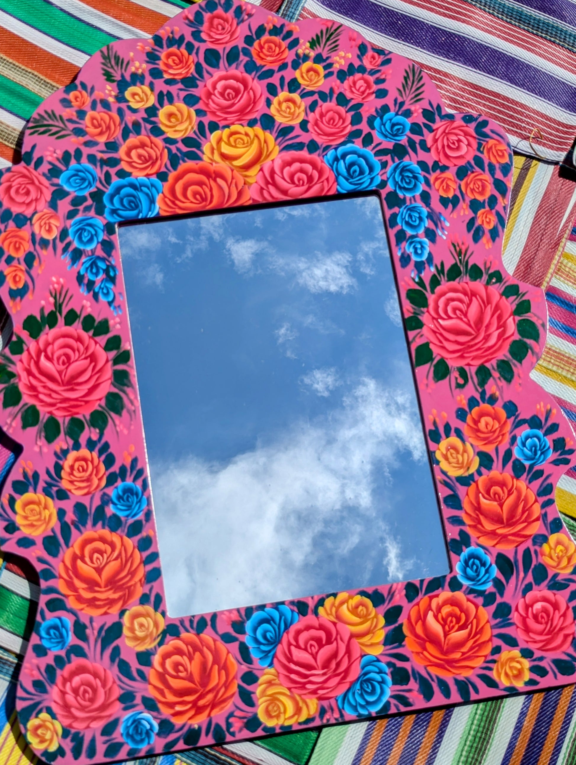 Stunningly handpainted in enamel paints by the artists that paint and decorate Indian highly decorated trucks, these large mirrors frame you in the best and brightest full bdata:text/mce-internal,rte__editor,Stunninglylown roses!!