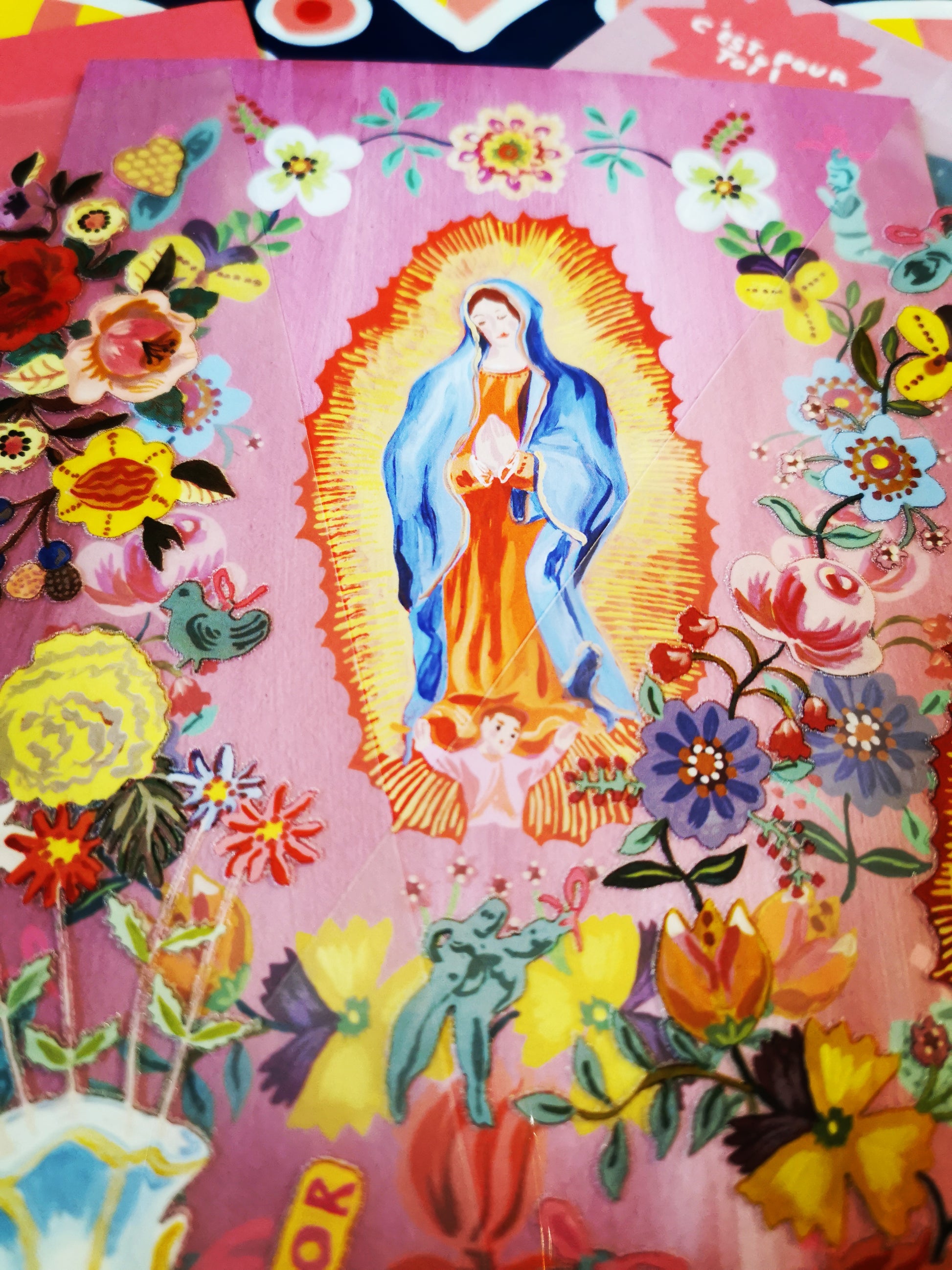 Big,beautiful Guadalupe card and transfers.