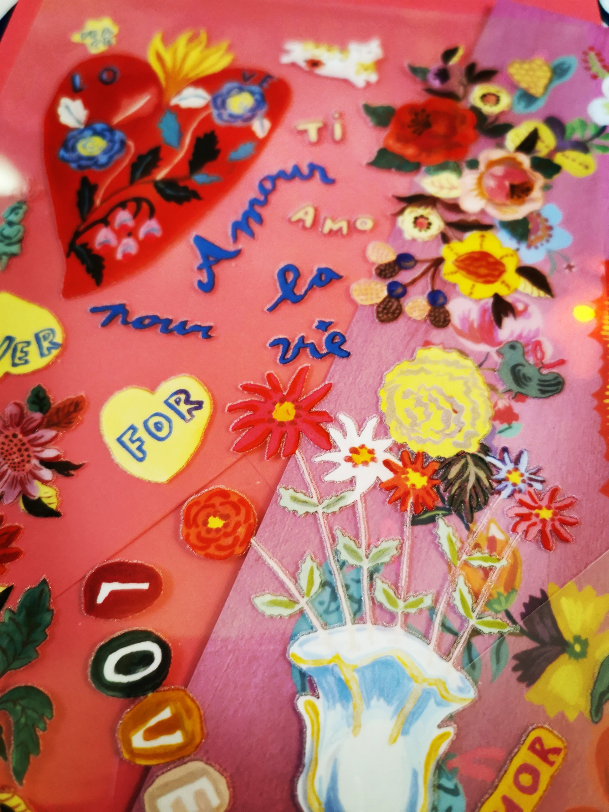A fabulous card for a Nathalie Lete fan!, two sheets of transfers with a large postcard. The sheets of designs can be ironed onto fabric, t-shirts, denim or baby gros to decorate!
