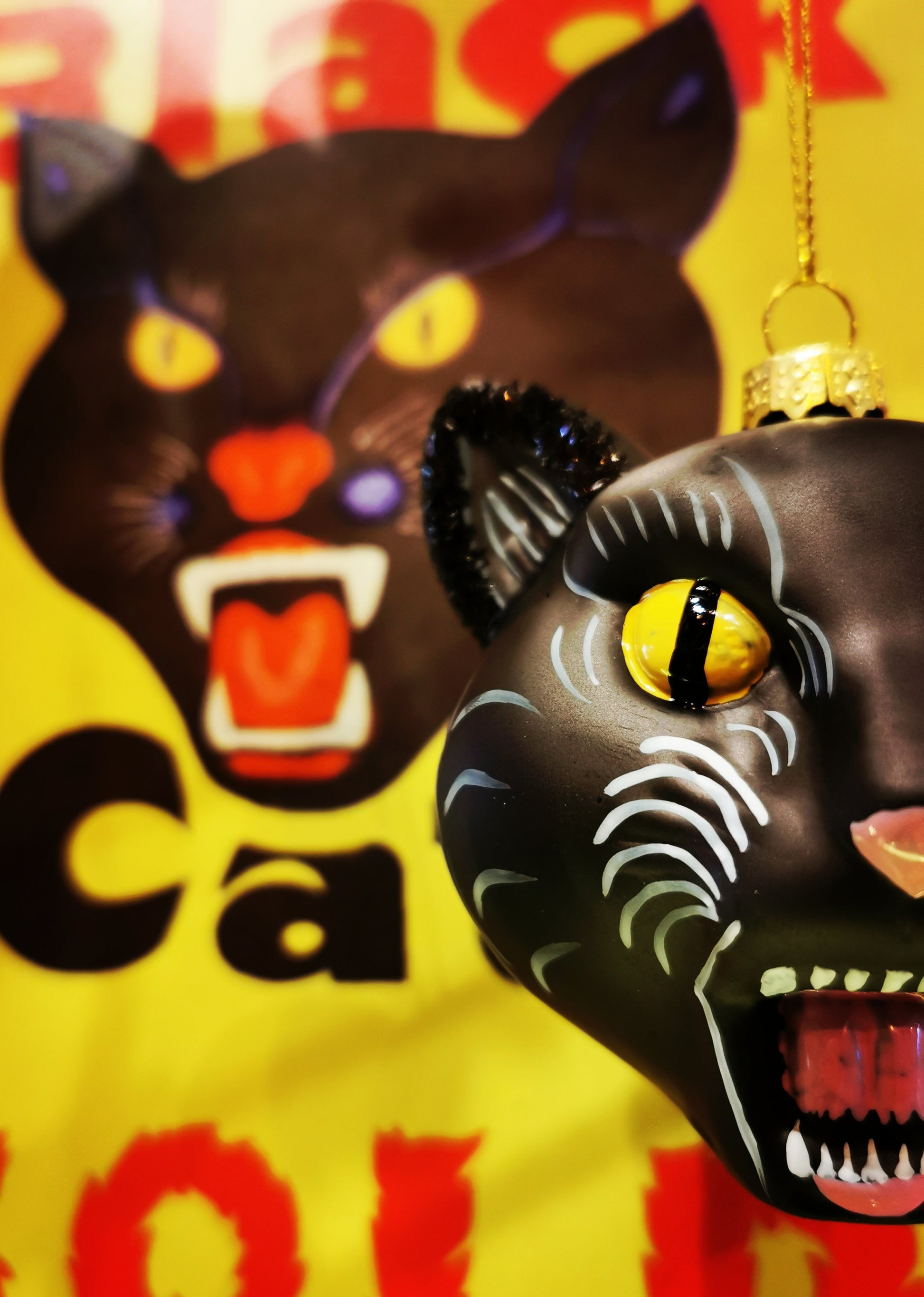 Classic Fireworks fierce Black cat in glass and glitter form!!
