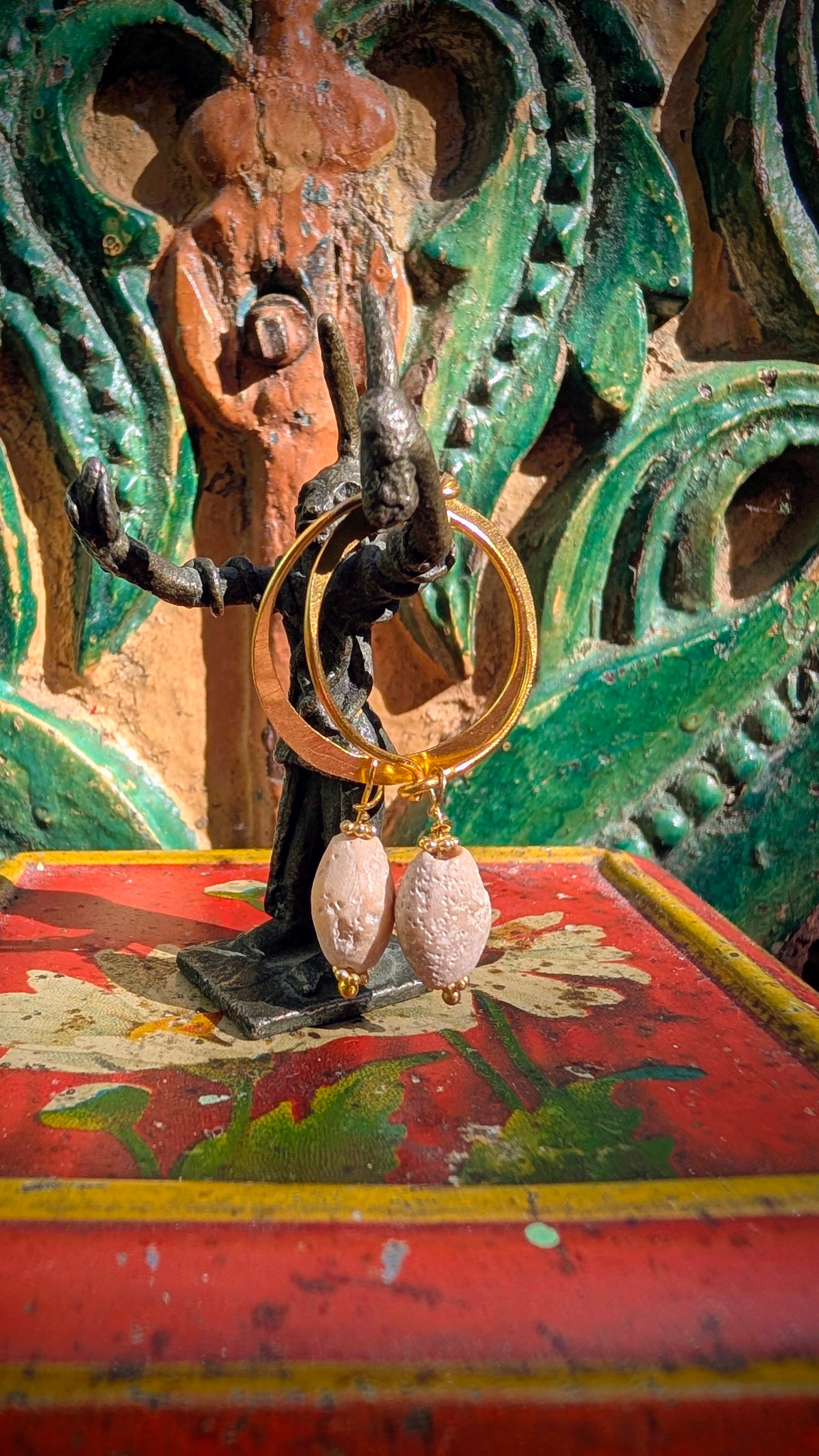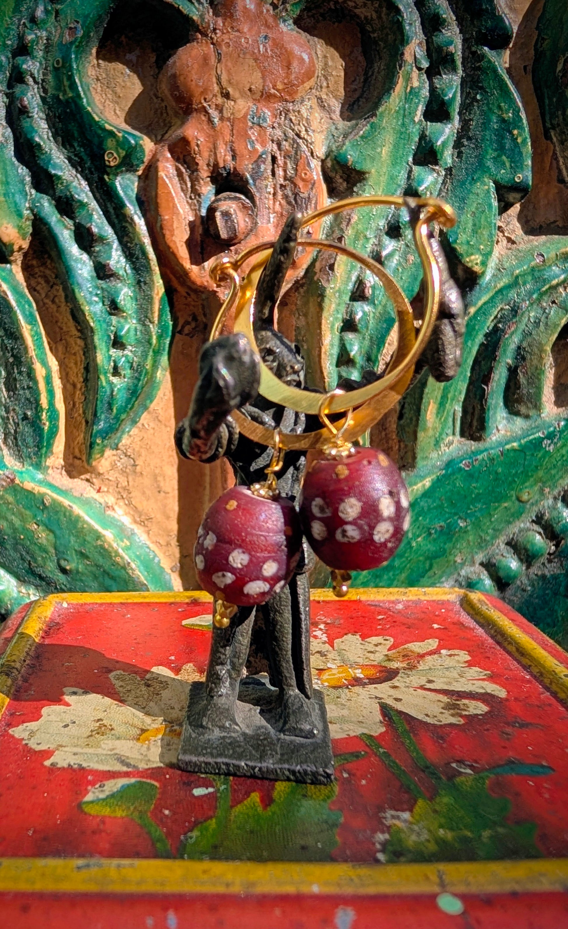 A blackout mix up using beautiful antique African trade beads on modern handmade gold plated silver hoops to wear every day!