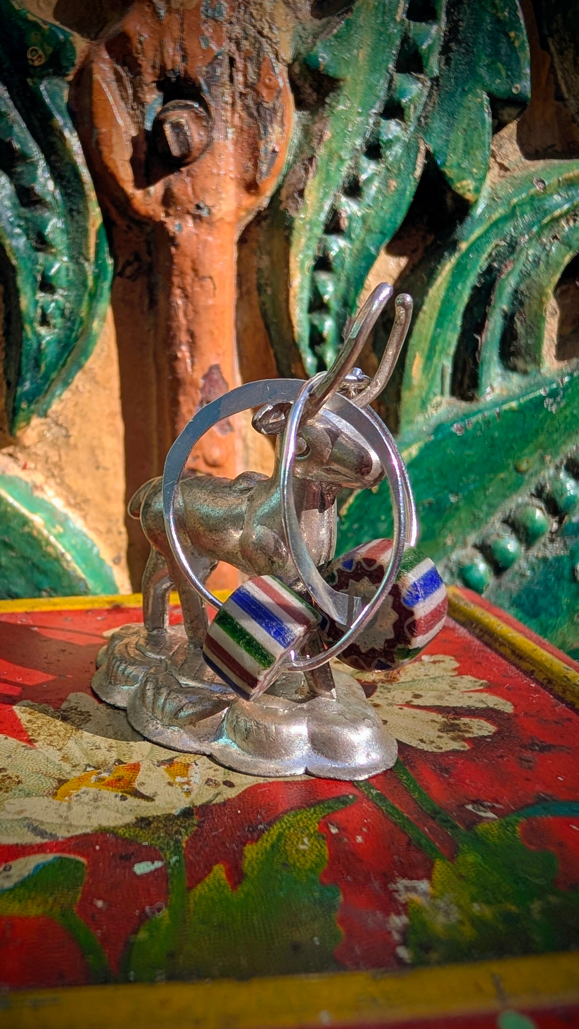 Beads include antique Russian blues, Venetian stripes and excavated stone.