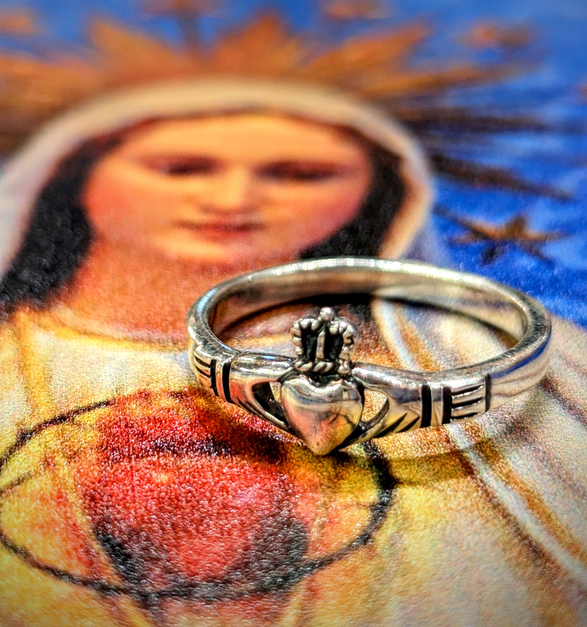 Traditional Claddagh rings, the hands signify friendship, the heart signifies love, and the crown is a symbol of loyalty. Together, these virtues form the perfect relationship: one based on friendship, love, and loyalty.