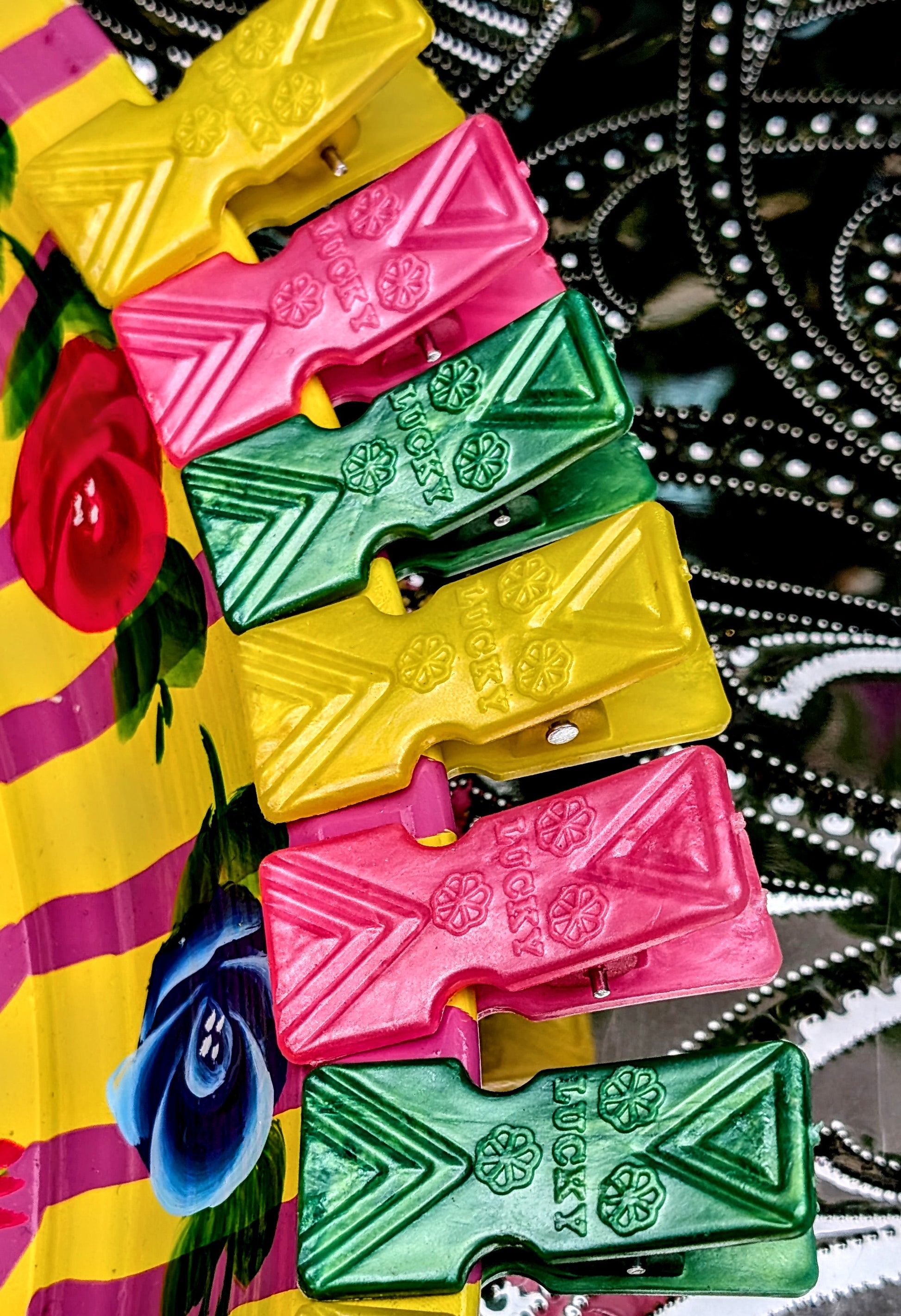Chunky bright, pearly pegs with flowers for luck! These are great for clipping all of your open packets shut in the cupboard, clipping up posters, washing on the line and a whole manner of other uses! 10 pieces per pack.