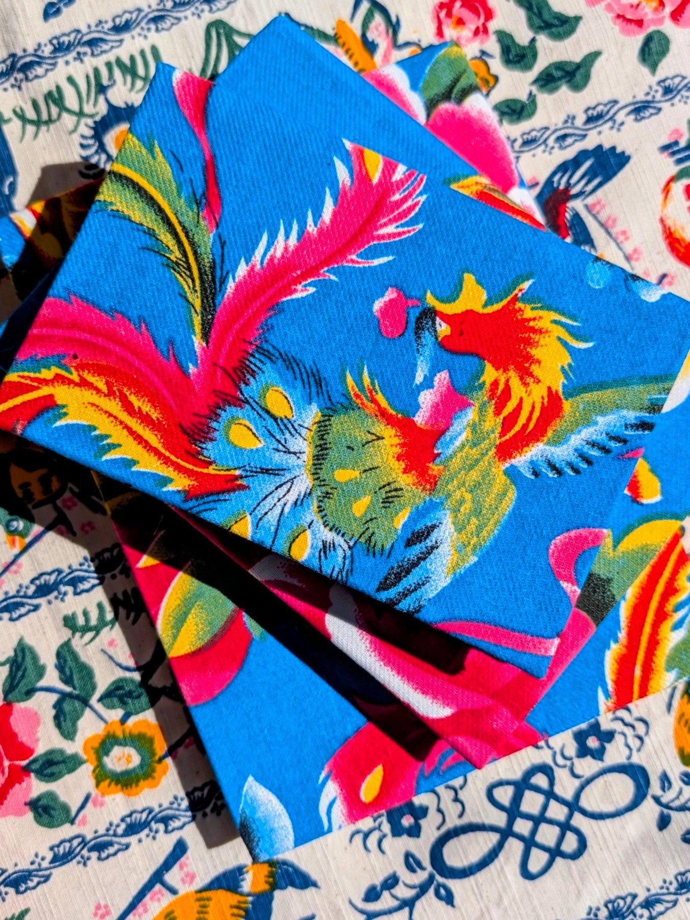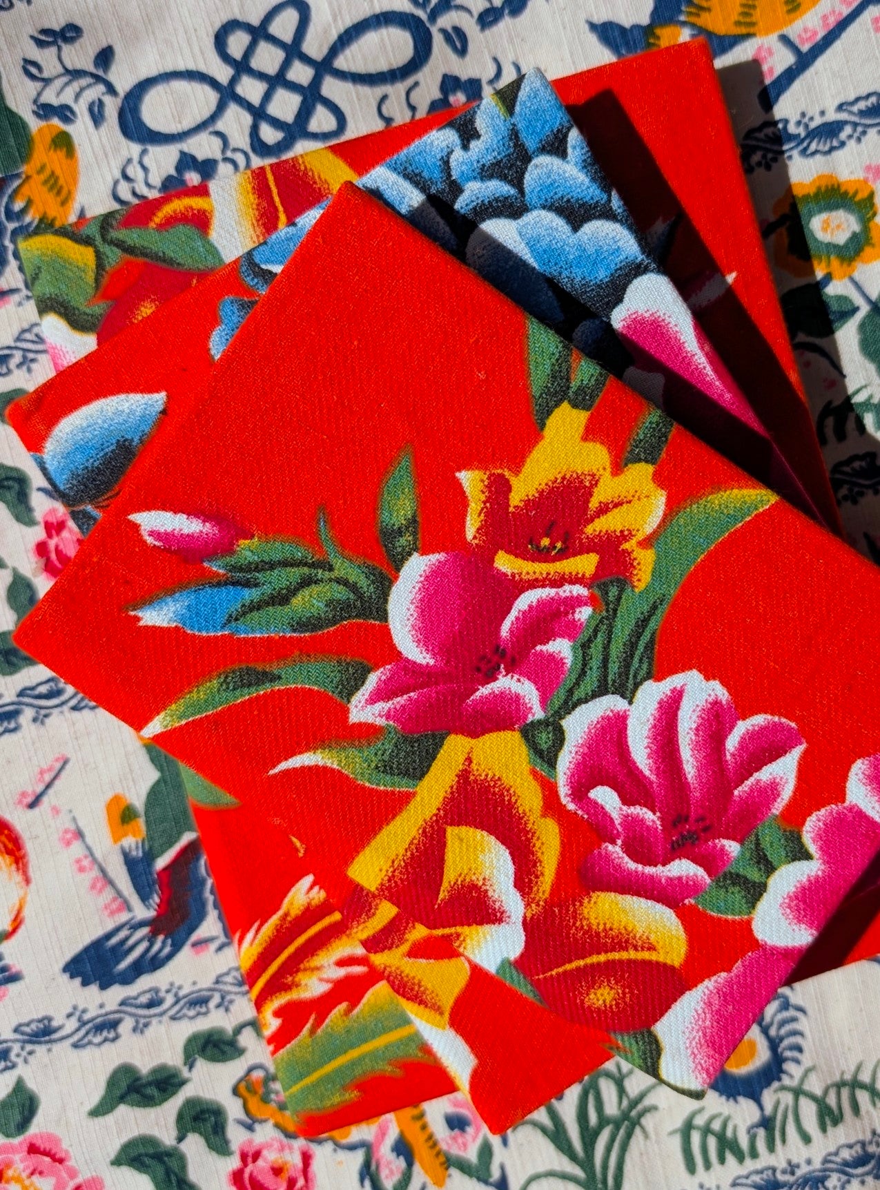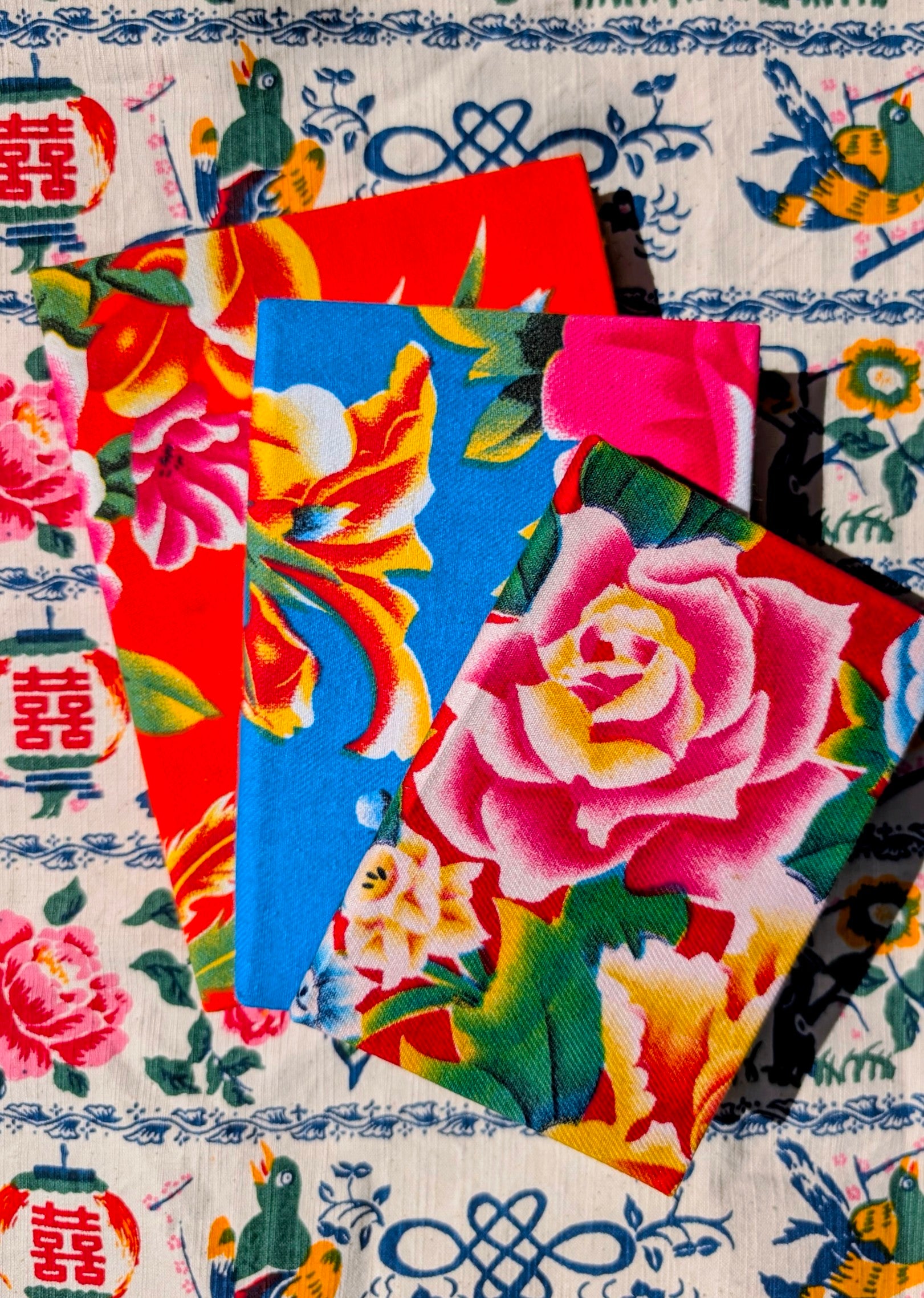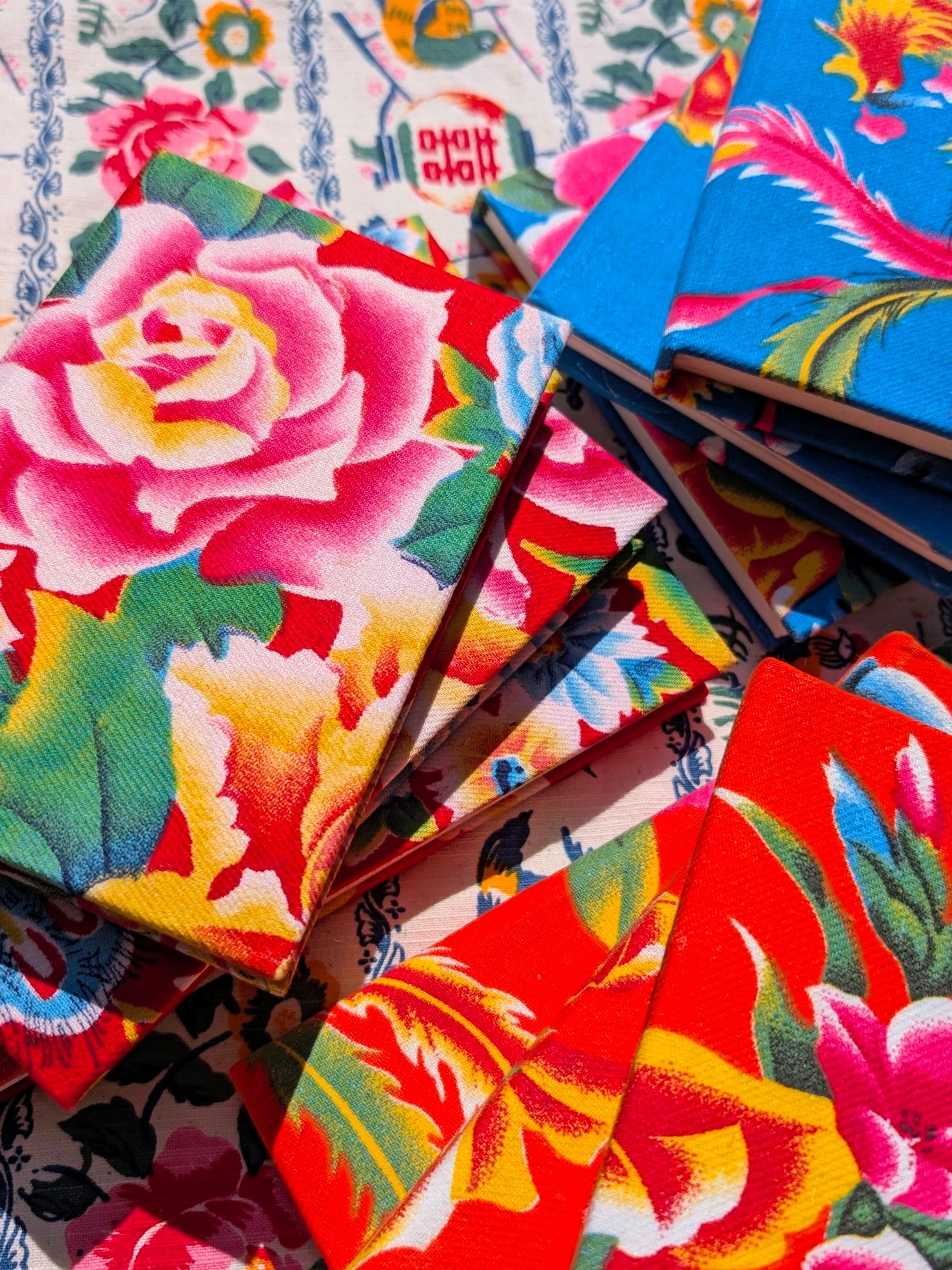 Handmade hardback rag paper notebooks - peony fabric