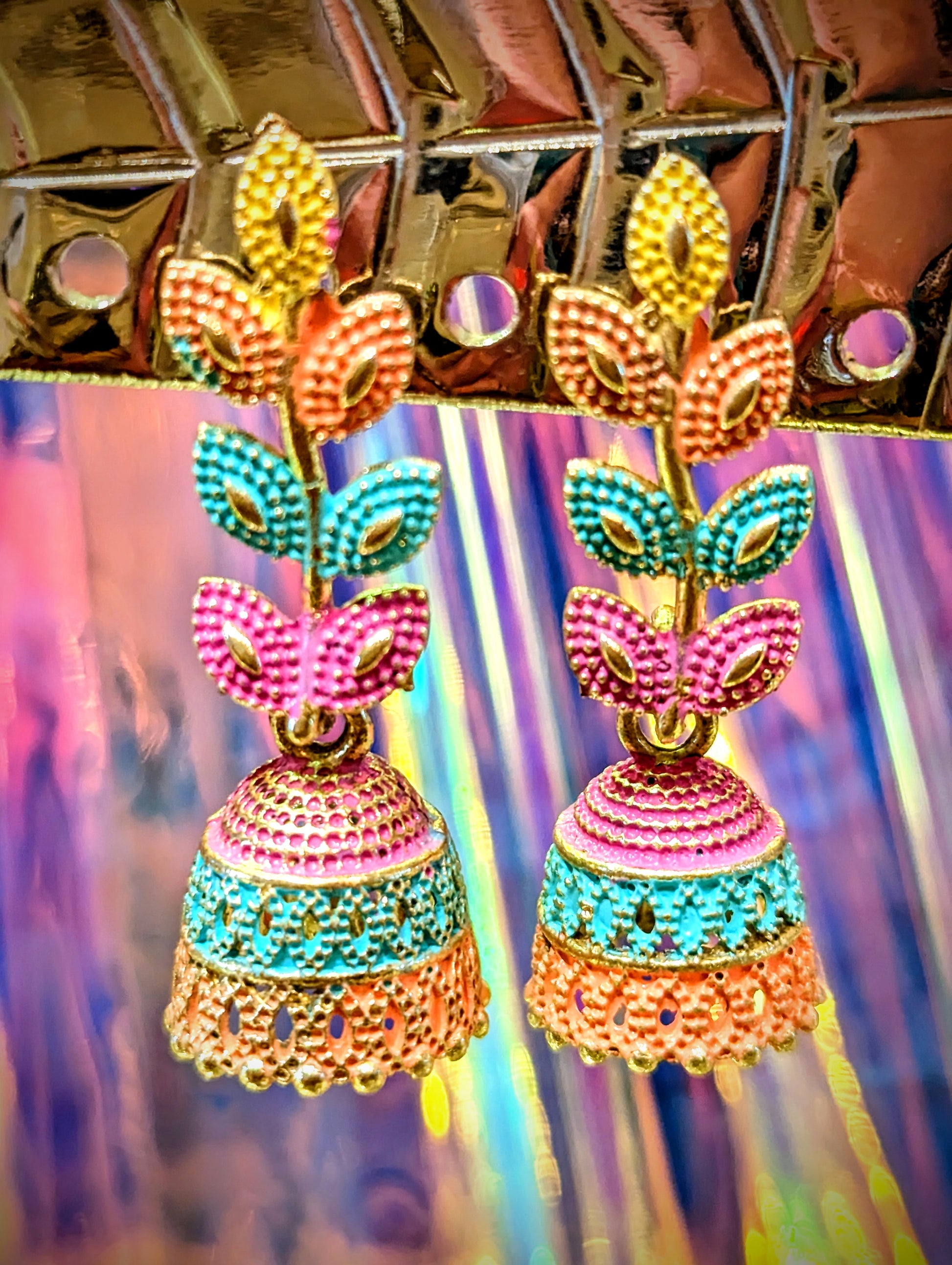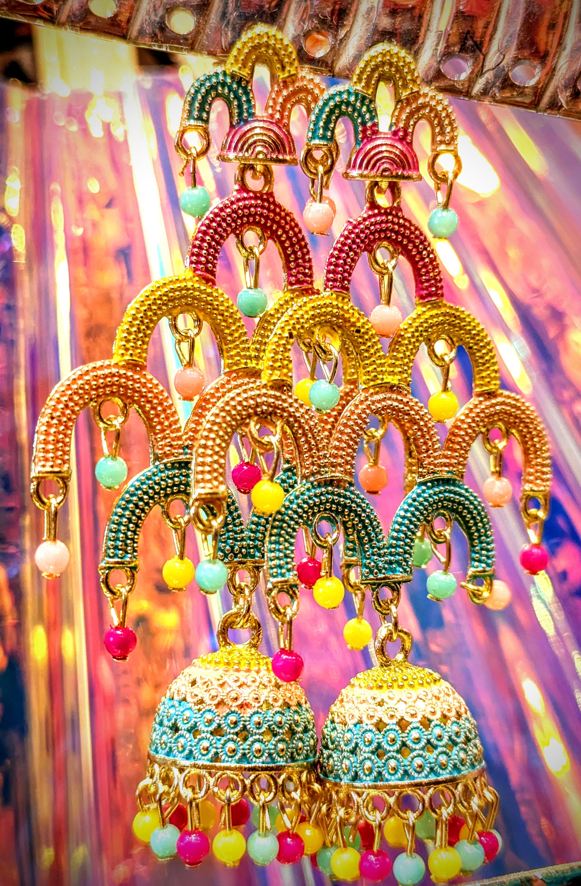 Rajasthani tribal jumka earrings rainbow upgrade, perfect for festival season!