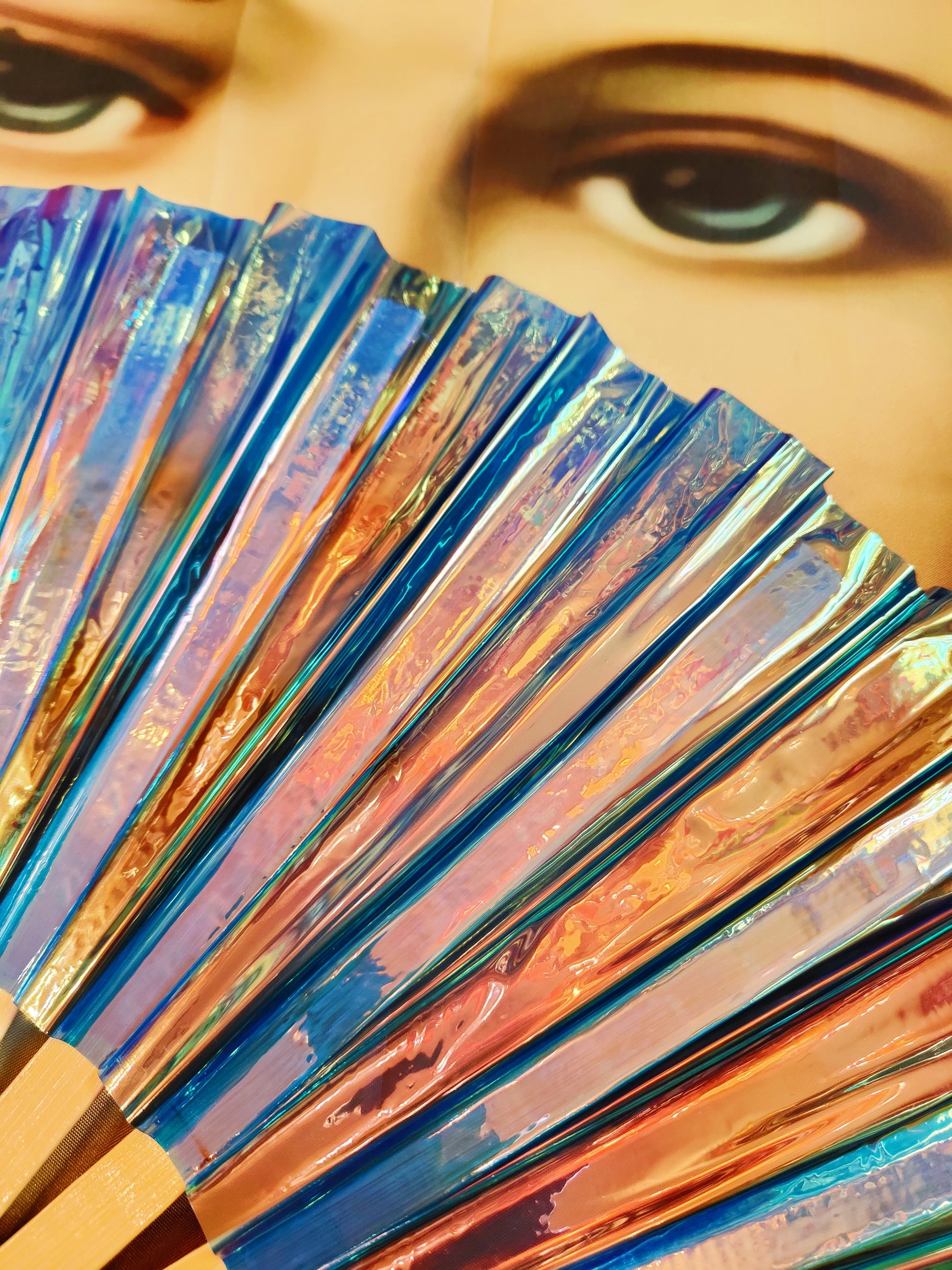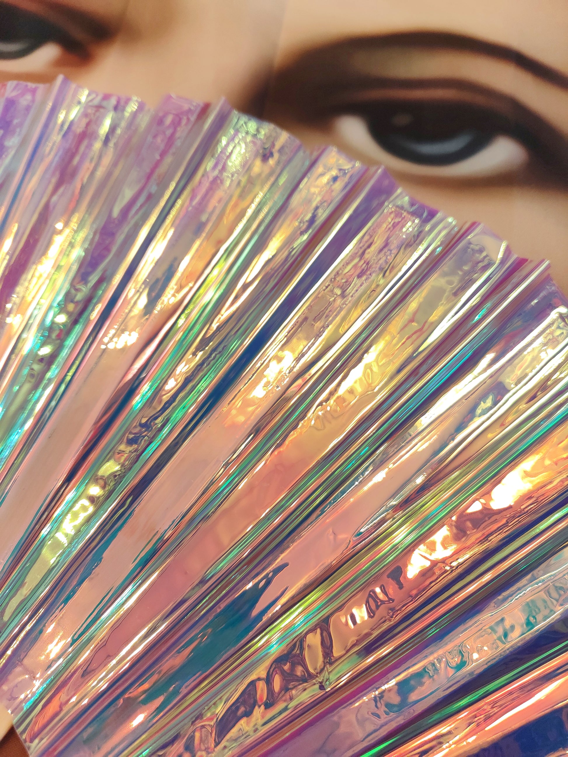 Big, glowing, beautiful iridescent fans,for dancing, parties, festivals and glam steamy menopause moments!!