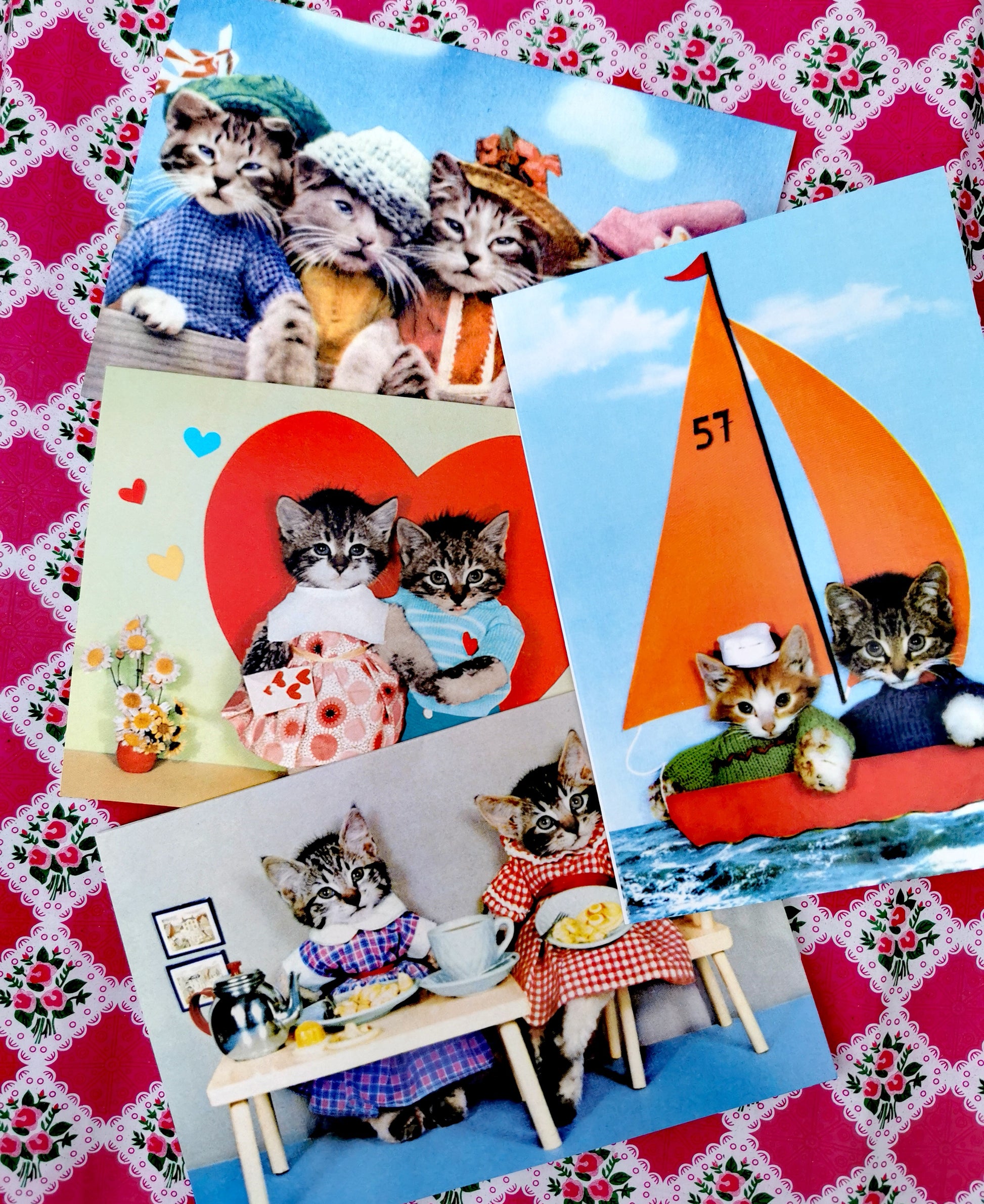 Vintage photos of dressed up kittens greetings cards set, a selection of our fave cards to send a bit of joy!!