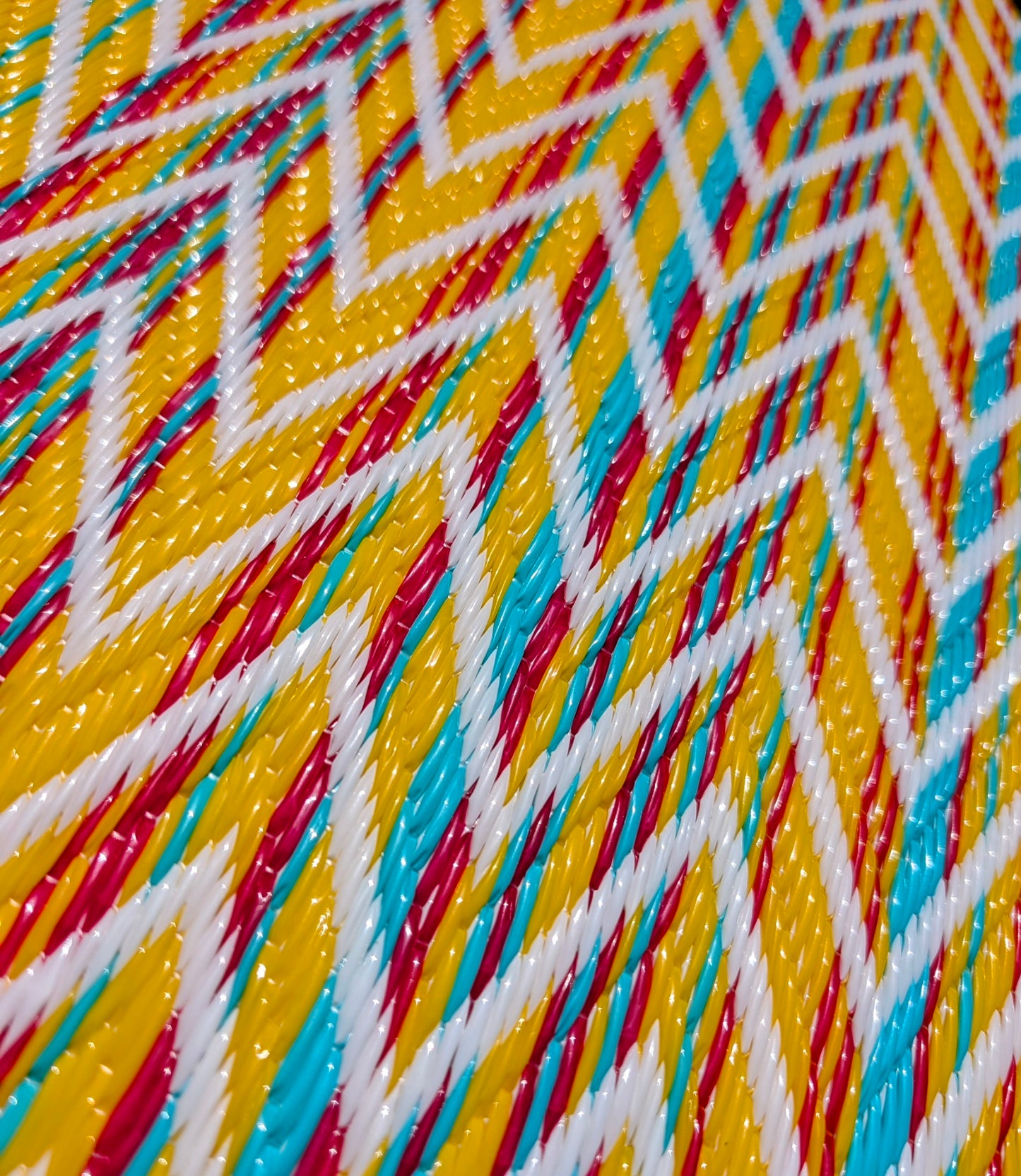 Lovely graphic floor mats made in Senegal from recycled plastic and are great in the home, garden or to chuck in the back of the car and take to the beach!.