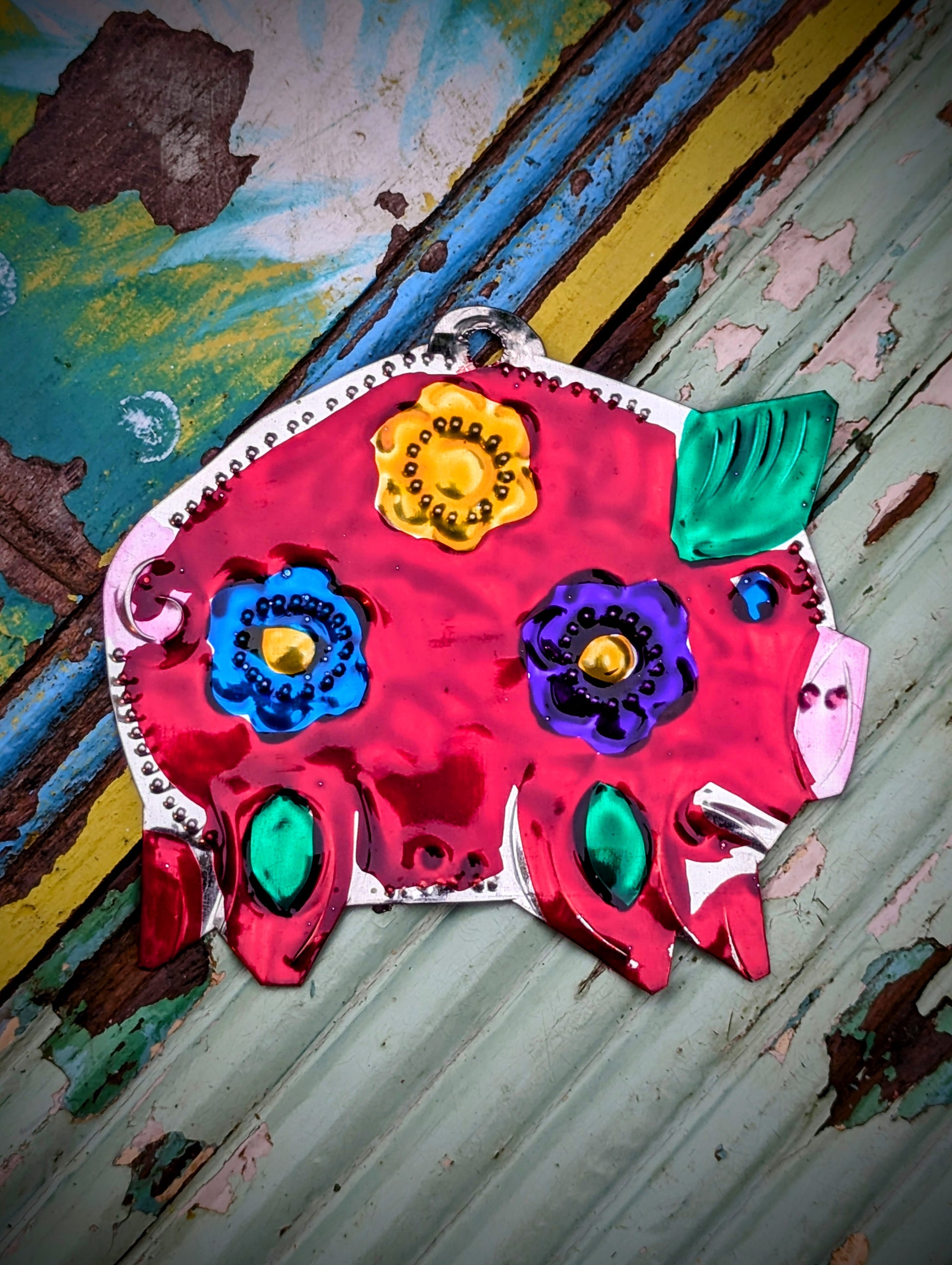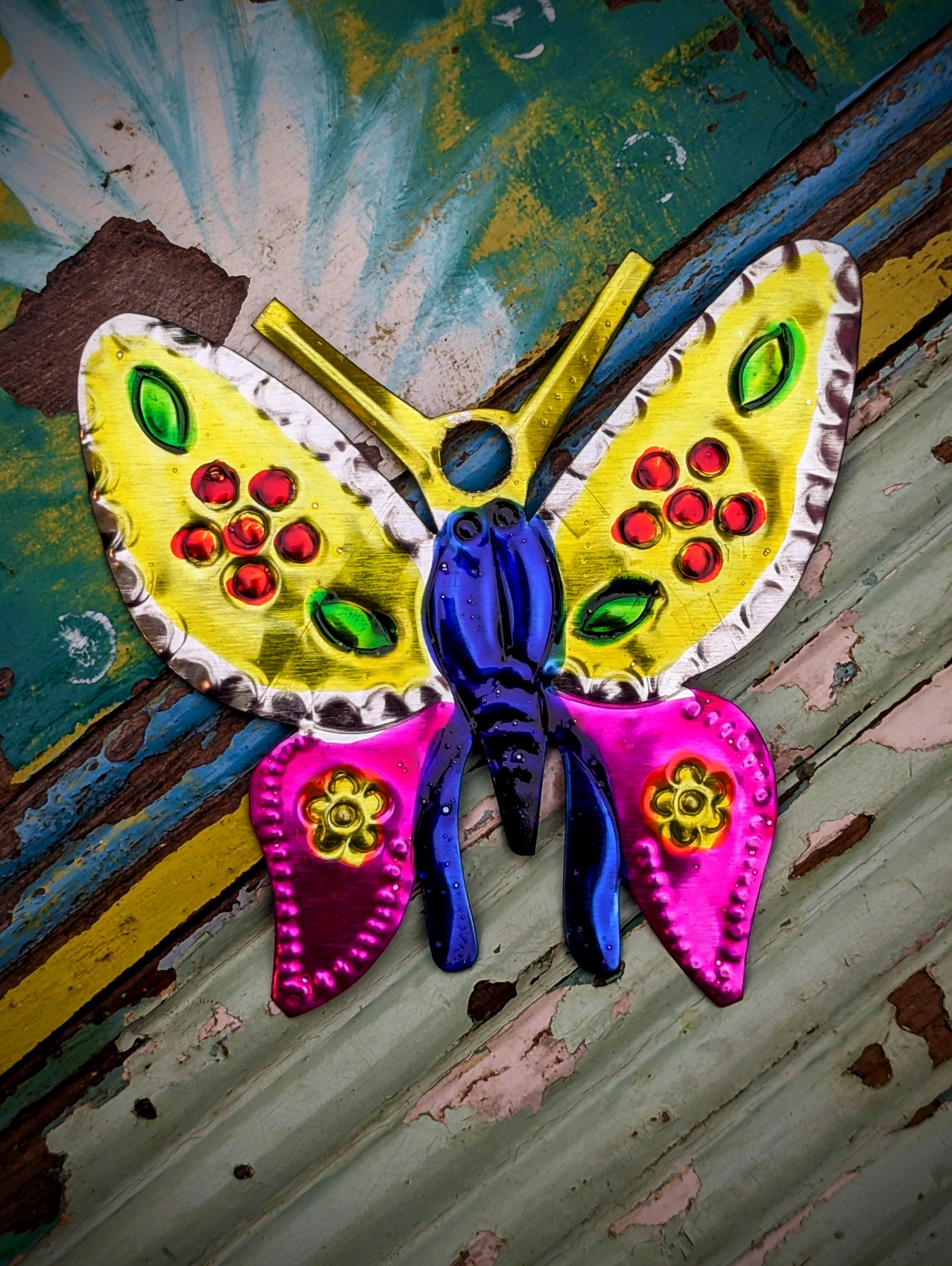 Handmade and handpainted tin - all pieces vary in size, and colour.