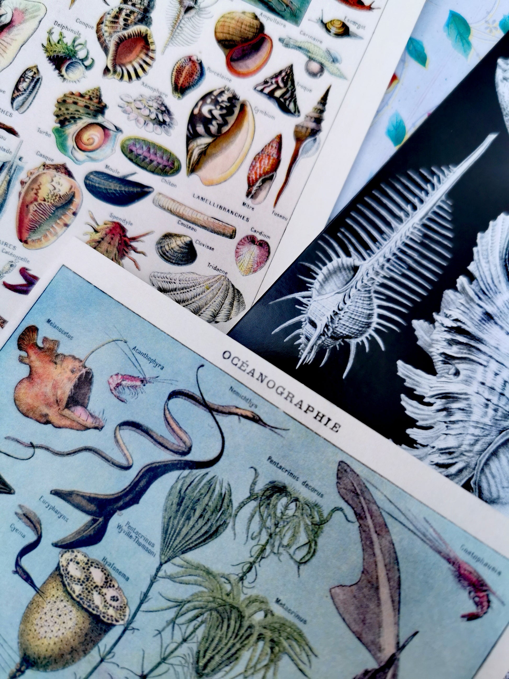 Vintage botanical illustrations of seaside wonders as a greetings cards set, a selection of our fave cards to send a bit of joy!!