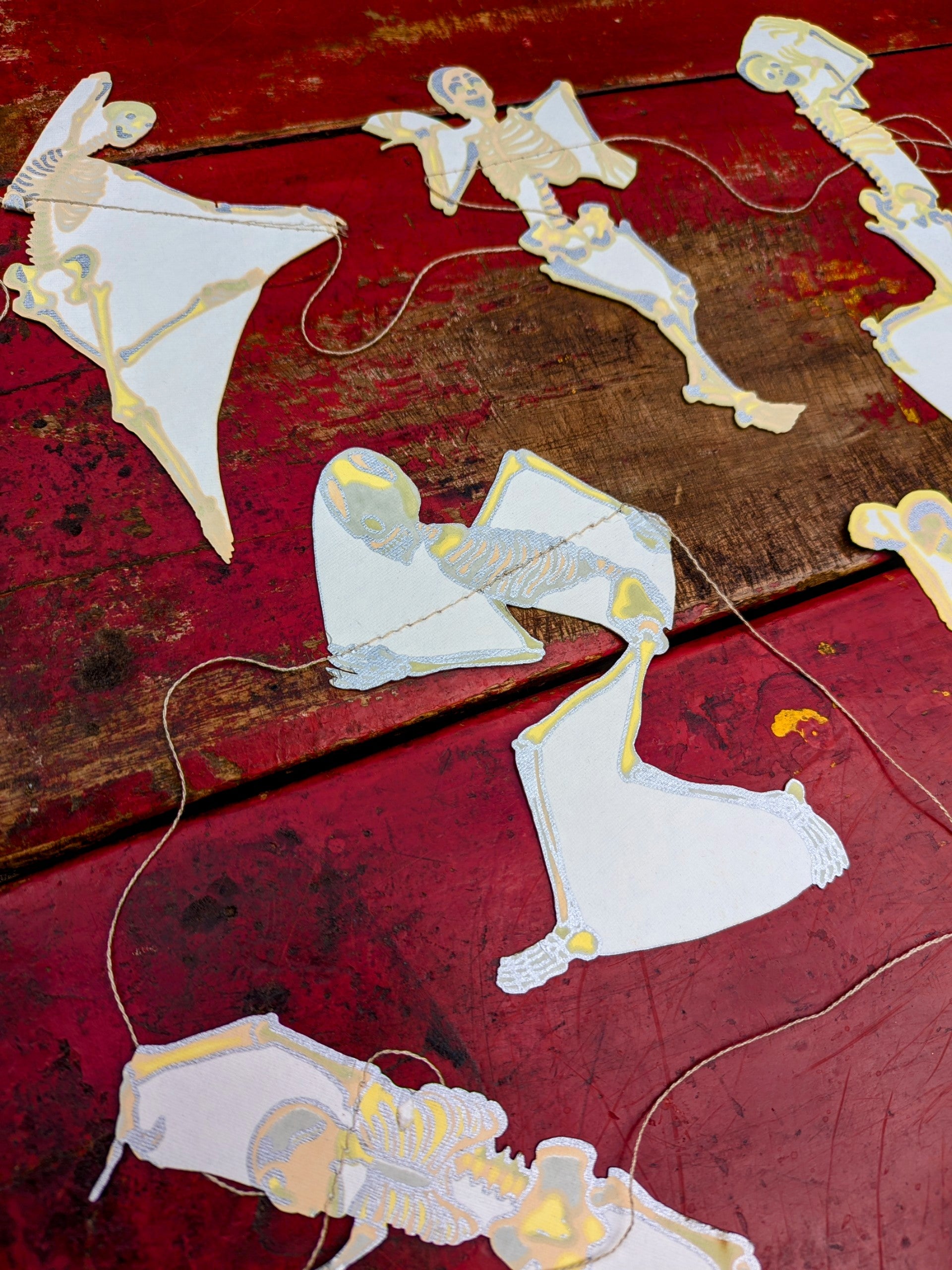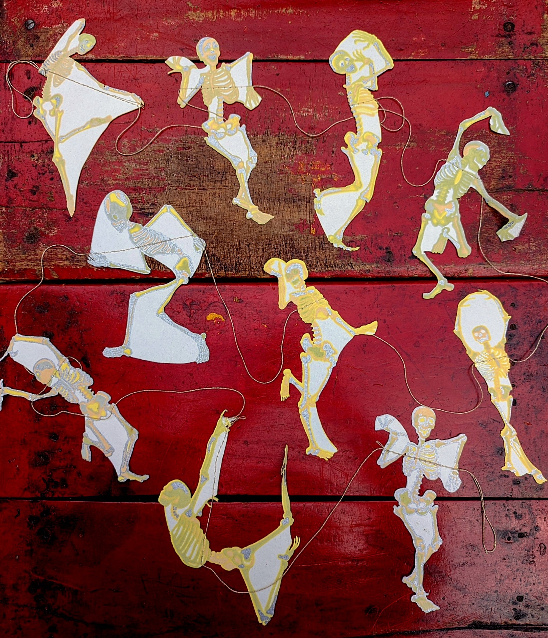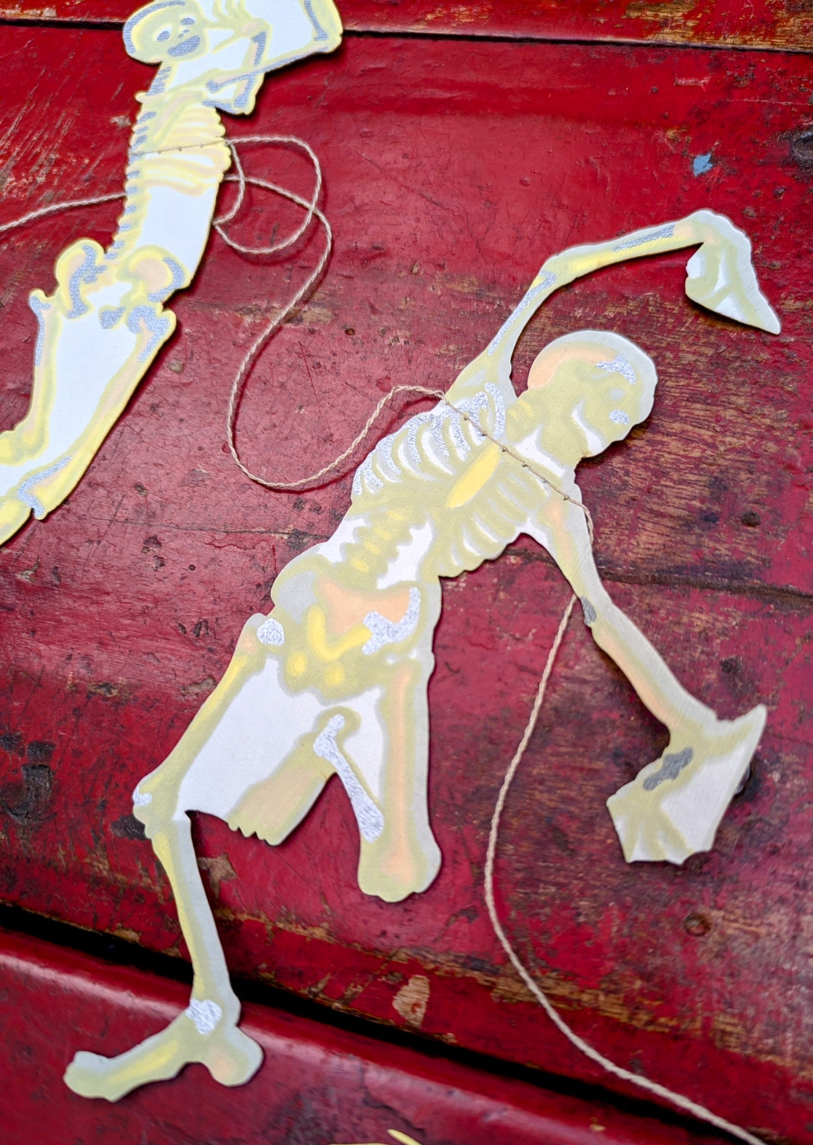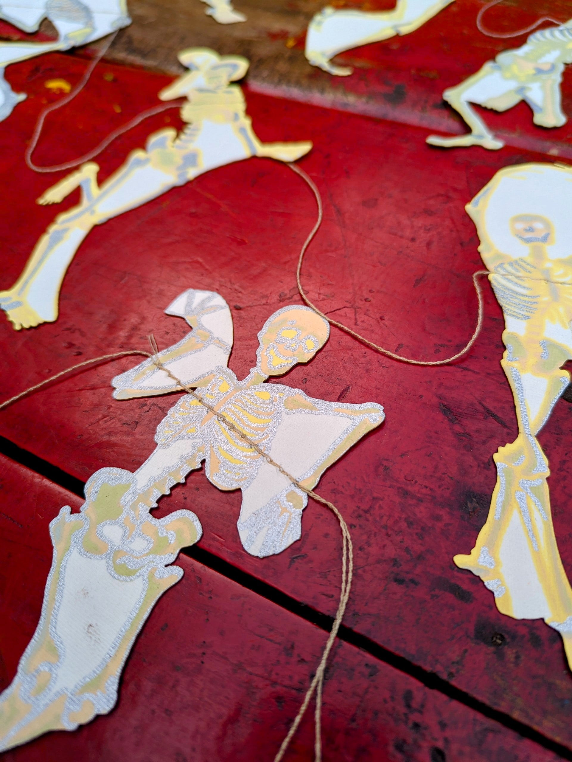 Freaky dancing with this hand printed three metre long paper garland, featuring ten screen printed paper dancing skeletons.