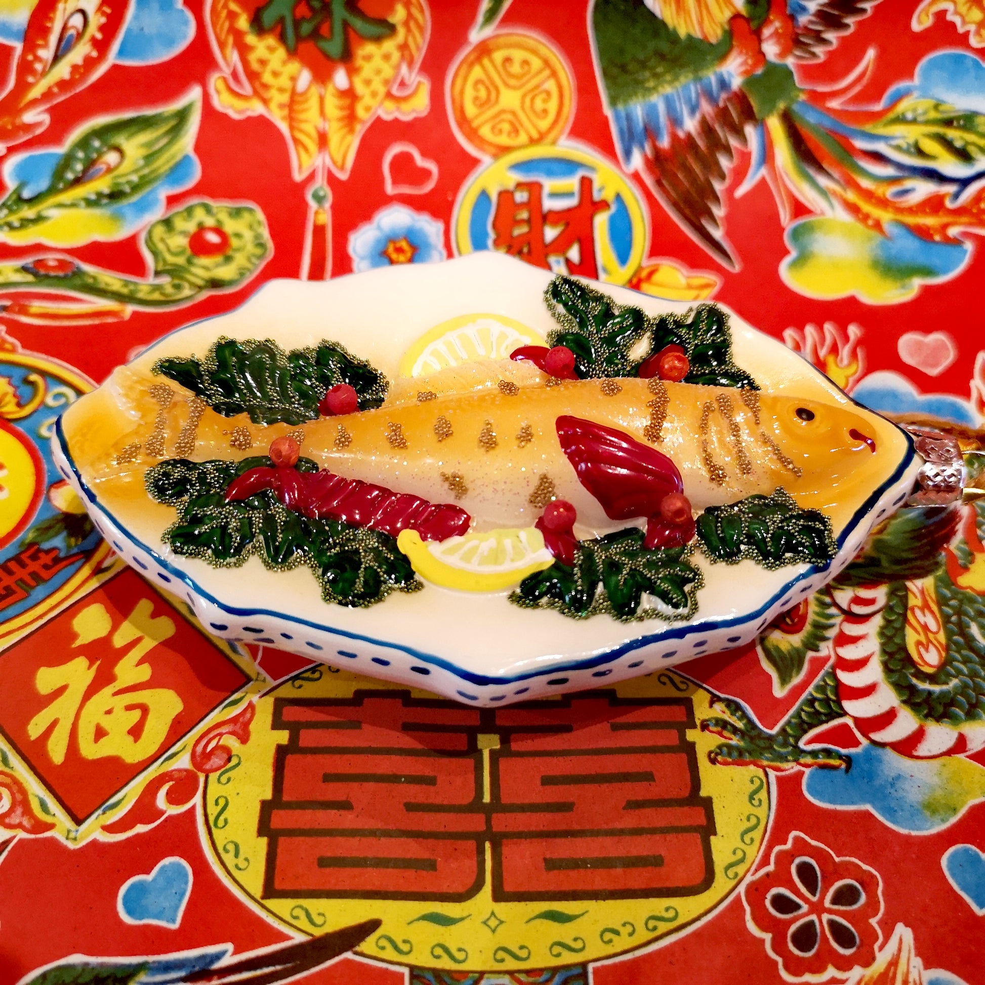 Decadent dinners beautifully adorned with caviar like metallic pearls and glitter!!! Hand finished on fantastically detailed platters! Perfect for fishy food lovers!