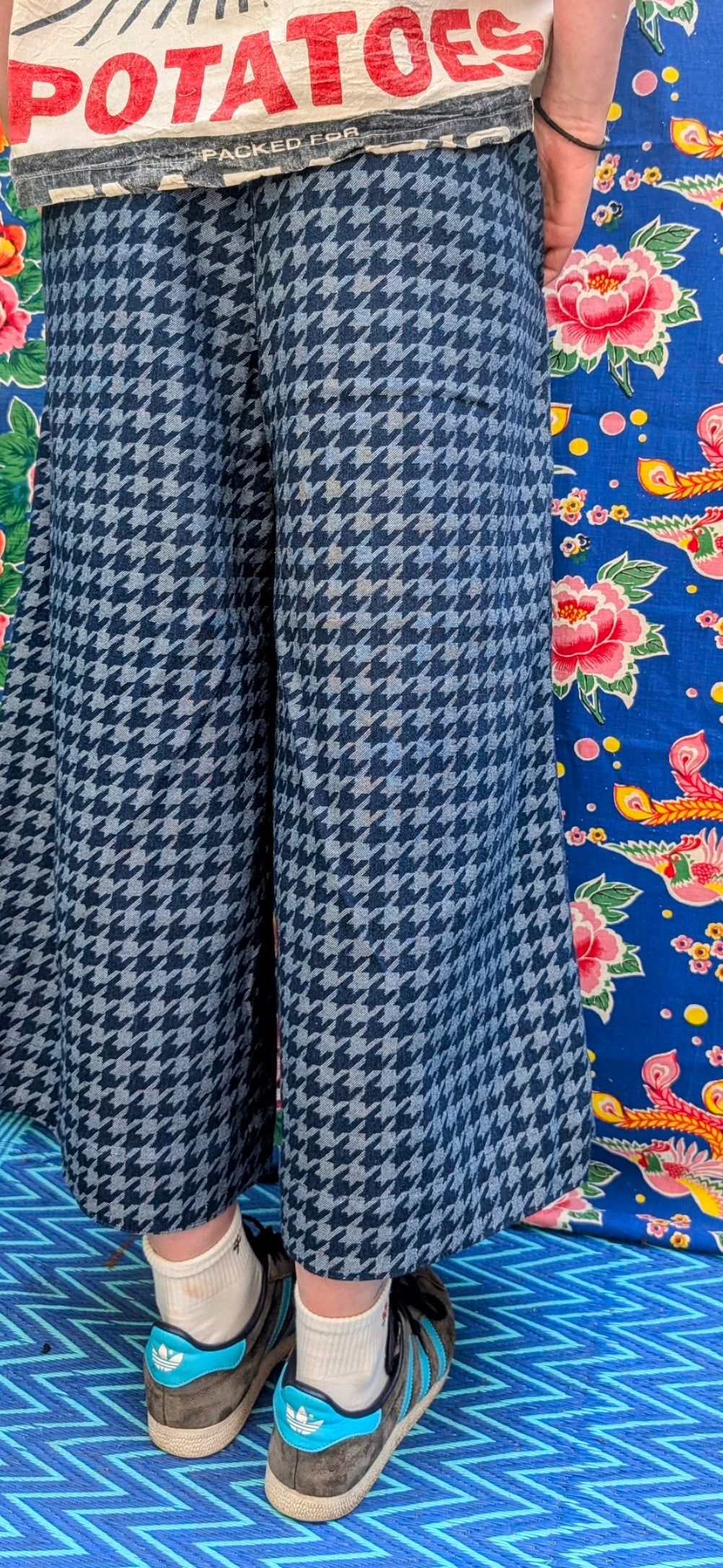 Best selling, classic Japanese denim culottes.Handmade in Thailand working with the same family of seamstresses for 25 years. Patterns and sampling made here in the UK by our founder Anna Moody.