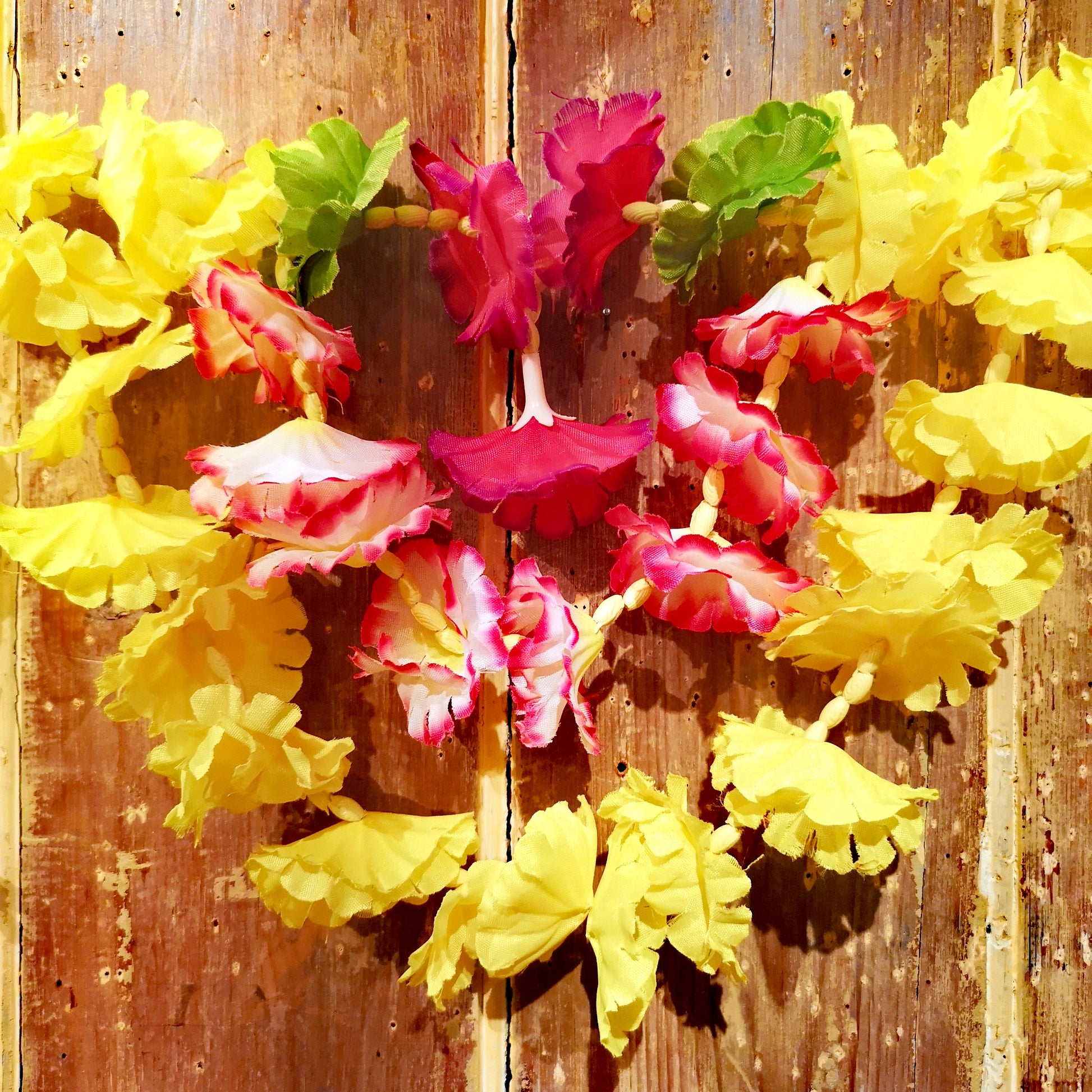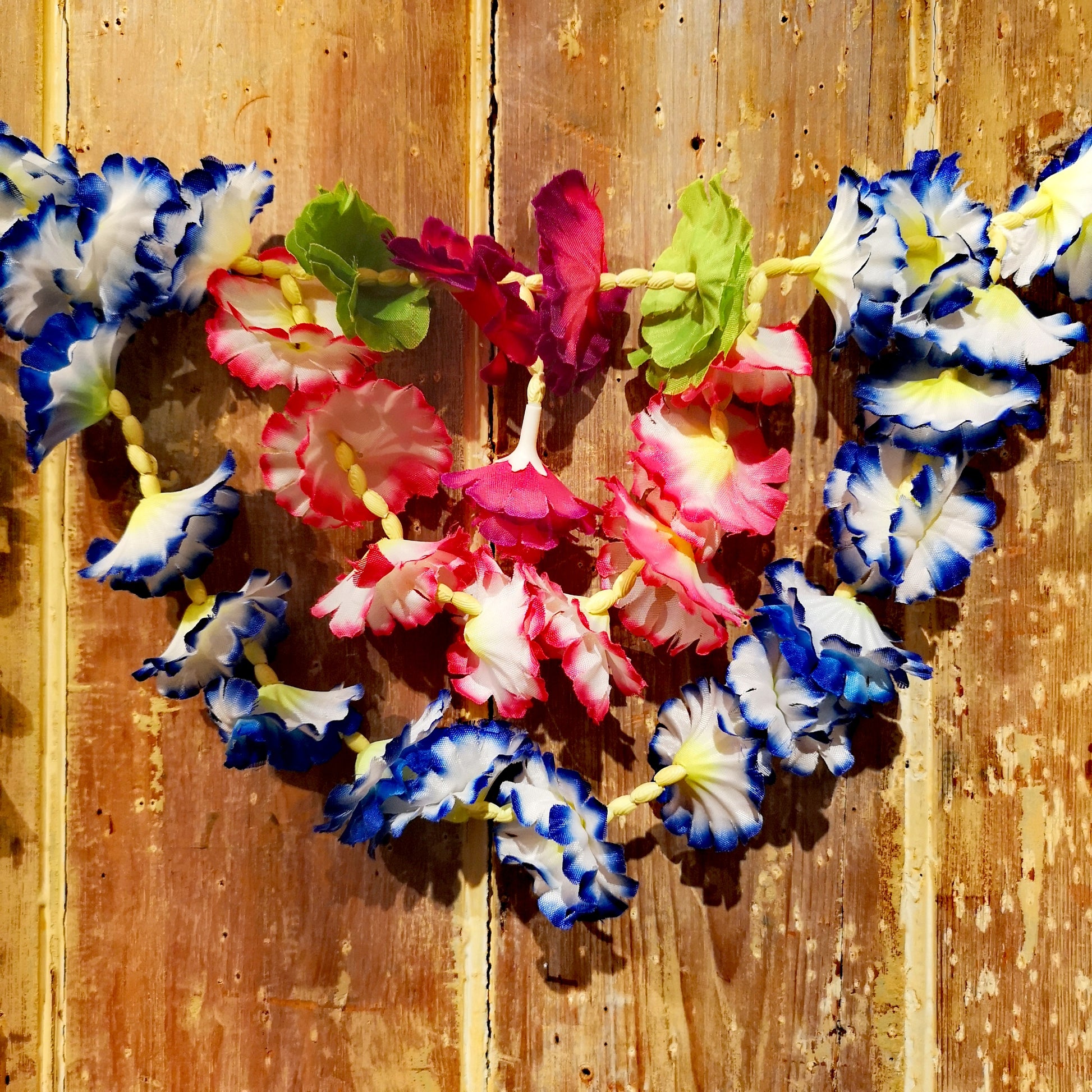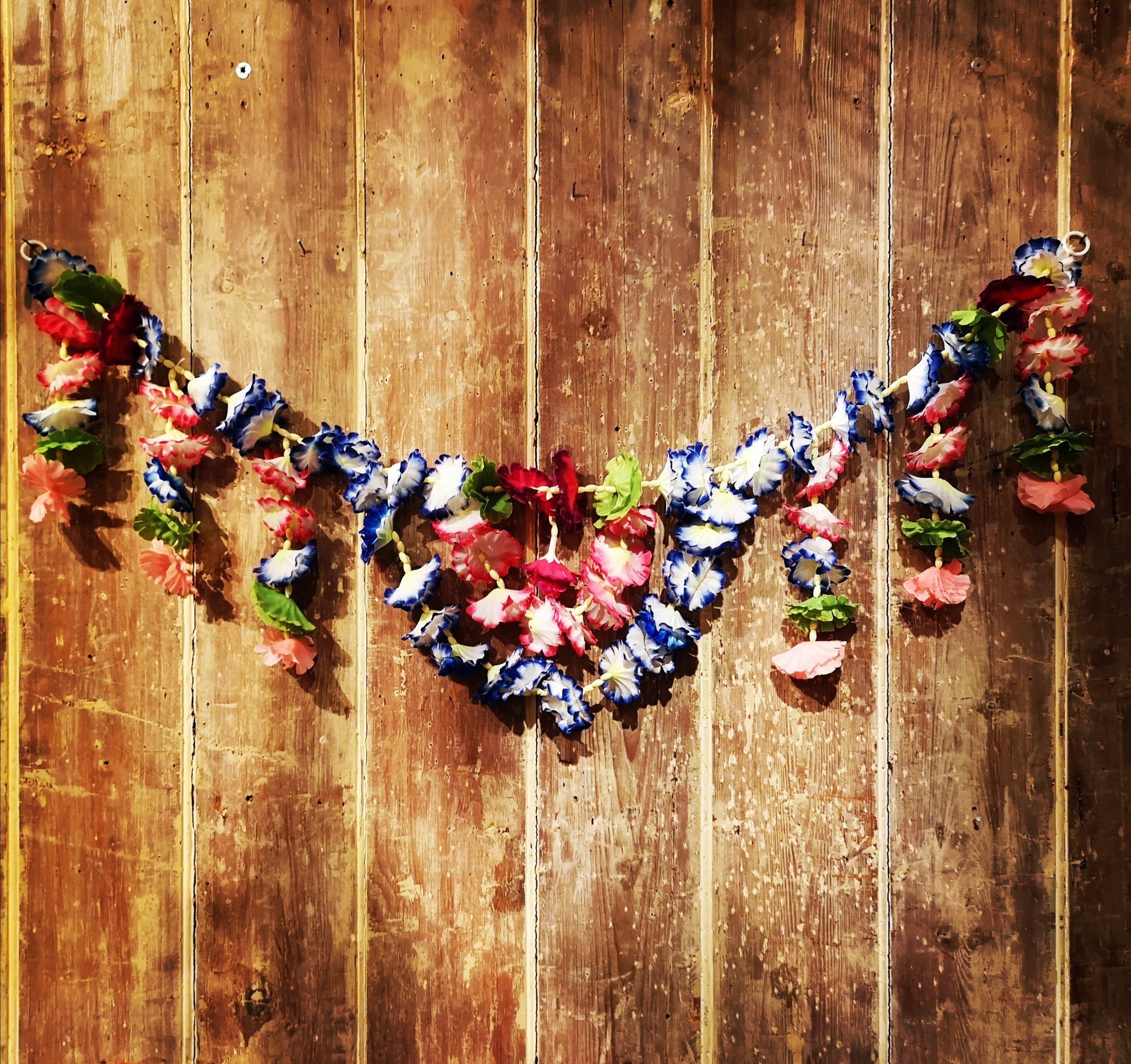 Fabulous fun deluxe flower garlands made from fabric cut flowers and spacers, best draped and sashed en masse for celebrations, hang wonderfully from any doorway to simply to adorn your home, or indeed yourself!