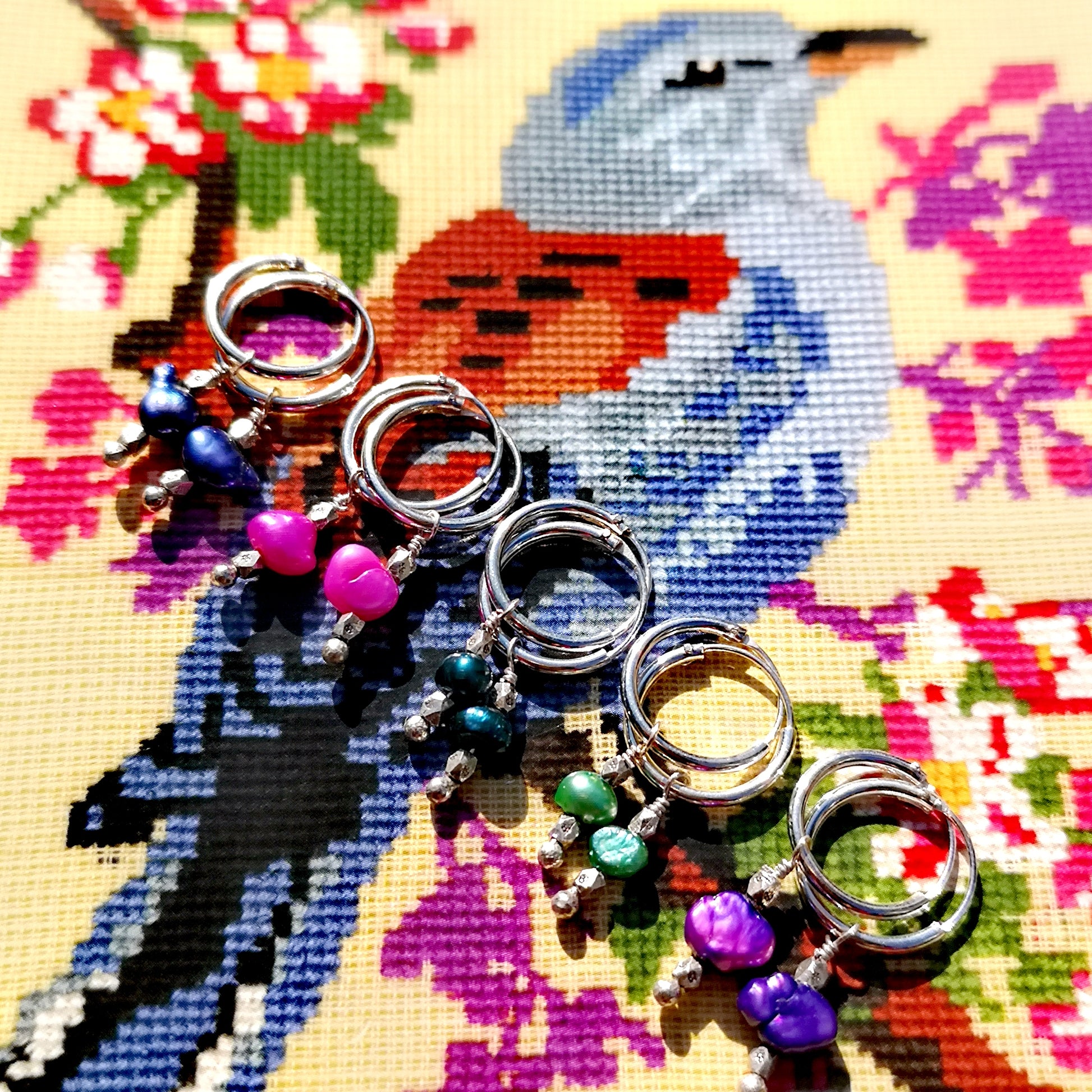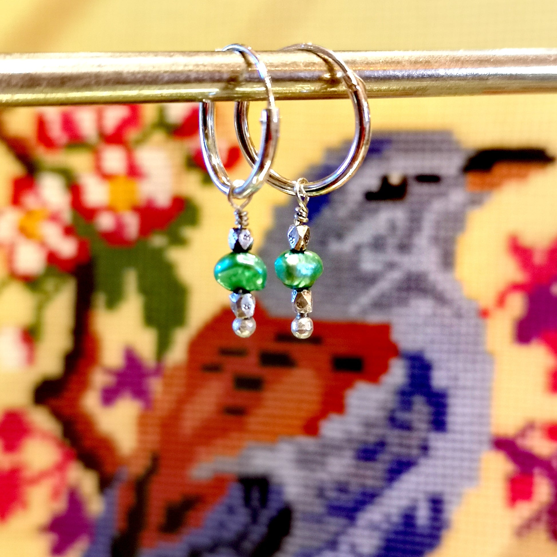 Made by us here at Blackout using silver posts, handmade faceted and stamped Karen tribe beads and sterling silver hoops that set of the glittering gorgeousness of these pearls..... Perfect for everyday wear!