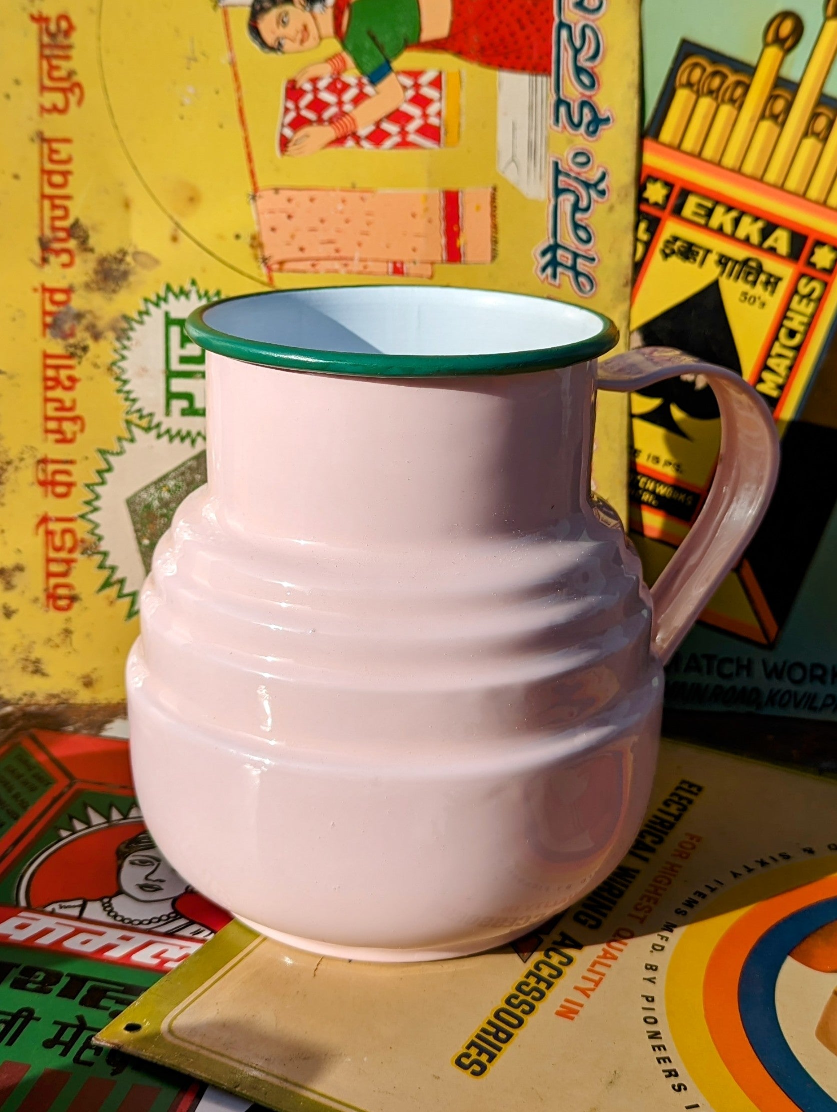 Bold and beautiful deco-esque form, enamel jugs. A hint of 50s Americana kitchenalia!