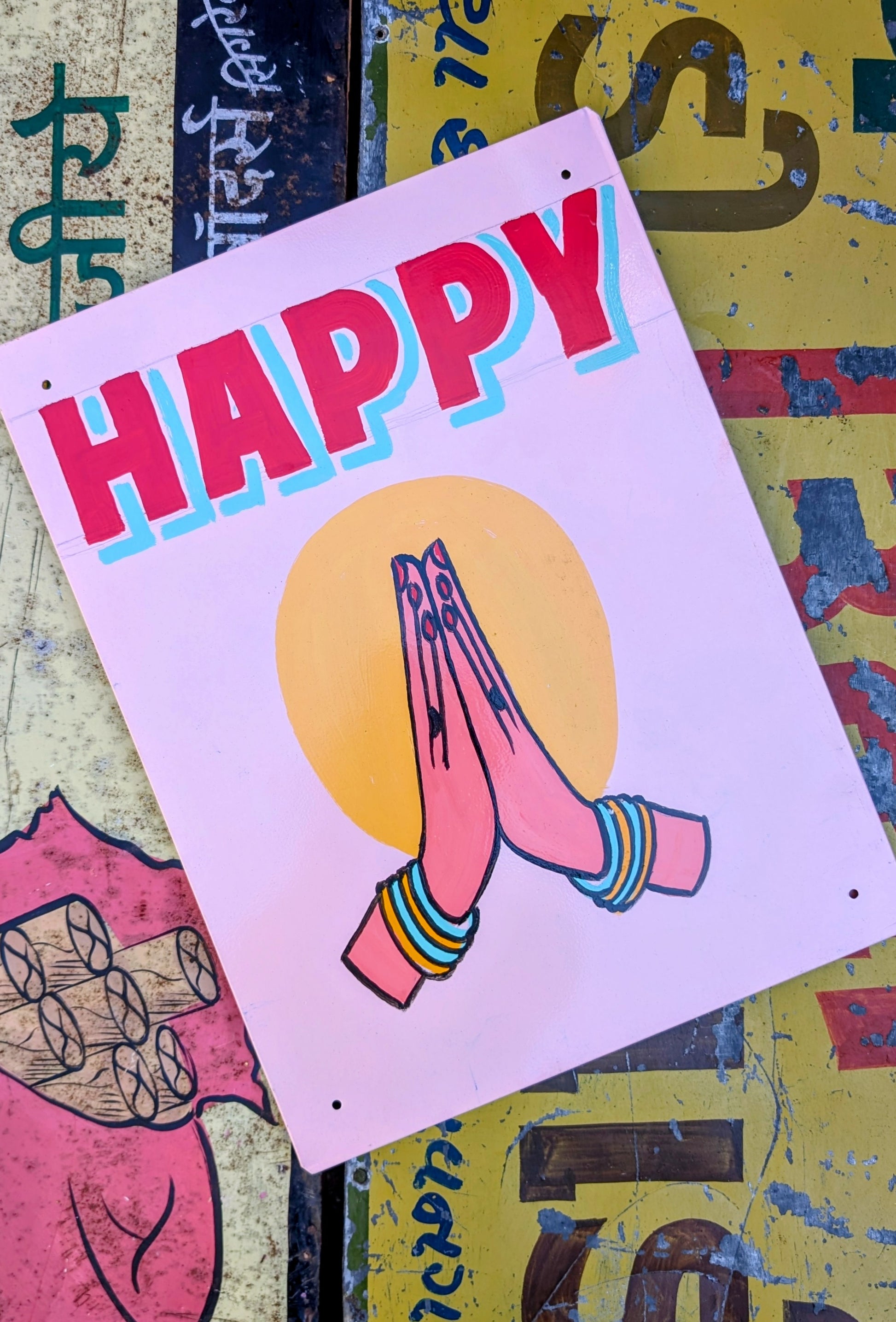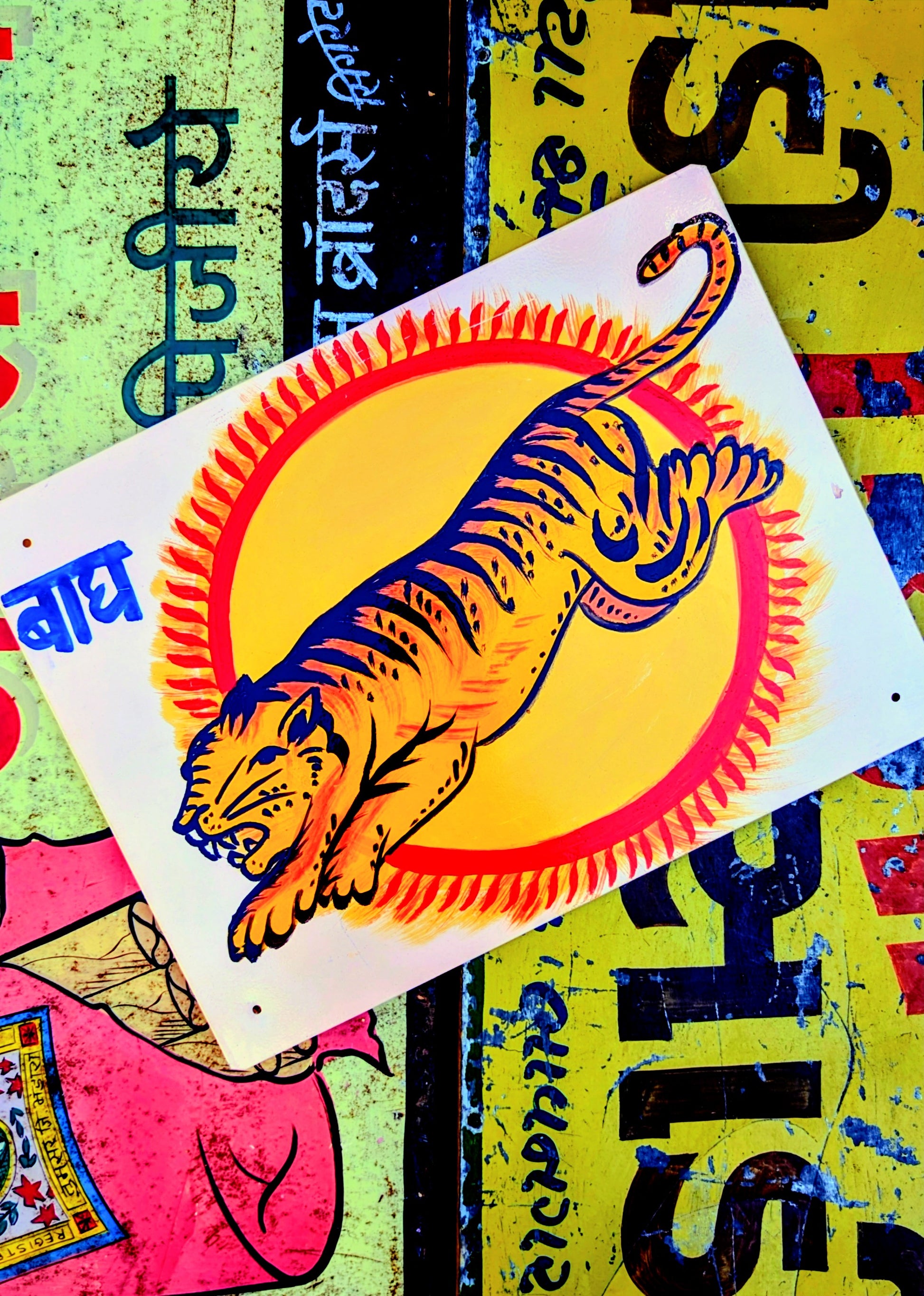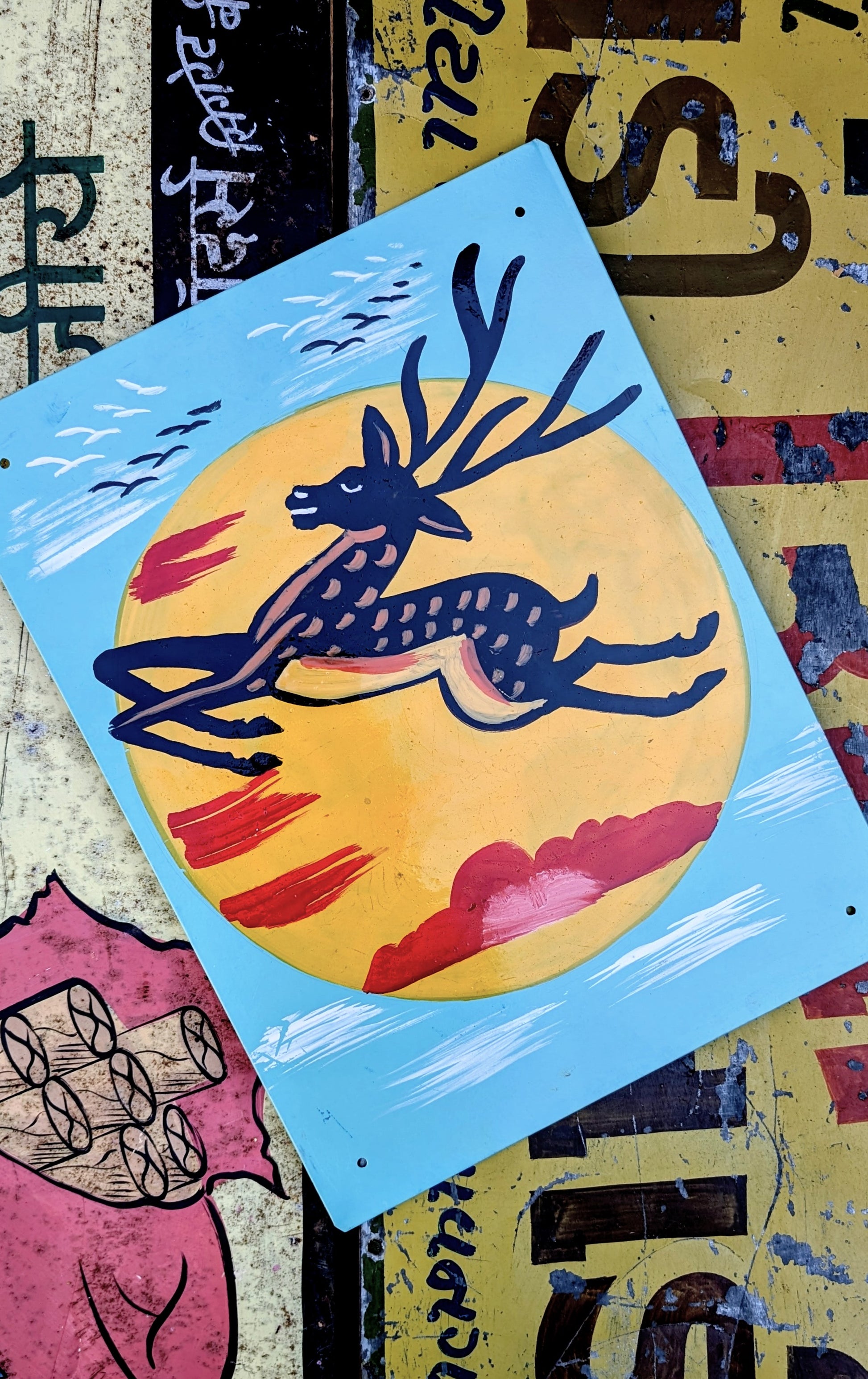 Sturdy metal panels beautiful and rustic painting by the painters that decorate pick up trucks and buses in Delhi!