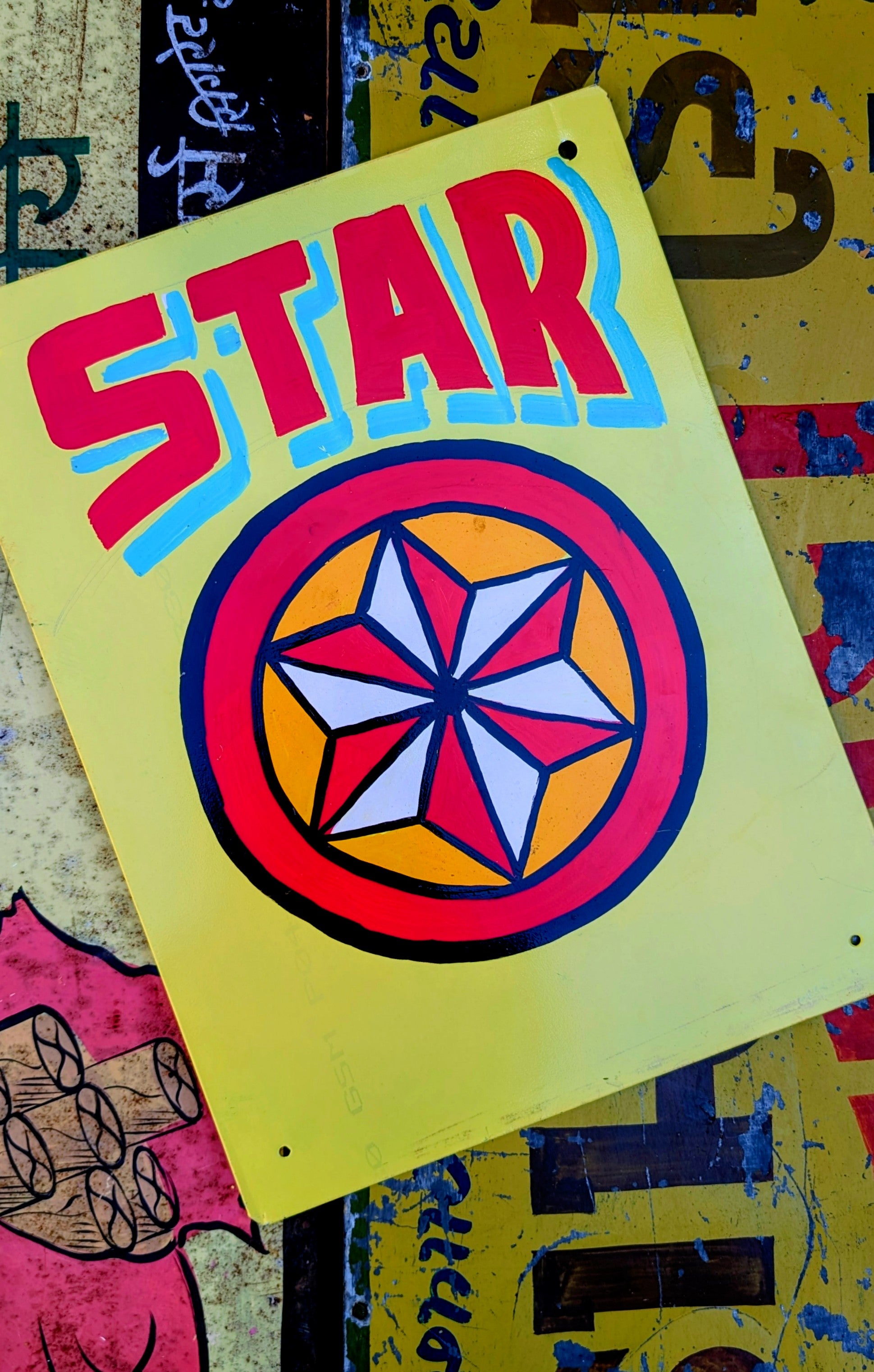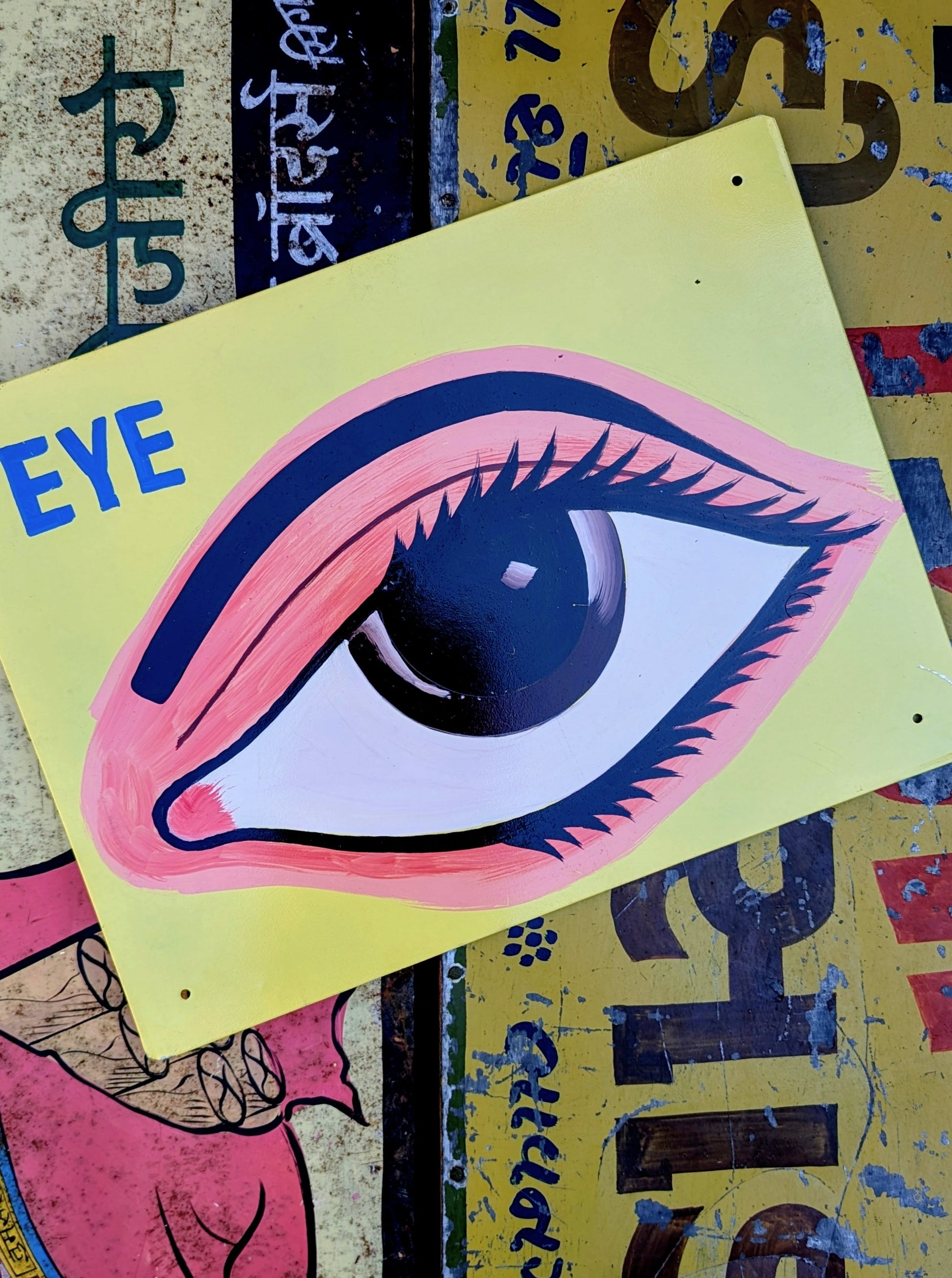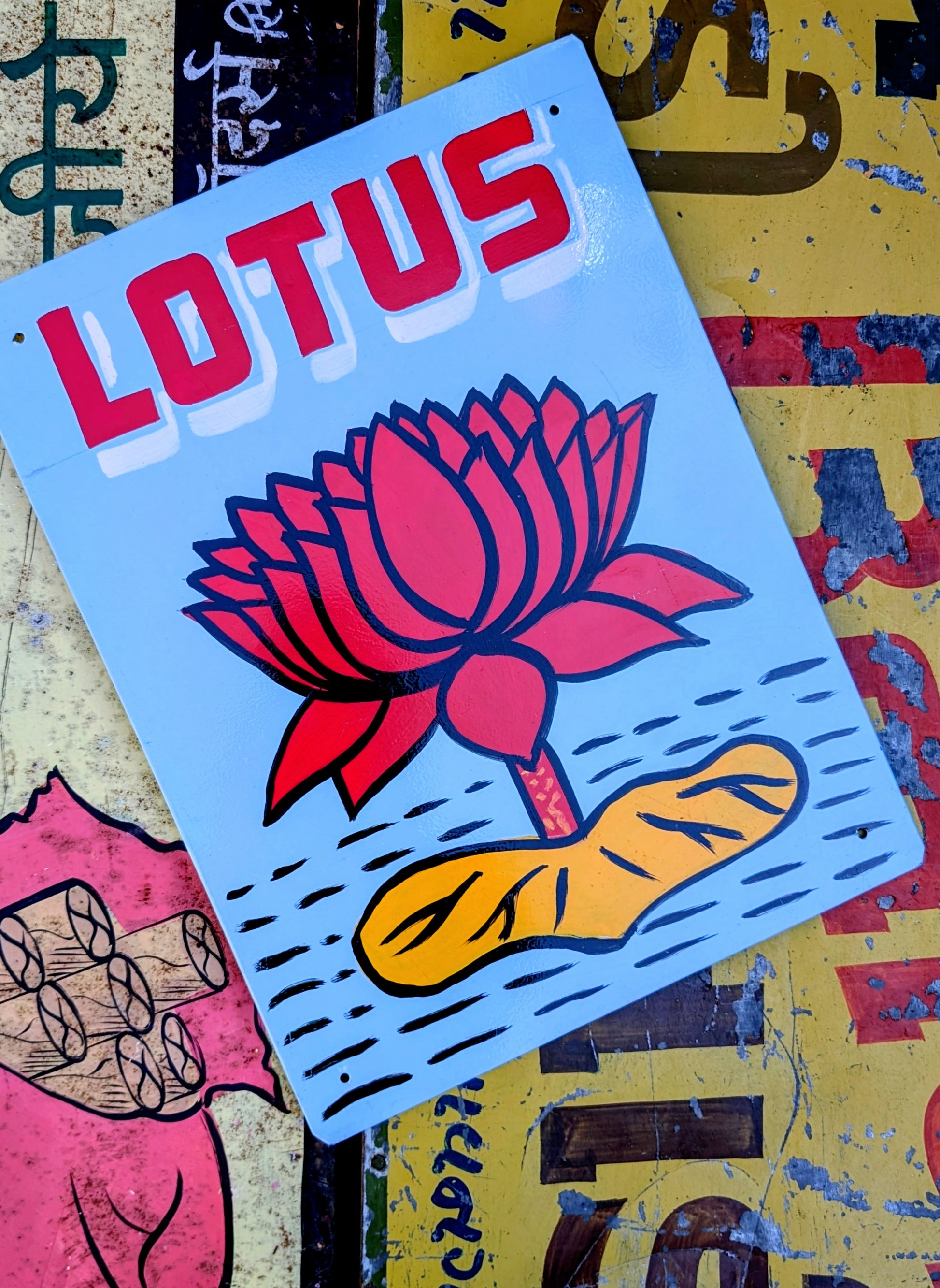 Sturdy metal panels beautiful and rustic painting by the painters that decorate pick up trucks and buses in Delhi!