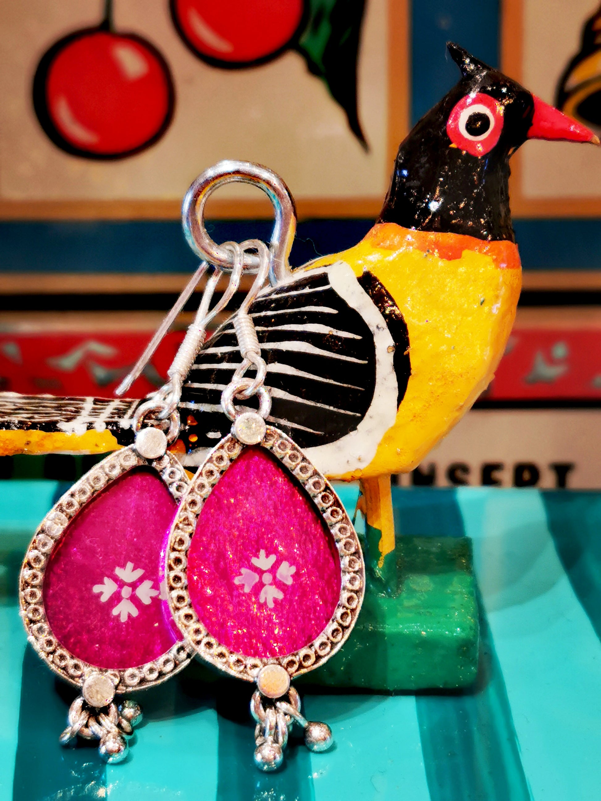Handpainted foiled glass set in silver and with traditional Rajasthani tiny dangling bells.
