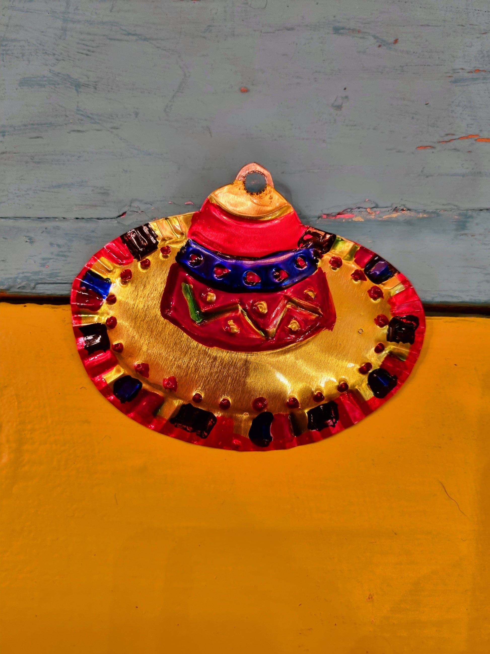Handmade and handpainted tin - all pieces vary in size, and colour.