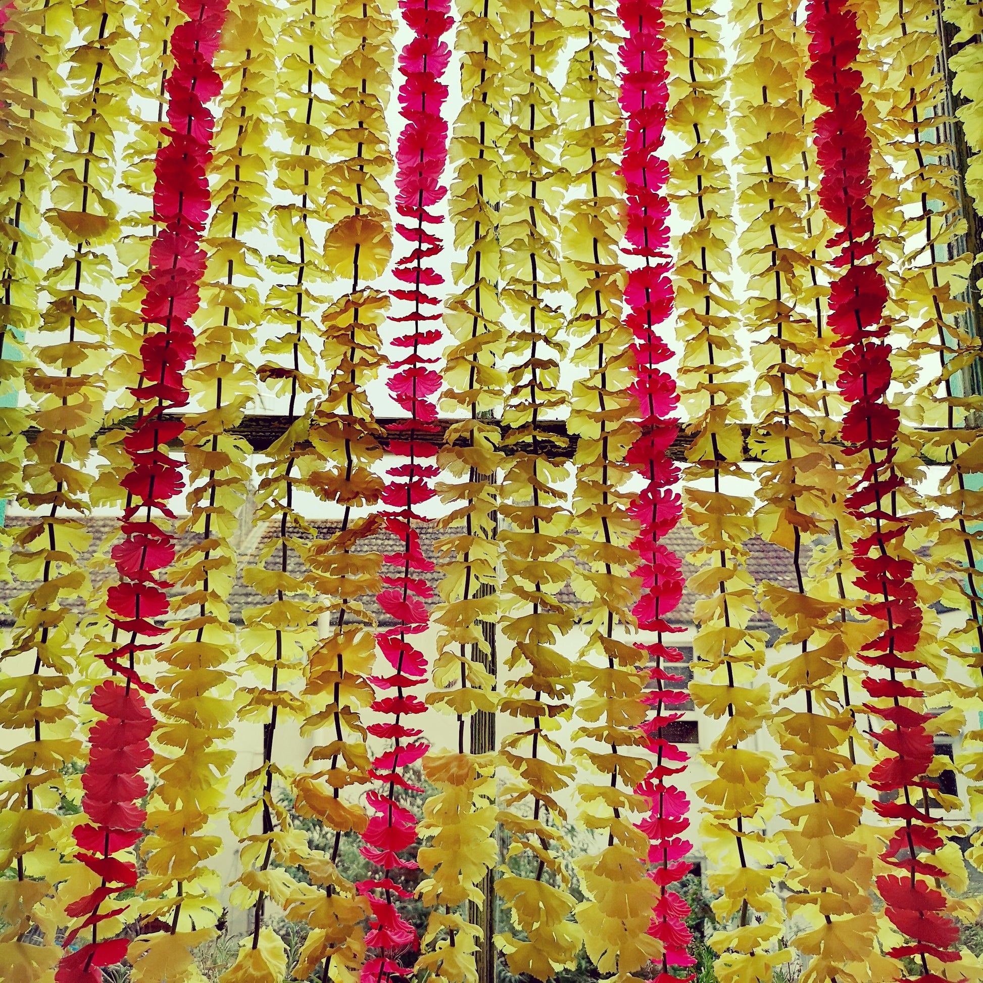 Fabulous fun flower garlands made from fabric cut flowers and spacers, great draped and sashed en masse for celebrations, are simply to adorn your home, or indeed yourself!