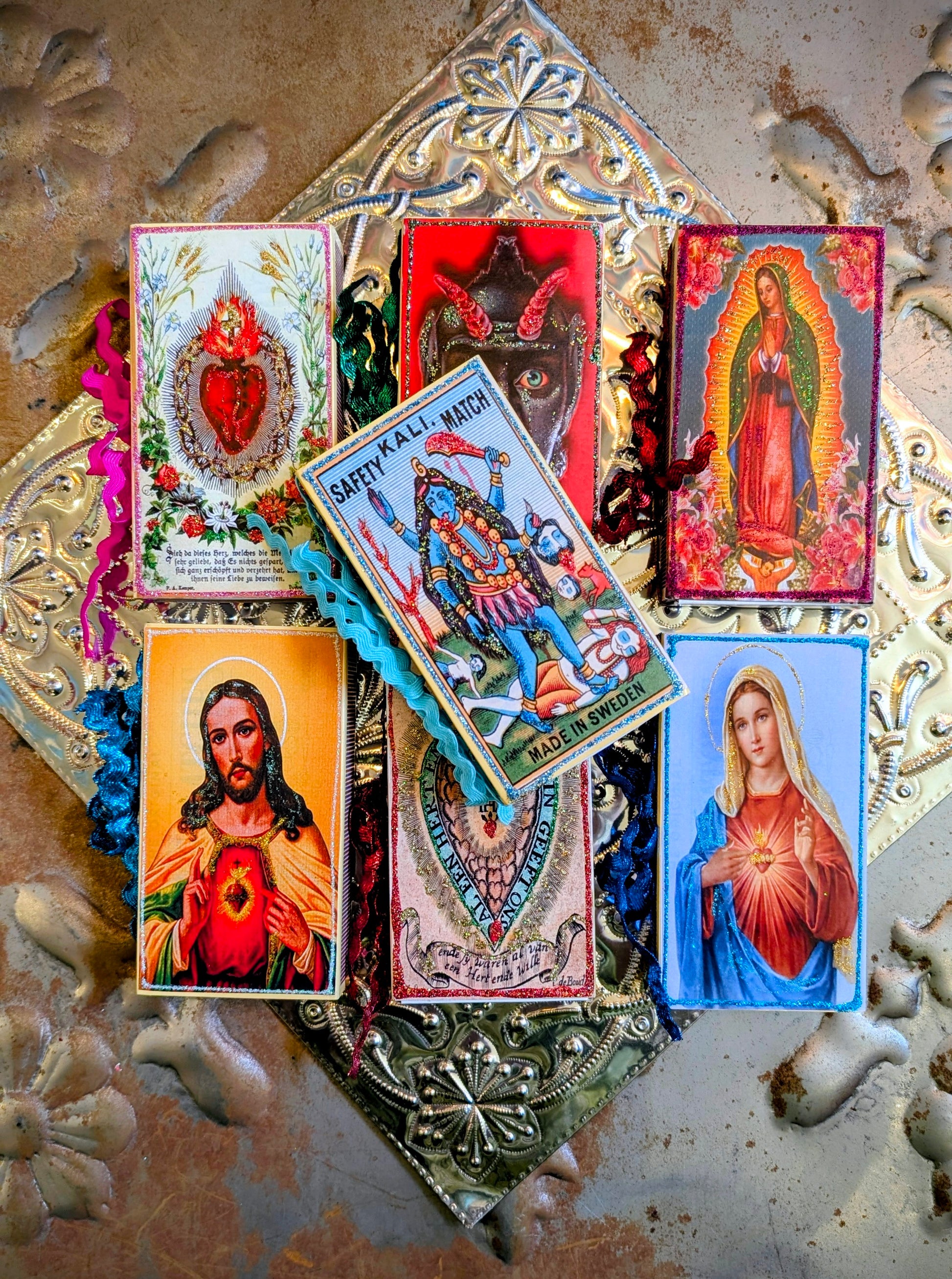 Hand decorated religious and demonic themed matchboxes. Super cute gift and also great as a gift box!