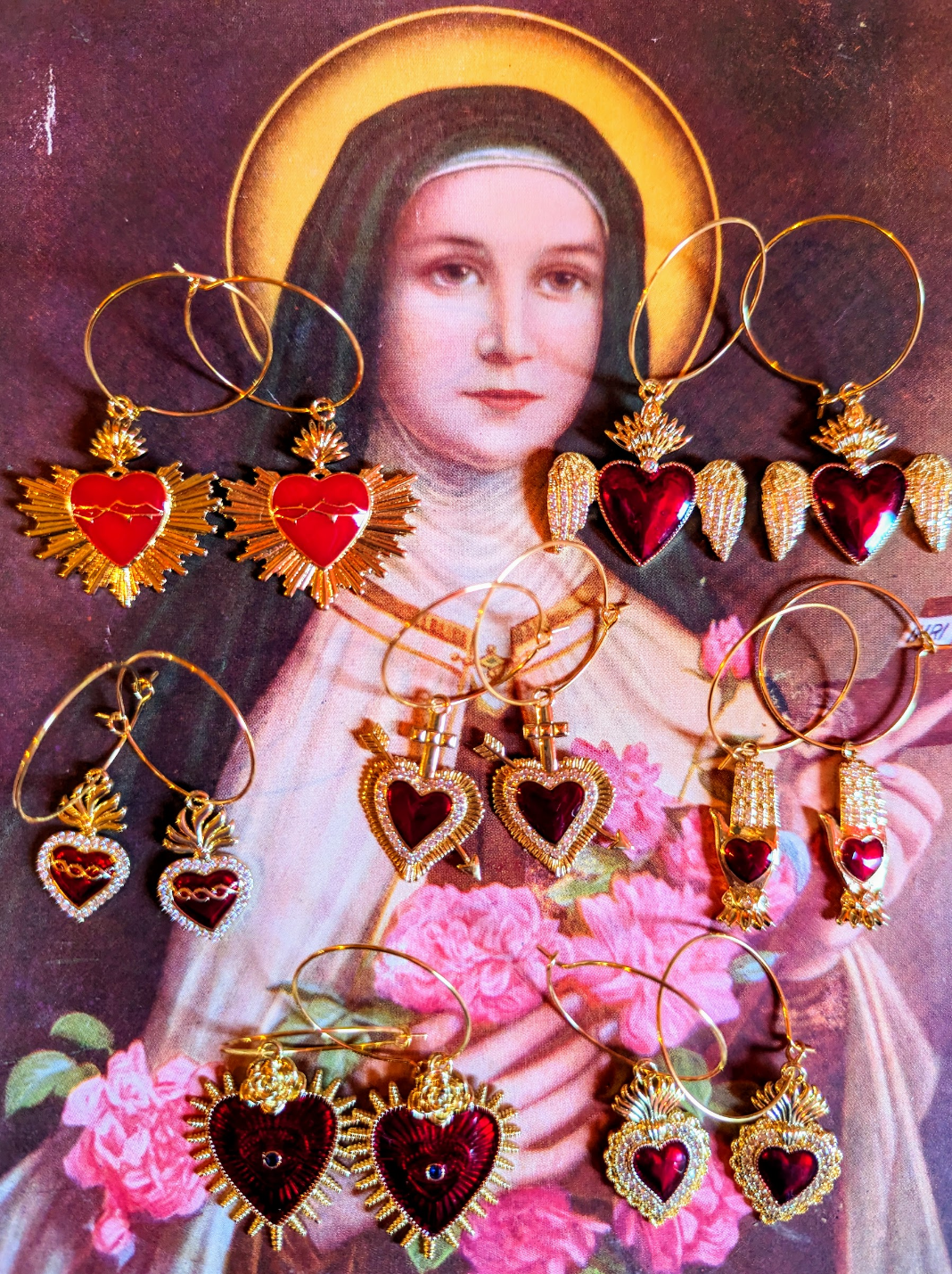All the love with these fabulous gold plated and red enamelled sacred heart and hand big and beautiful hoops!
