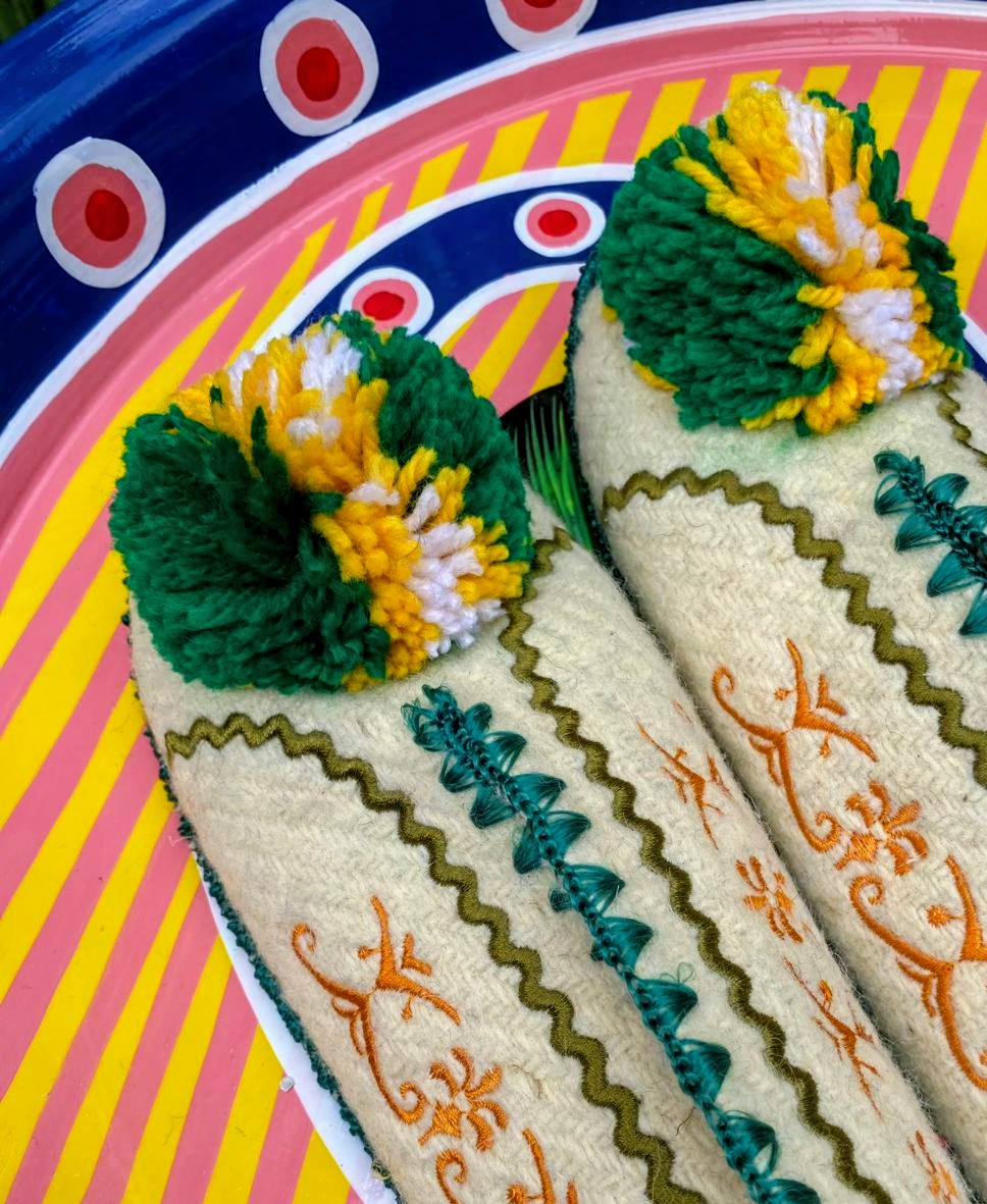 Greek pom pom slippers 43