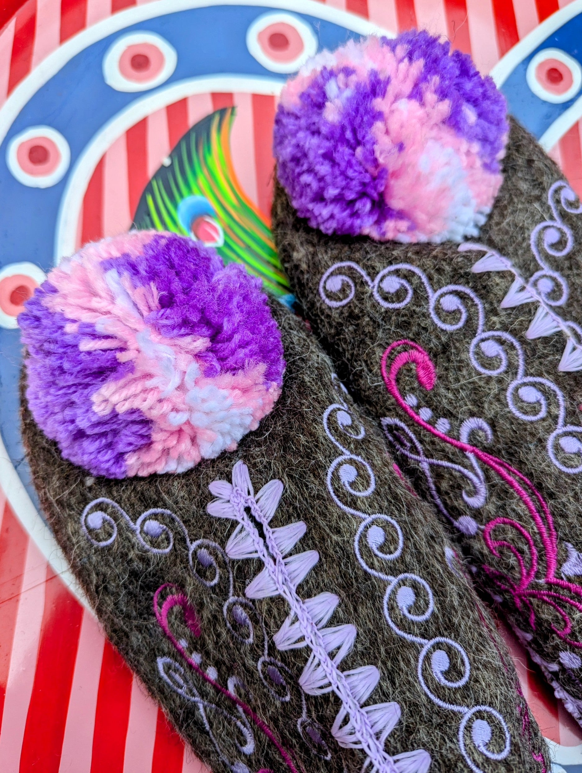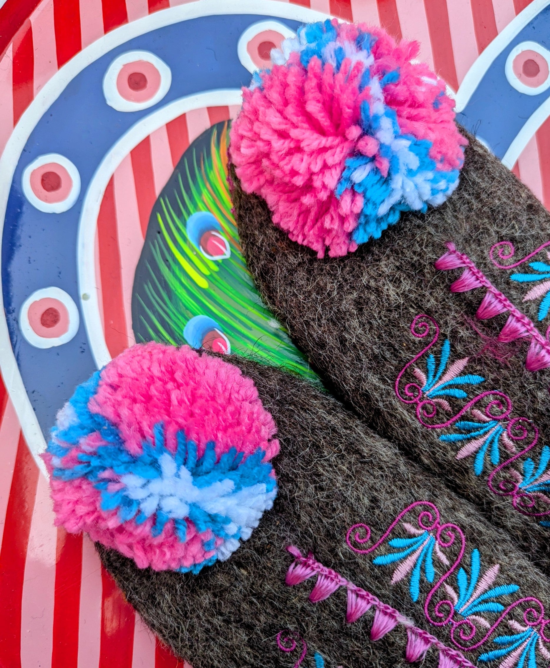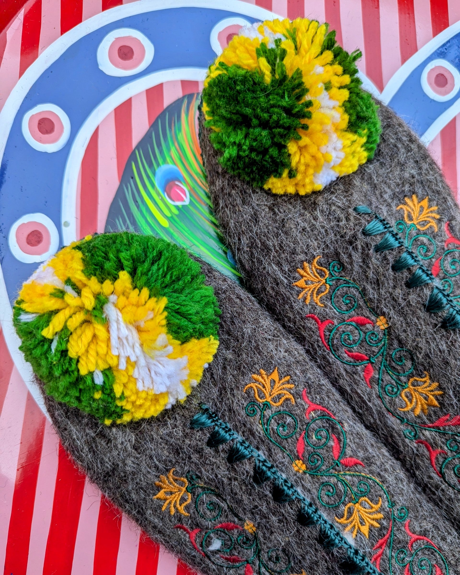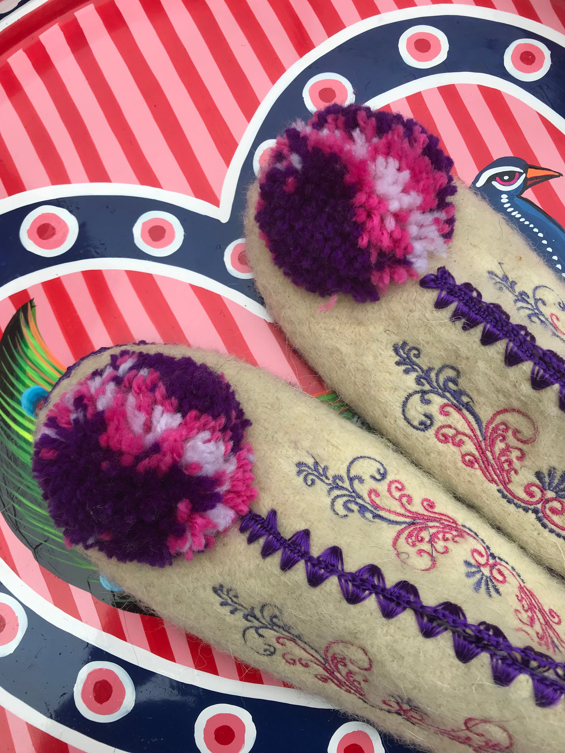 Super comfortable with a practical non-slip suede leather sole which is durable and waterproof yet still flexible and breathable. Made from sheep's wool and lined inside with soft man-made fur and cotton blend making them very comfortable both with or without socks.