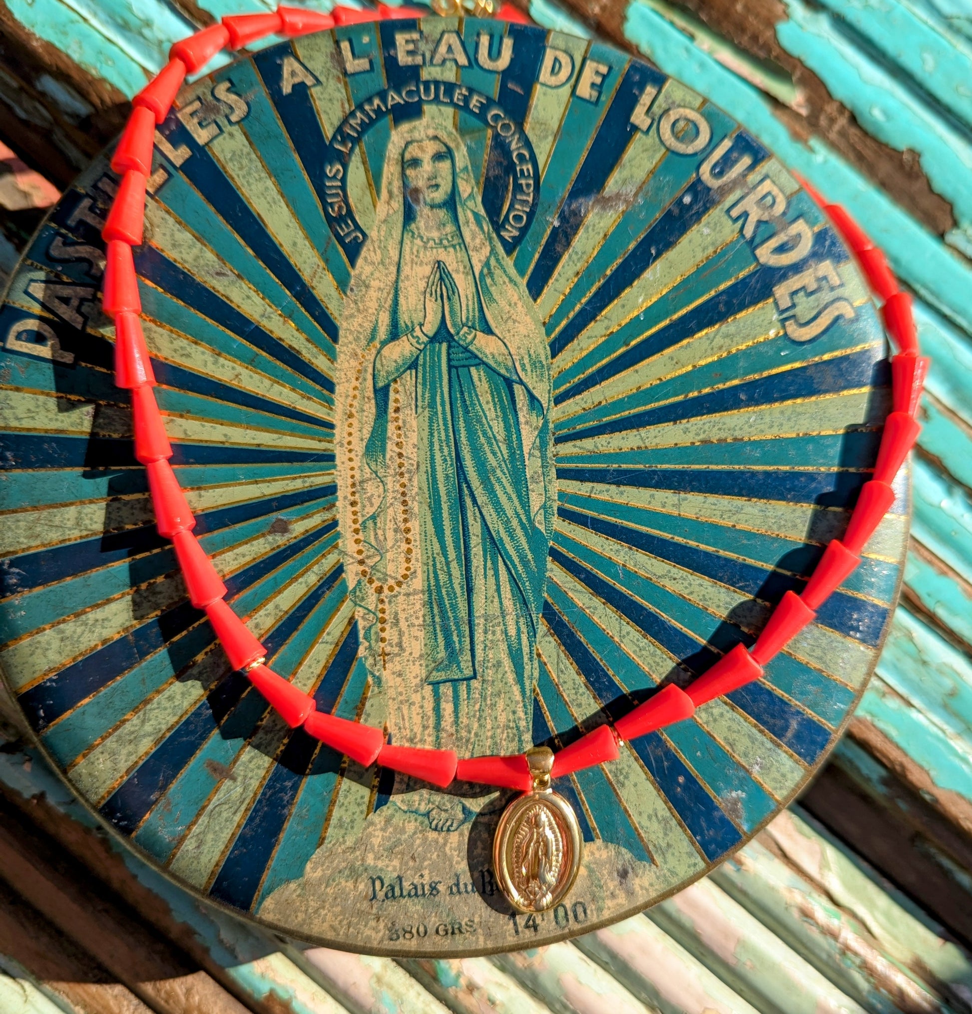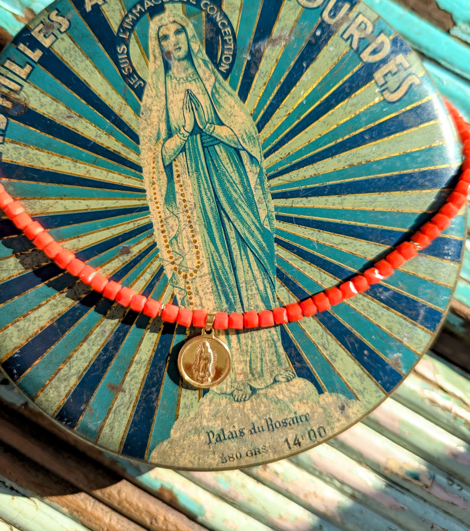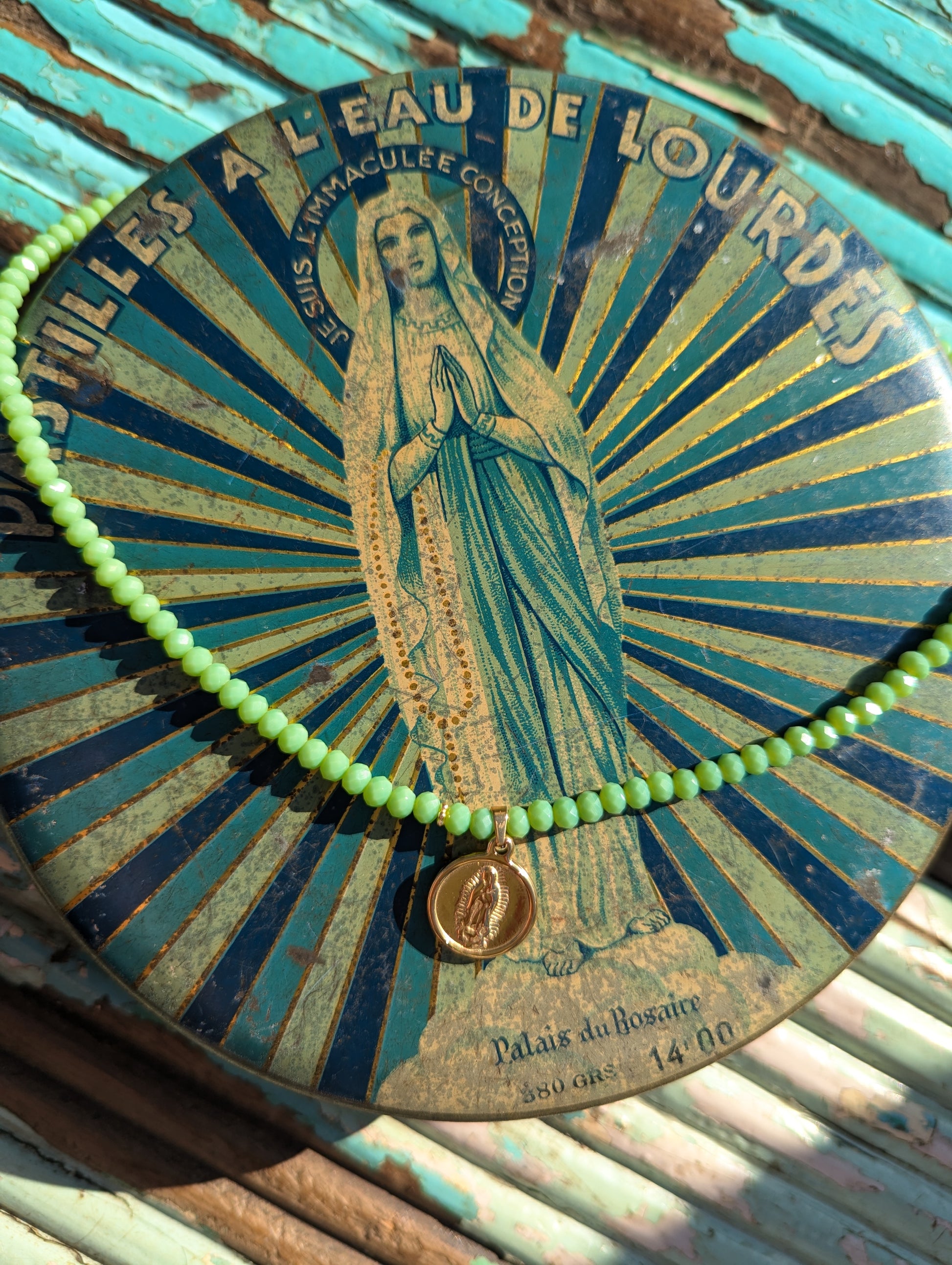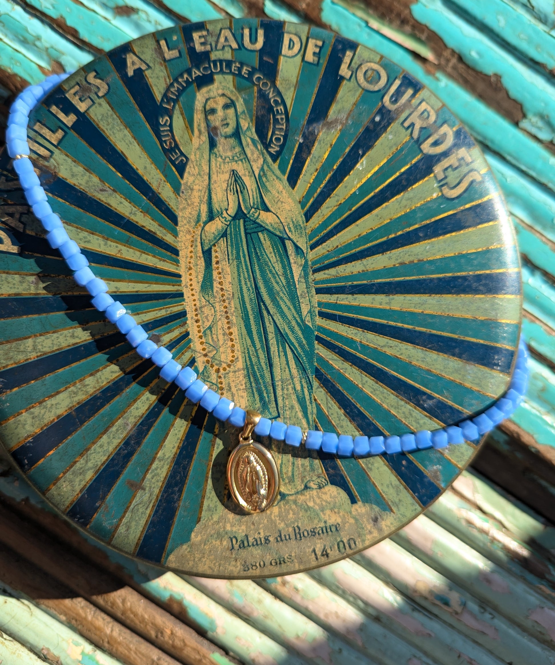 Mexican Virgin quality kitsch!!! A selection of Blackout made, hand faceted crystal necklaces with gorgeous gold Guadalupe pendants, all slightly different lengths, pendants and beads, so look great mixed up together too!!