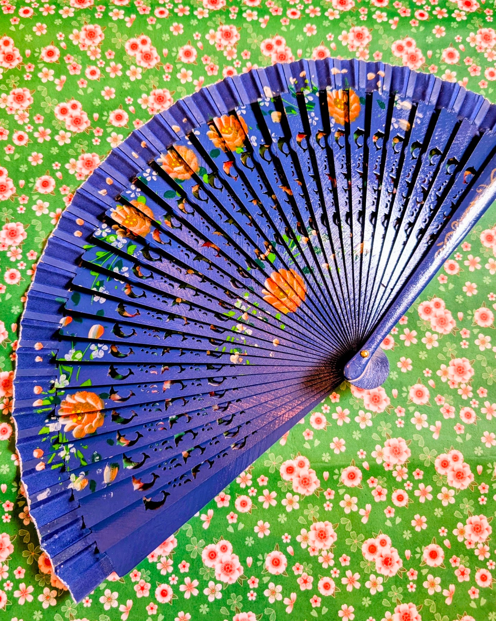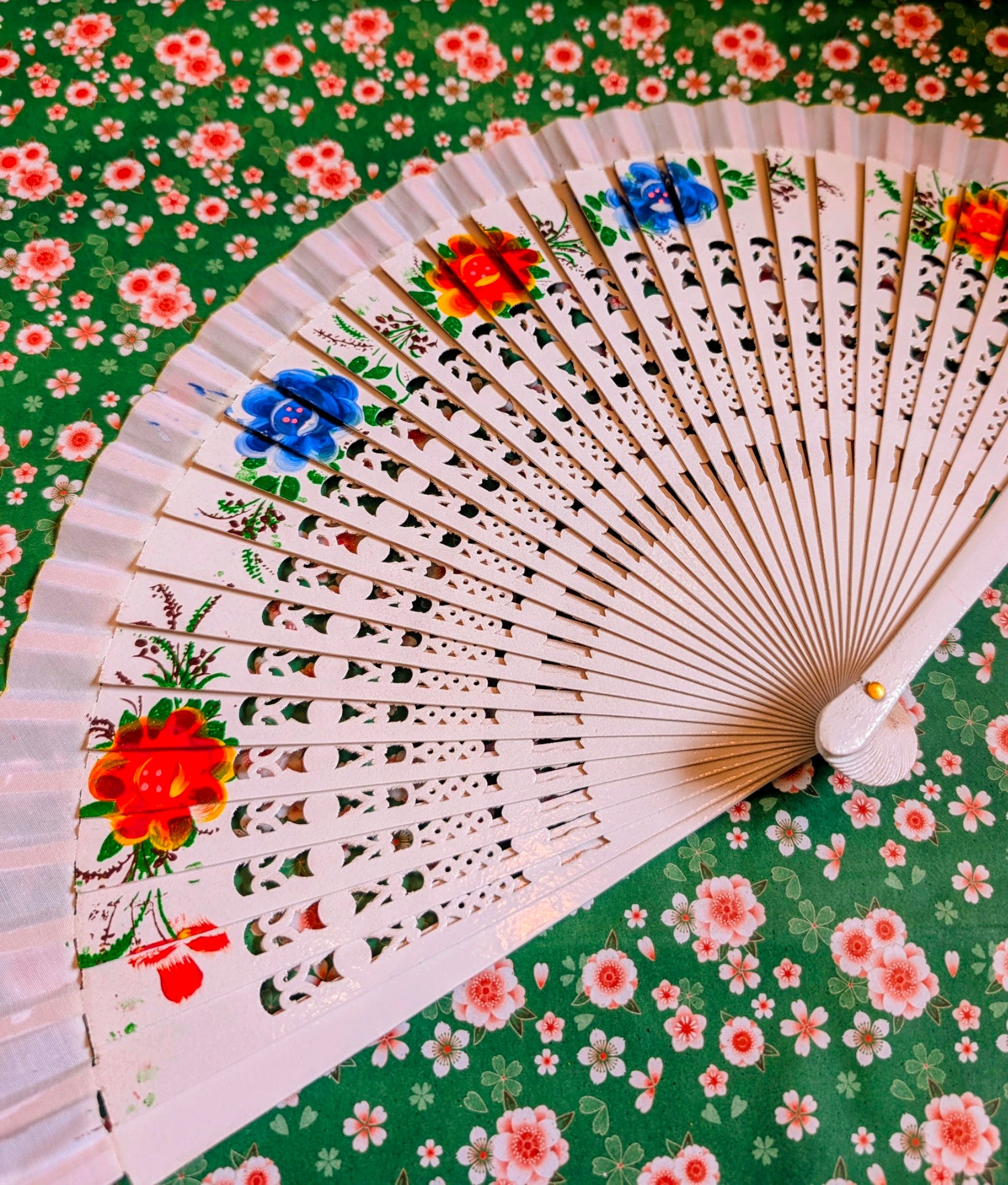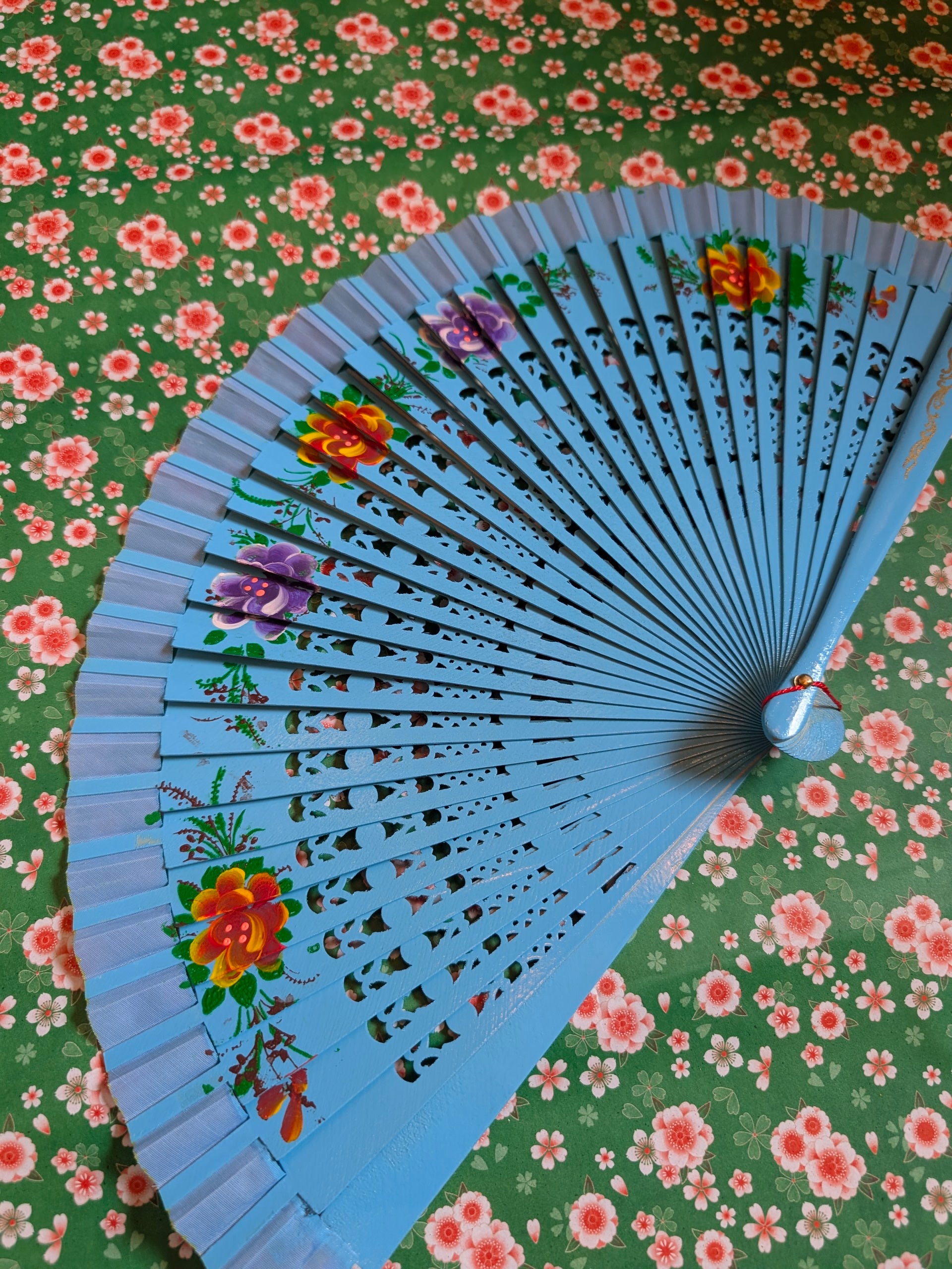 Be more peacock in the heat, handpainted wooden fans for dancing, parties, festivals and steamy menopause moments!!