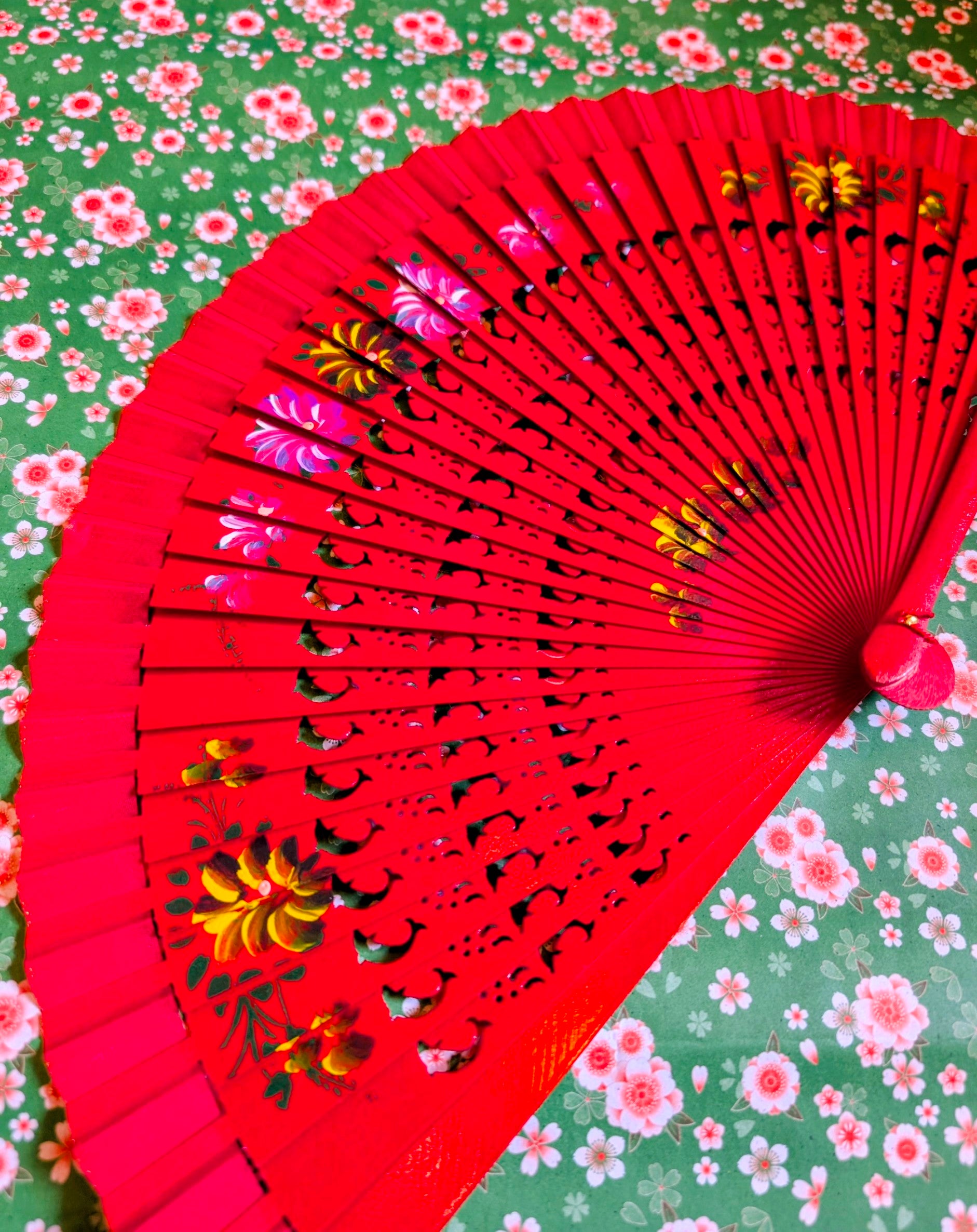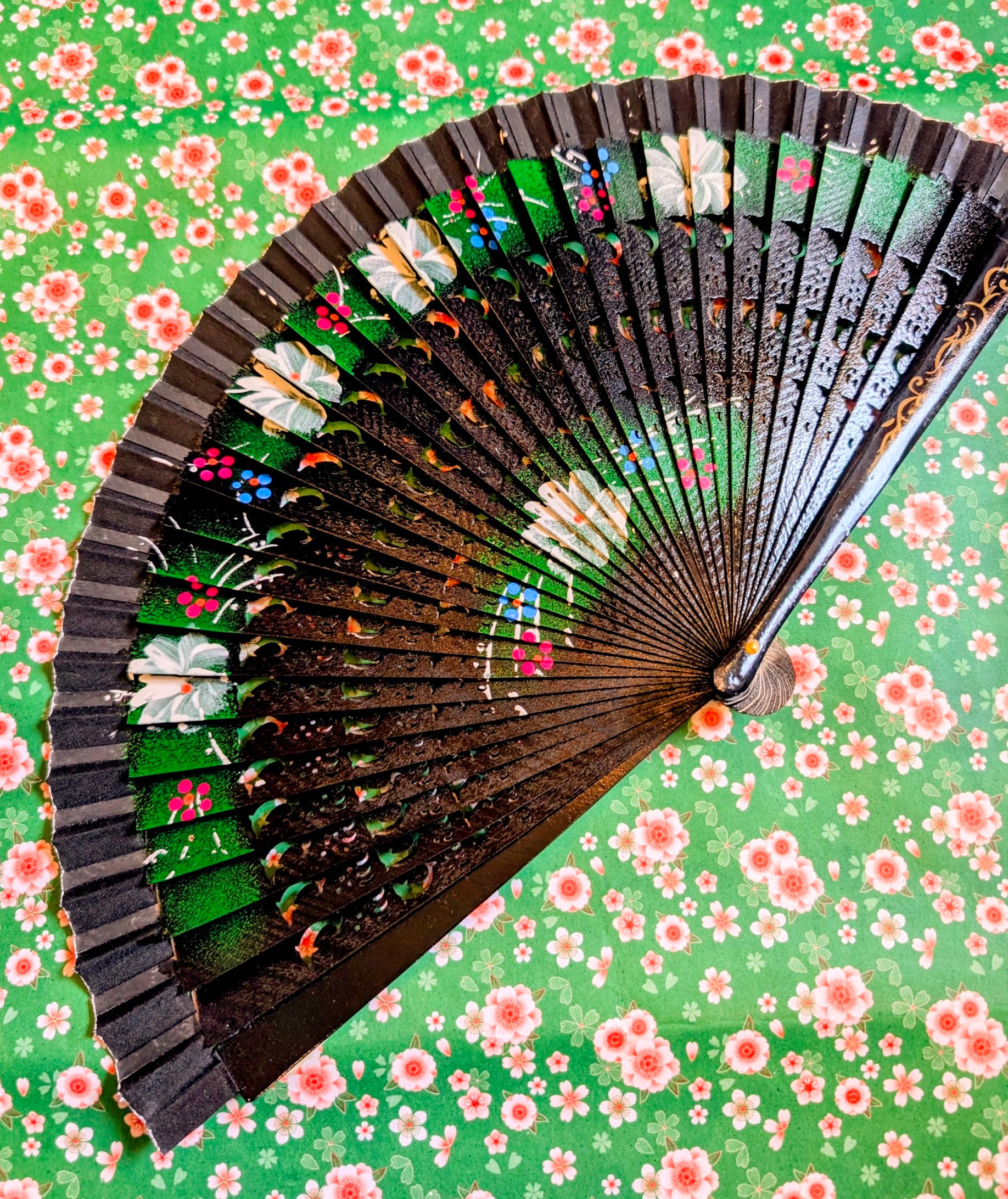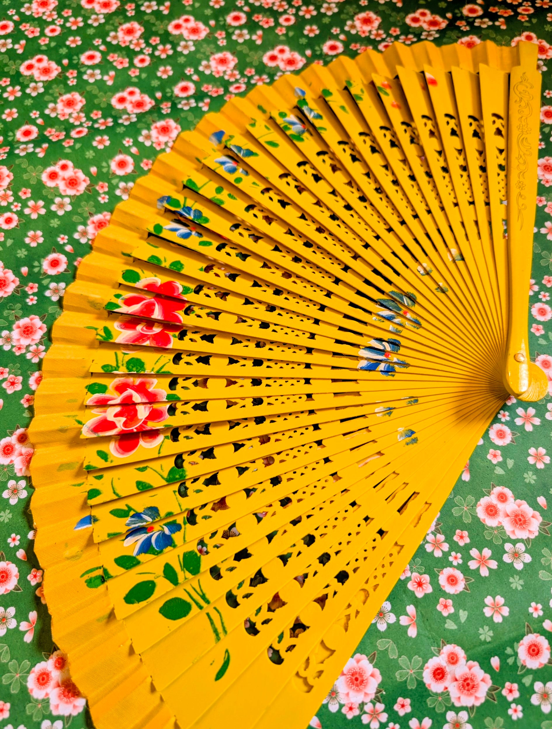 Be more peacock in the heat, handpainted wooden fans for dancing, parties, festivals and steamy menopause moments!!