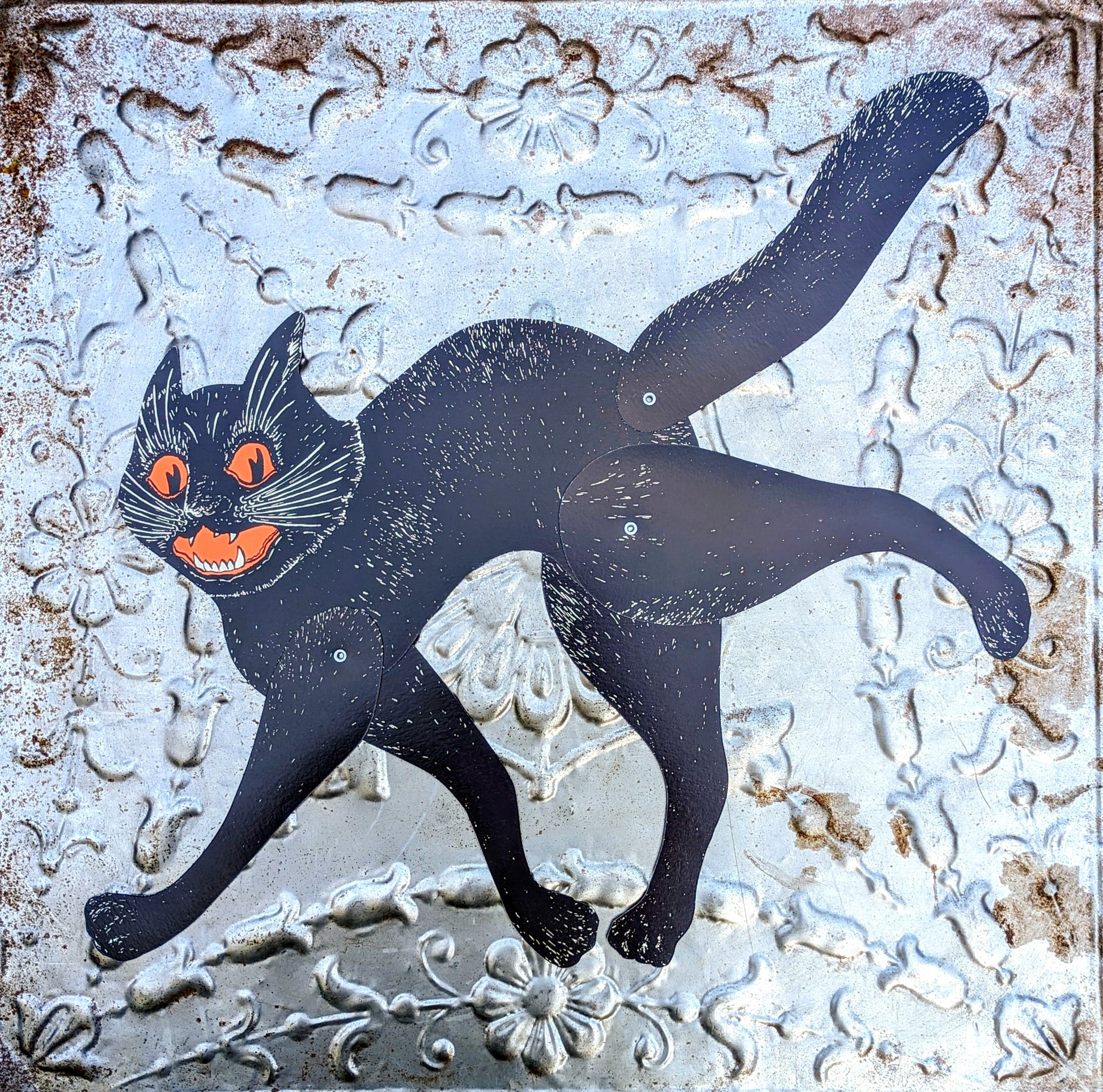 Terrifying American 1960s style, beautifully illustrated jointed black cat to make you shake and shudder!!