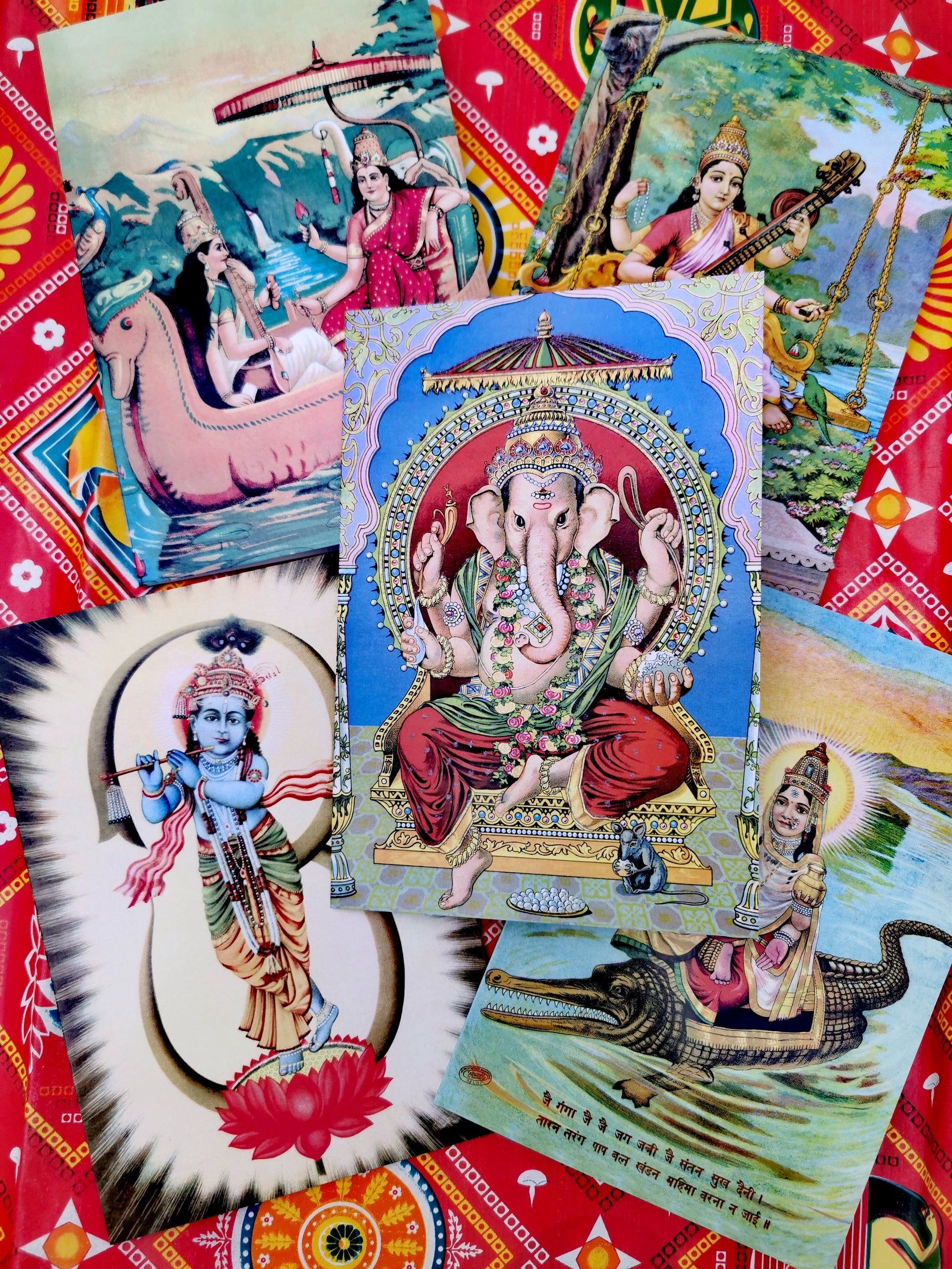 Vintage Indian god lithograph reproduction greetings cards set, a selection of our fave cards to send a bit of joy!!