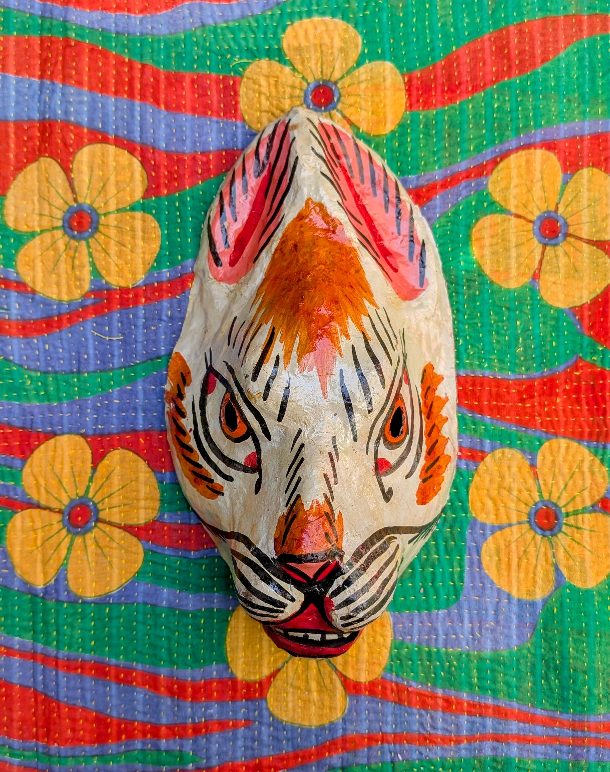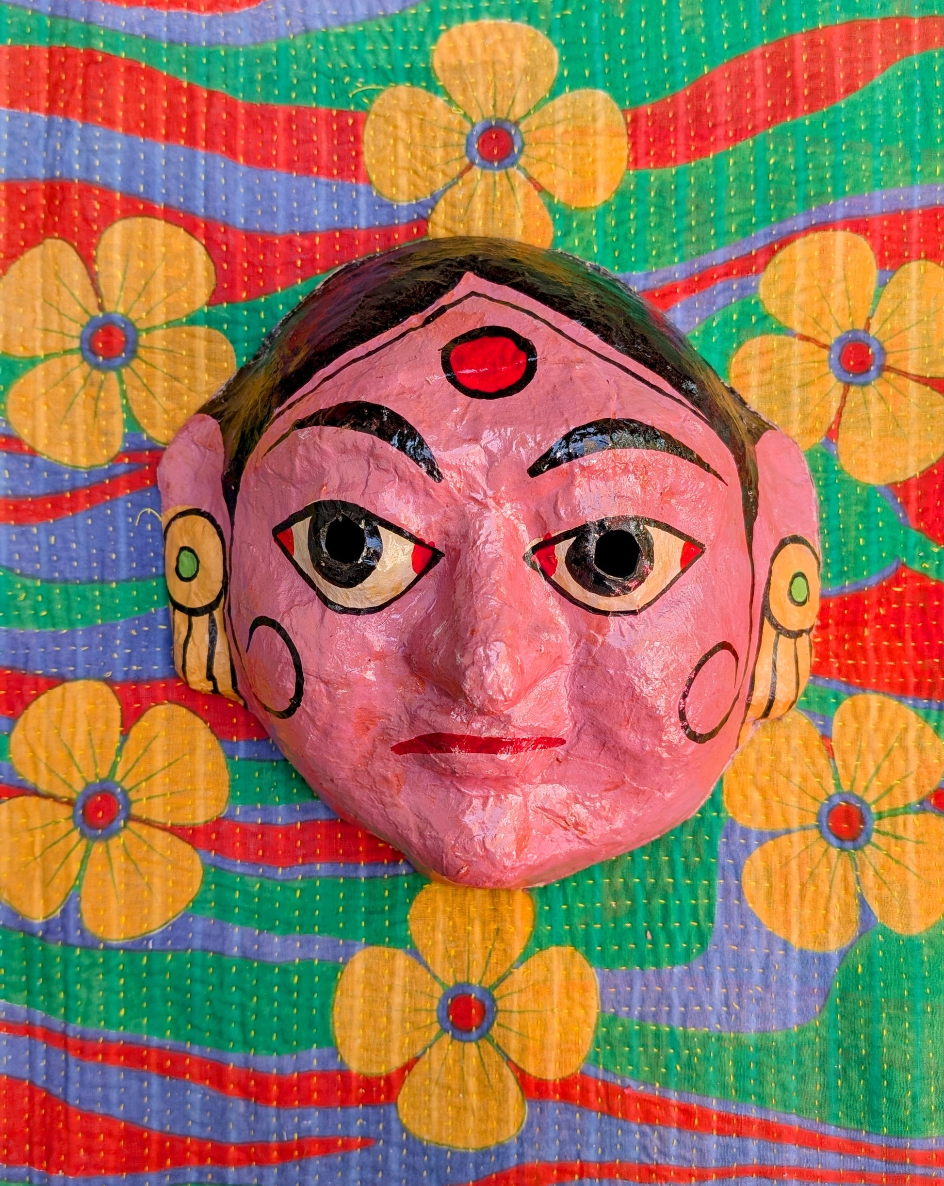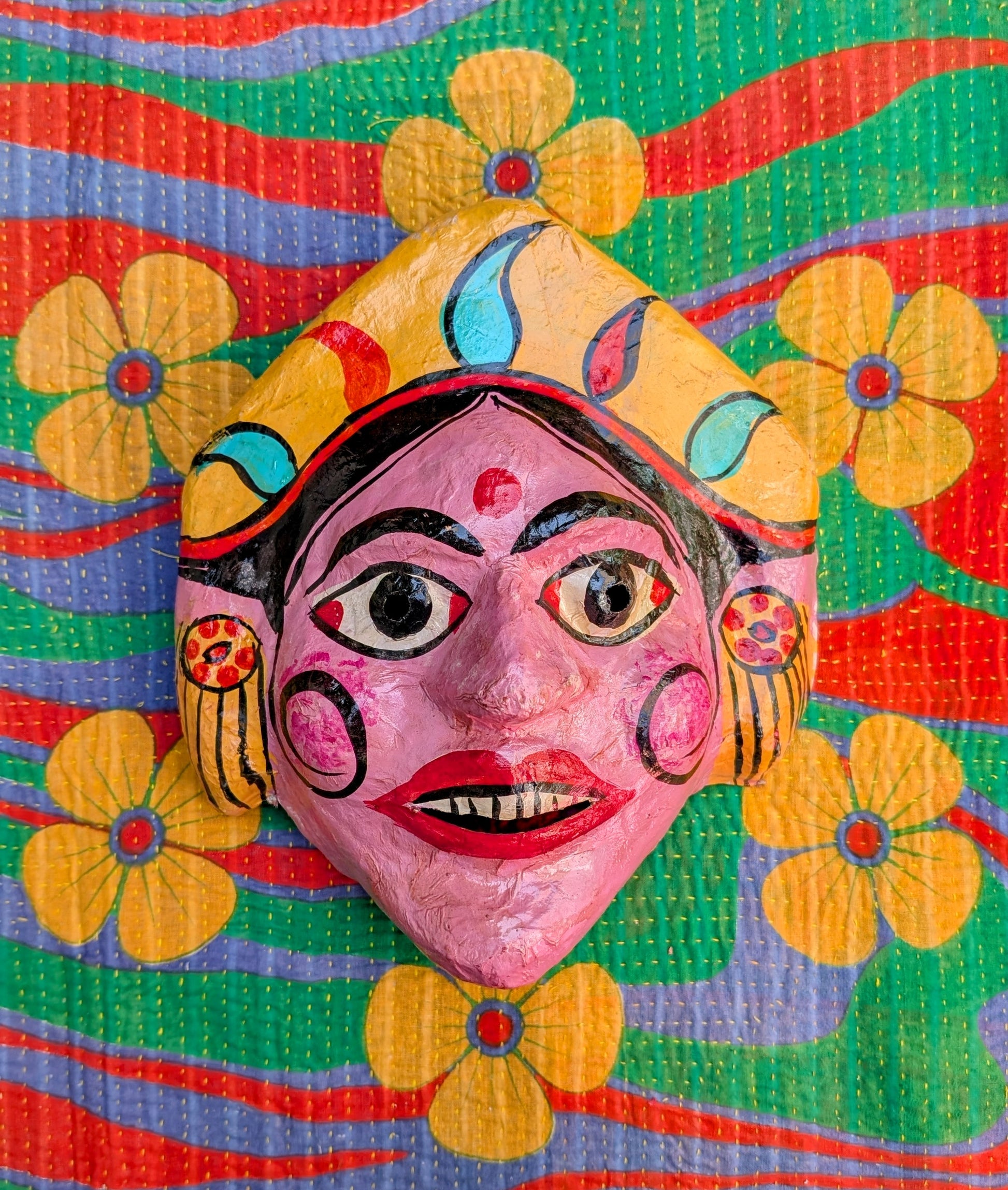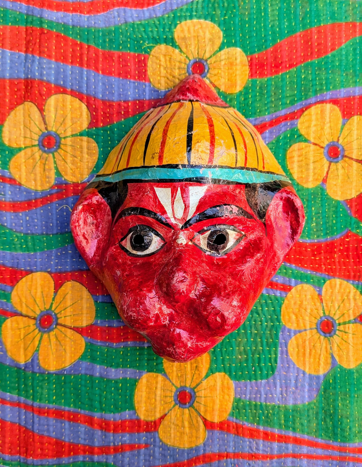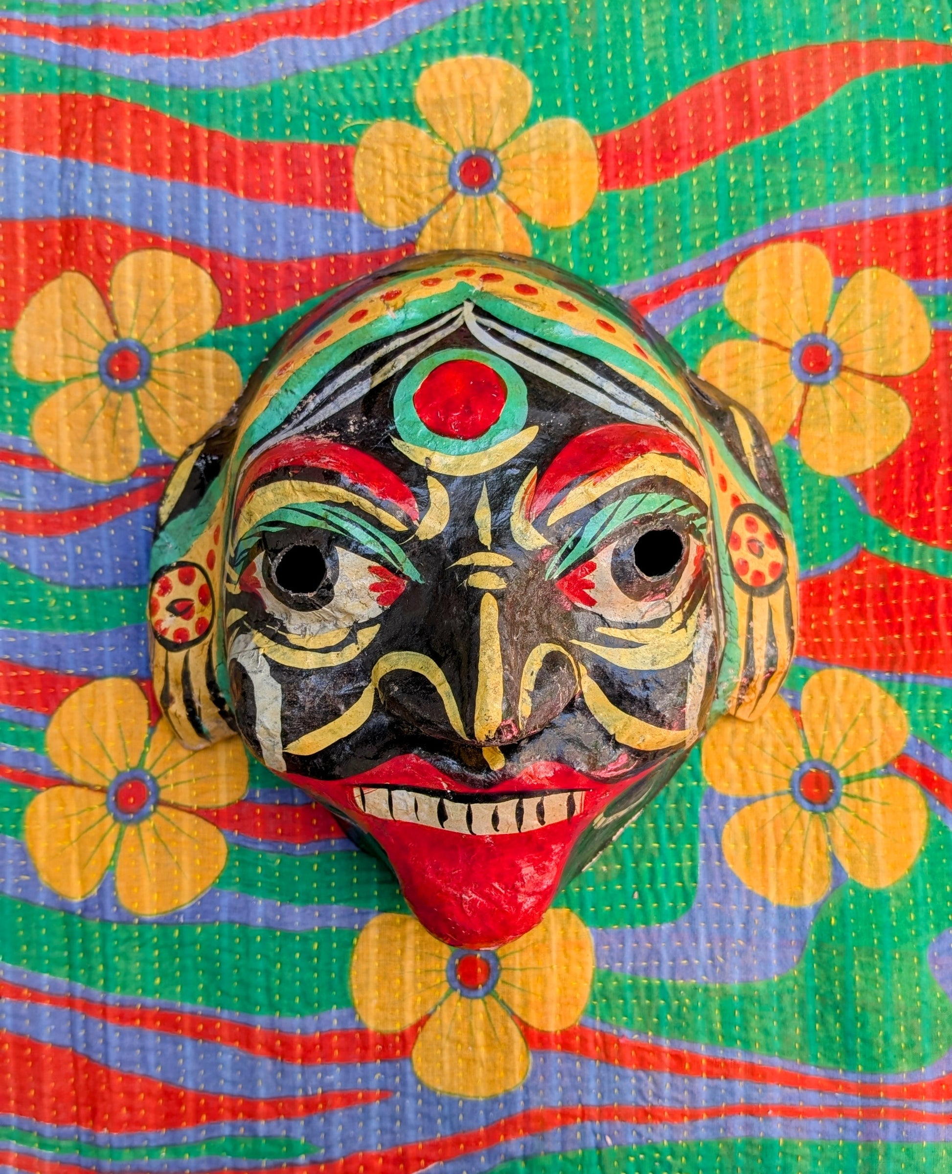 Made by hand from paper mache, these masks and wall art pieces are created for the many hindu festivals in India,and as protective wall pieces to keep the home safe. A dying art that it sadly being pushed out by the mass produced plastic alternatives coming from China. We always trying to source handmade items and keep these traditions alive, but as most of these aren't made now in Delhi, these are mainly vintage.