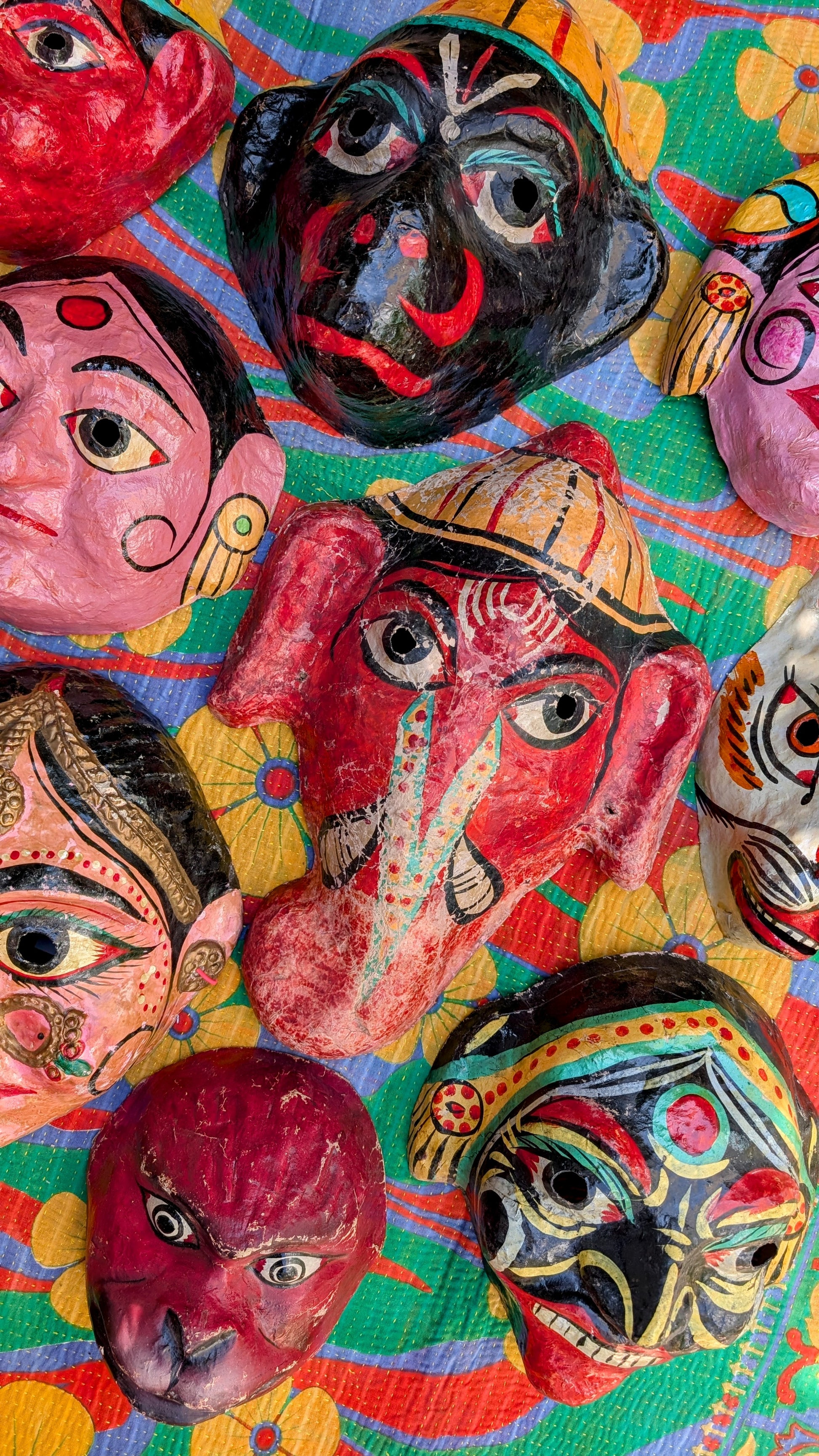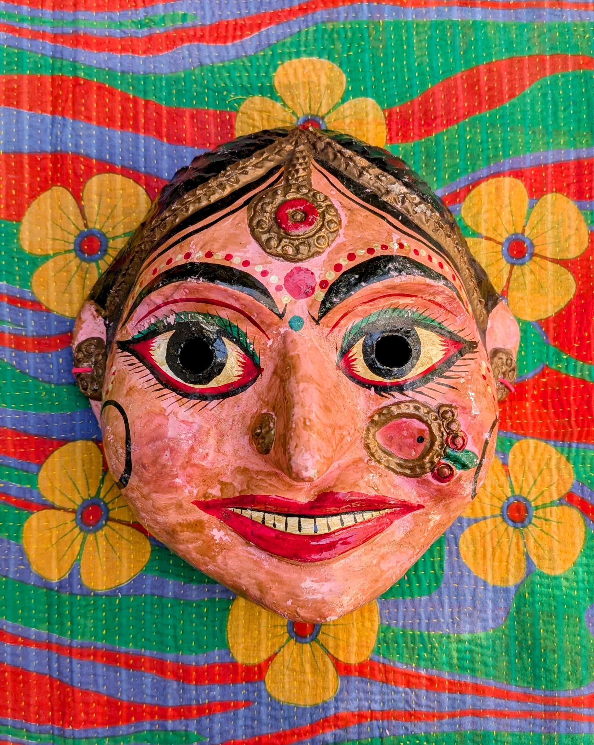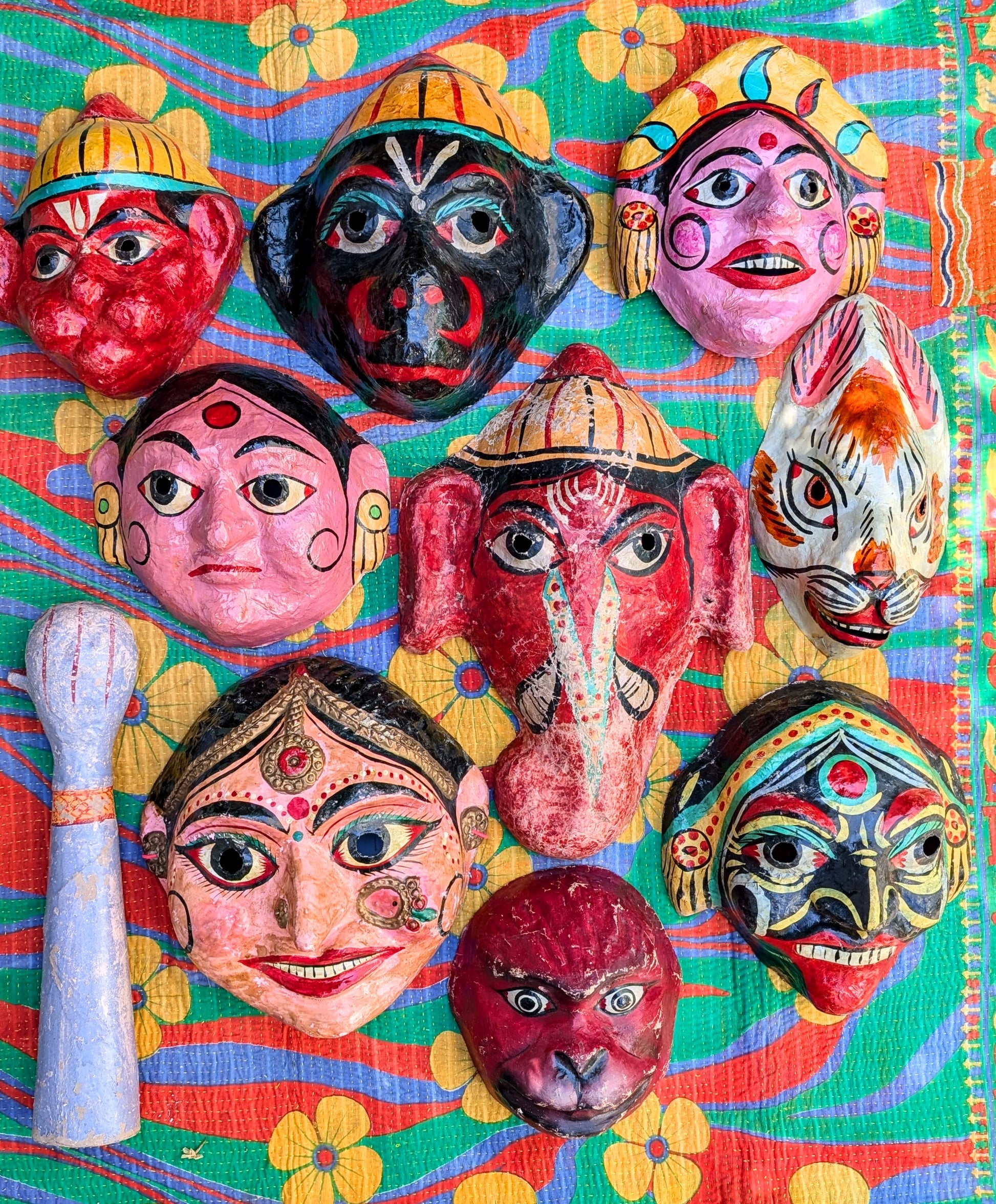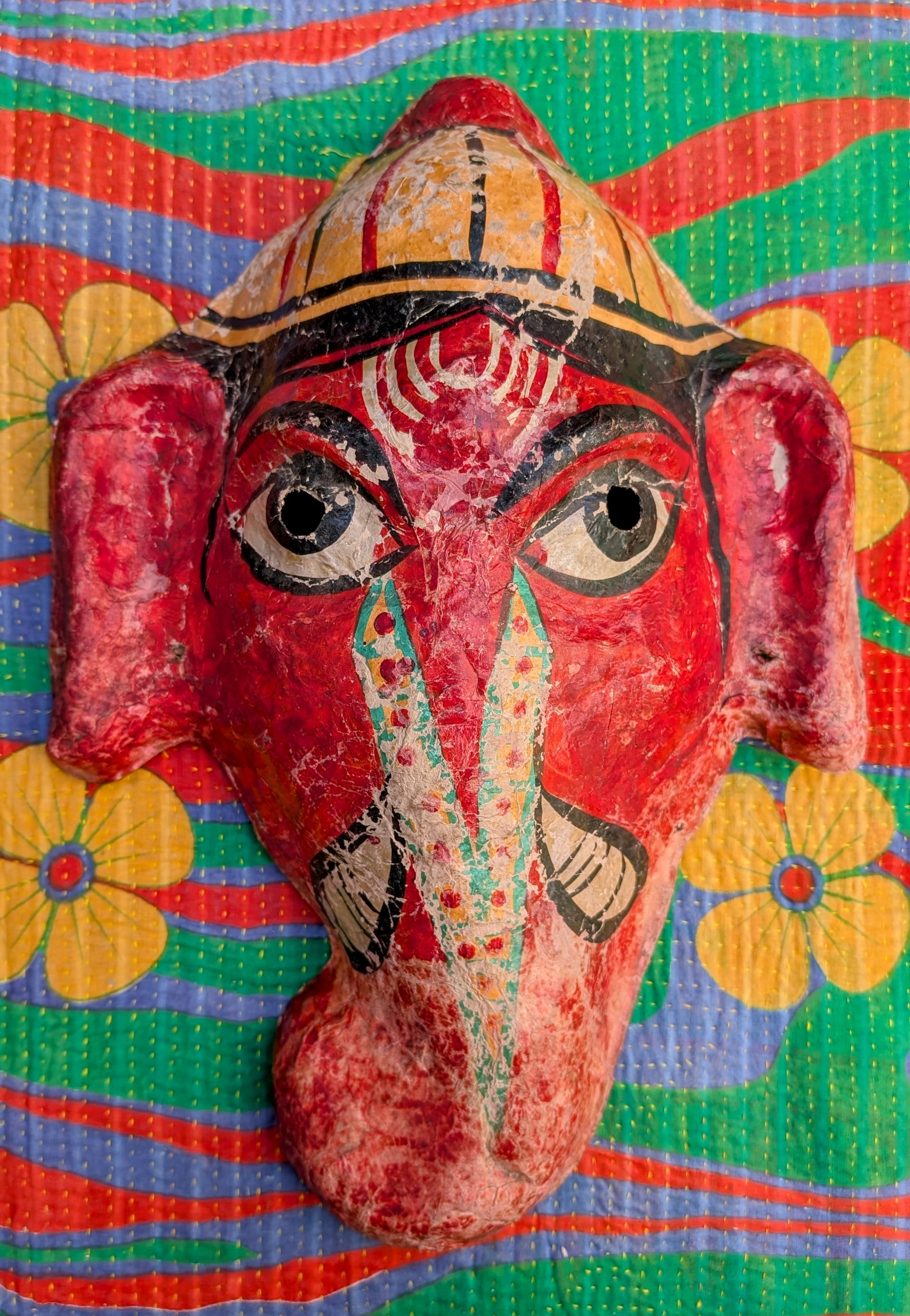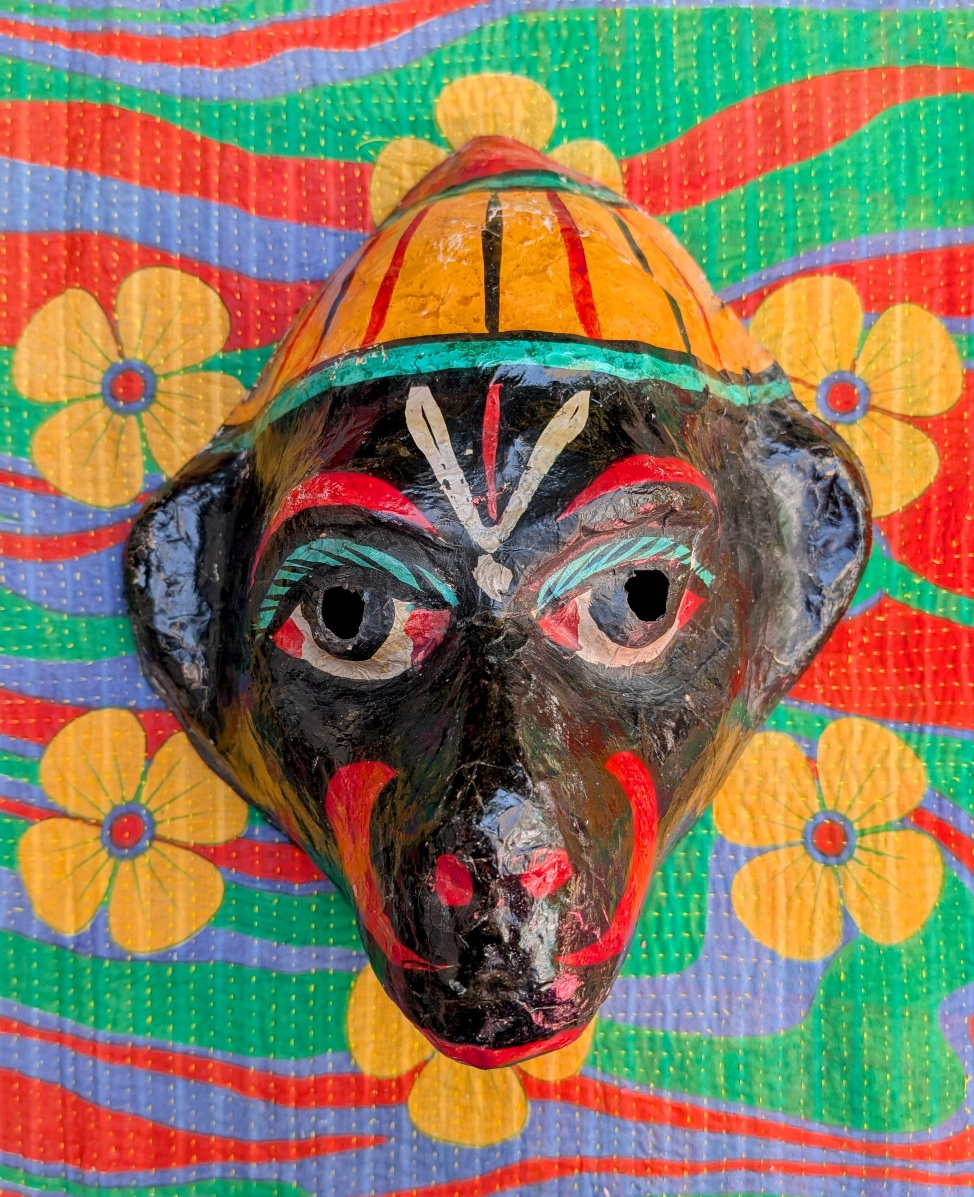 Made by hand from paper mache, these masks and wall art pieces are created for the many hindu festivals in India,and as protective wall pieces to keep the home safe. A dying art that it sadly being pushed out by the mass produced plastic alternatives coming from China. We always trying to source handmade items and keep these traditions alive, but as most of these aren't made now in Delhi, these are mainly vintage.