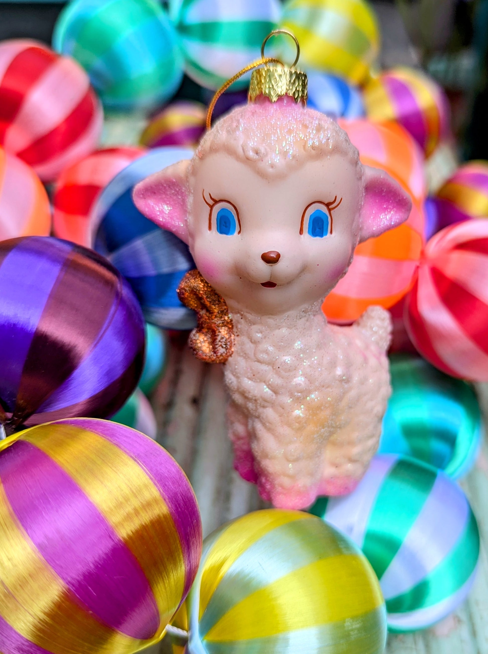 The kitschest kawaii little lamb vintage toy ...as a christmas decoration!