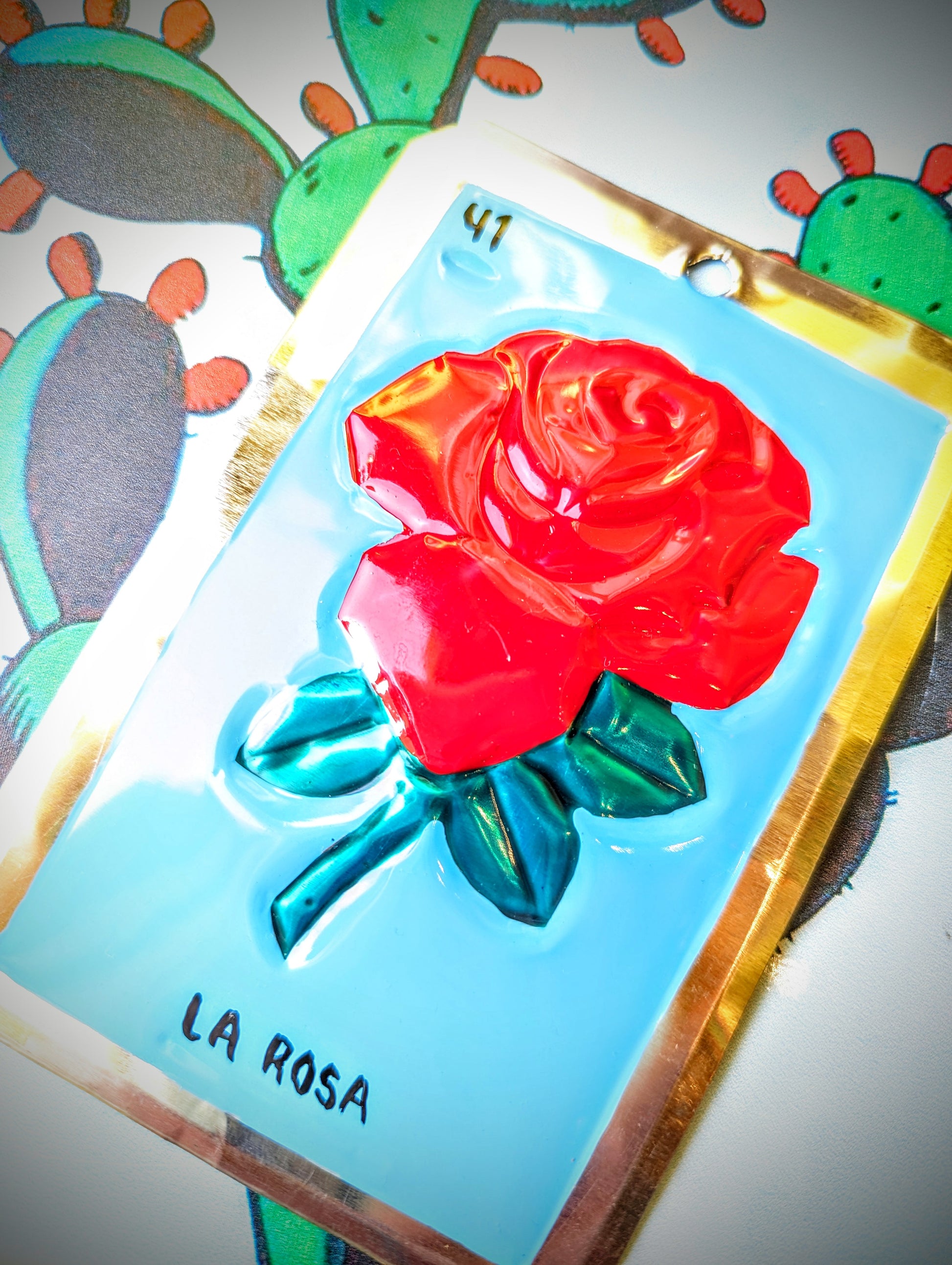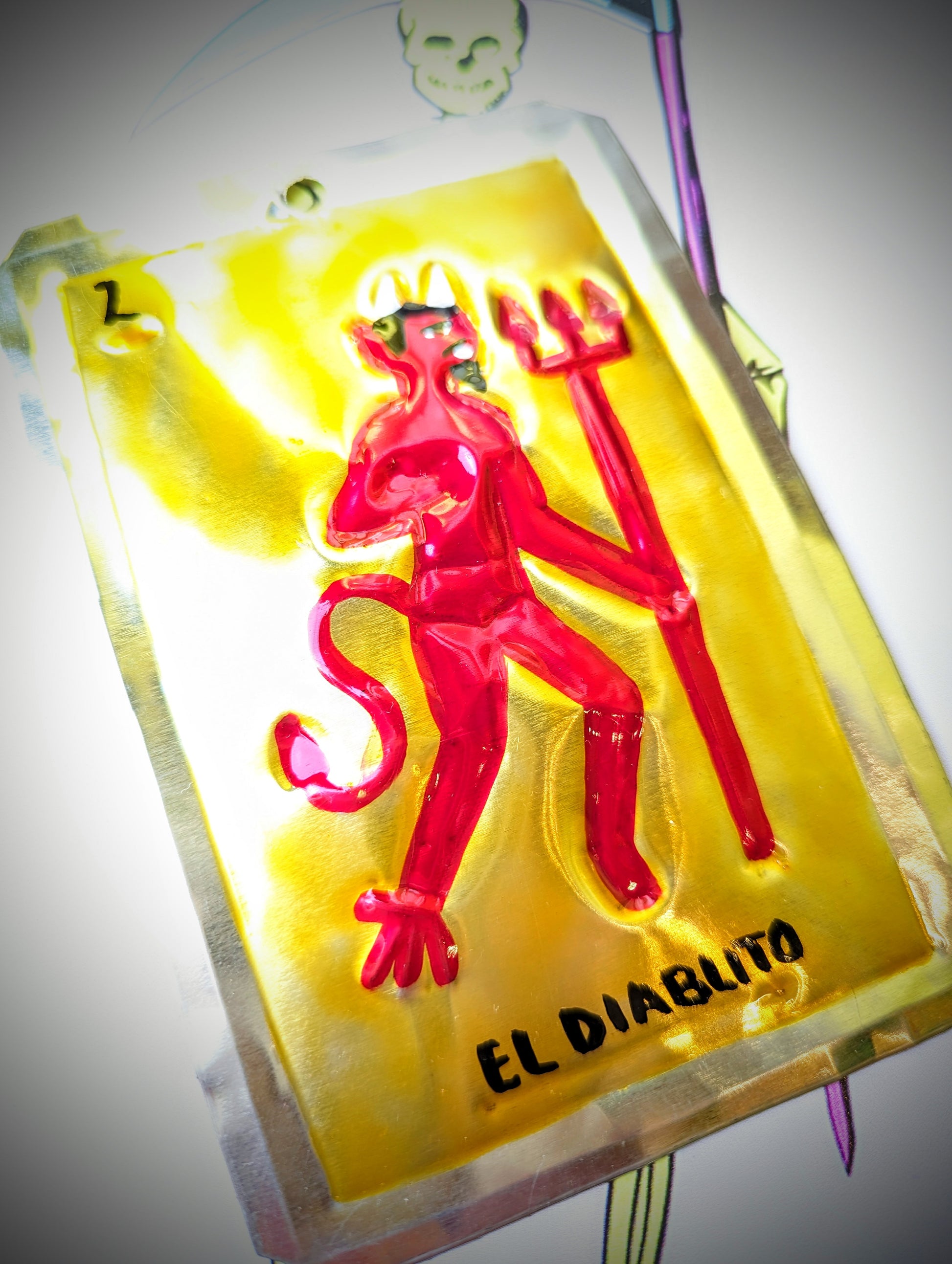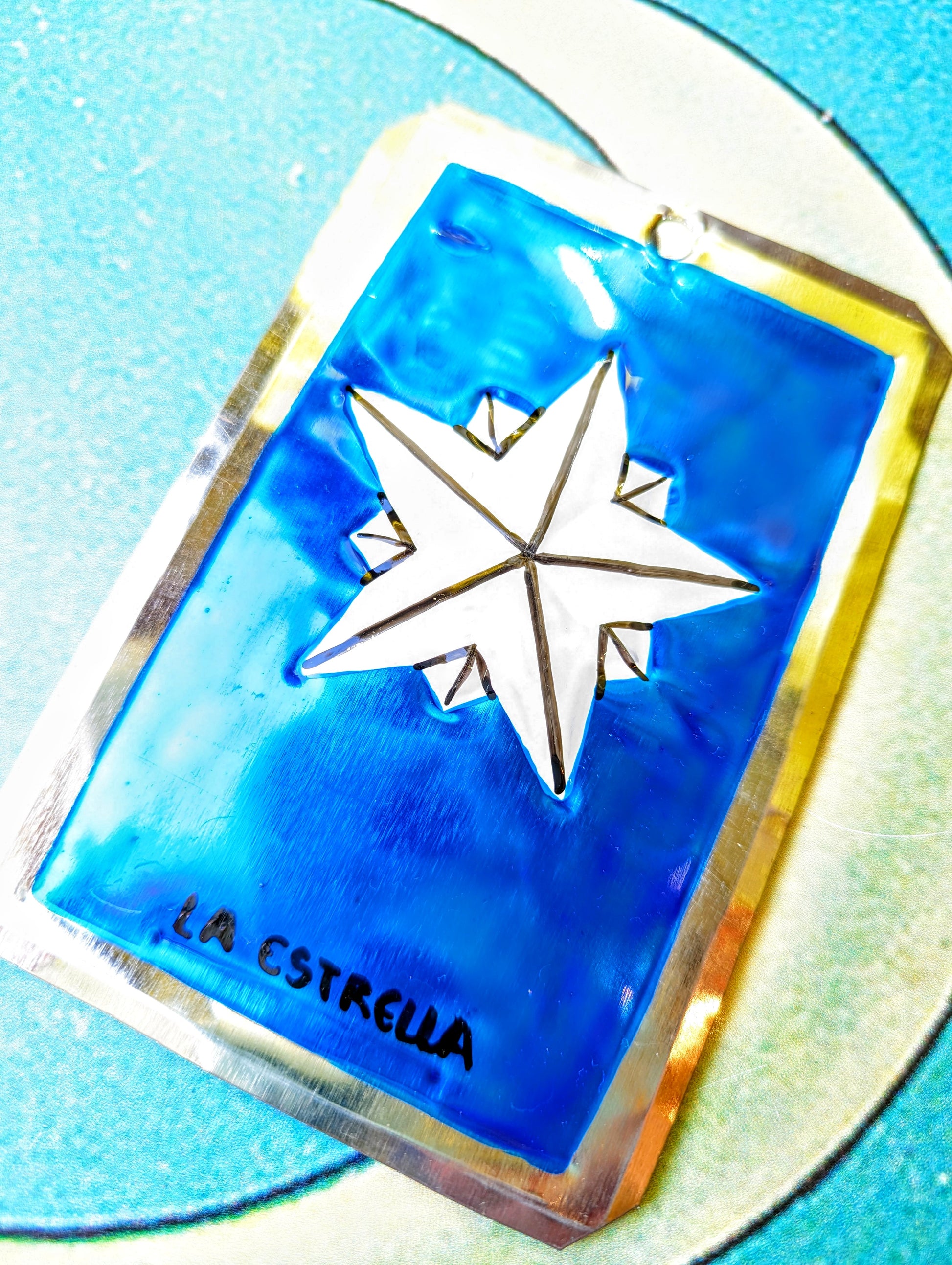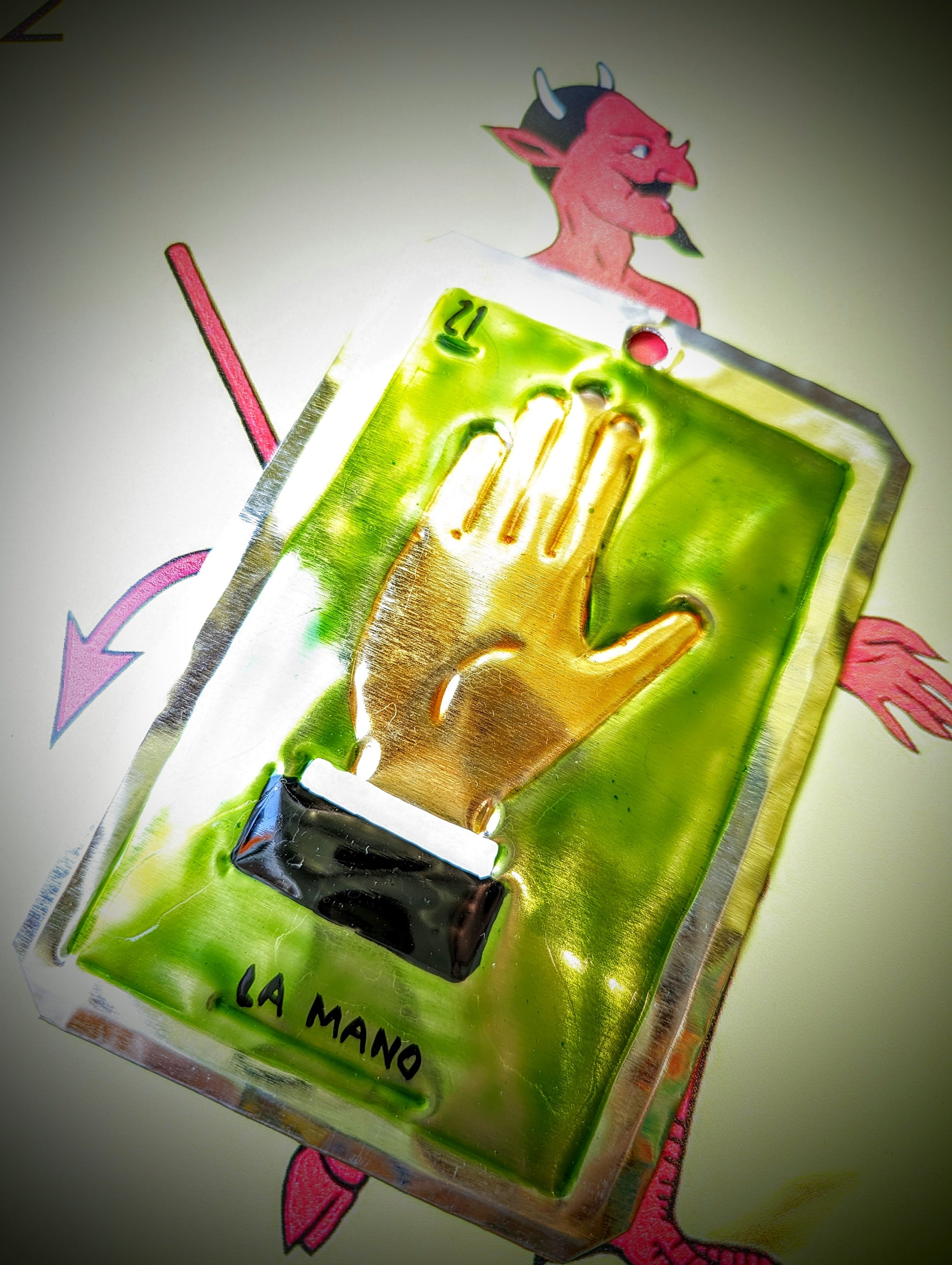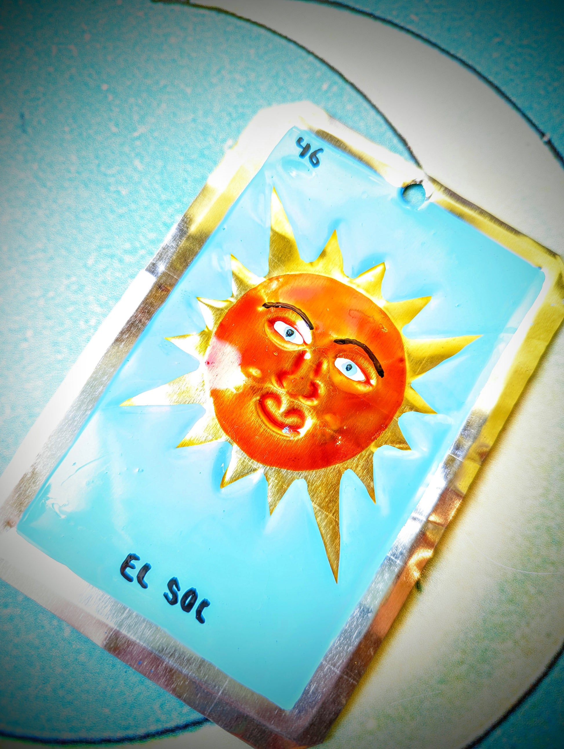 Fabulous shiny handmade tin plaques made by the tin artisans of Oaxaca in Mexico. Designs taken from the vintage Mexican Loteria game and hung to bring luck and fulfill wishes!