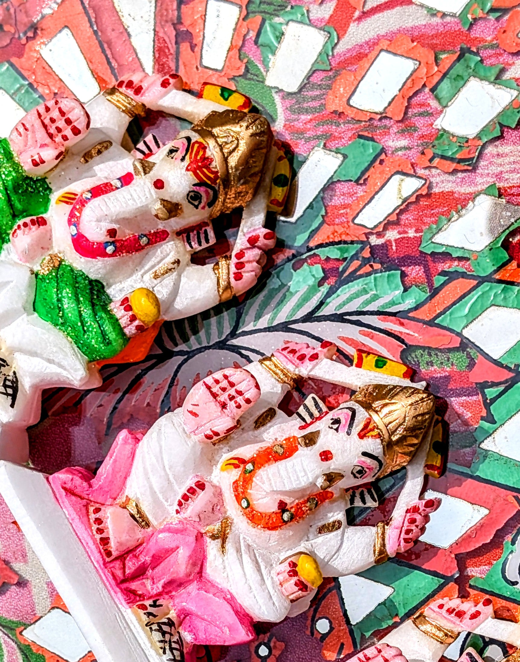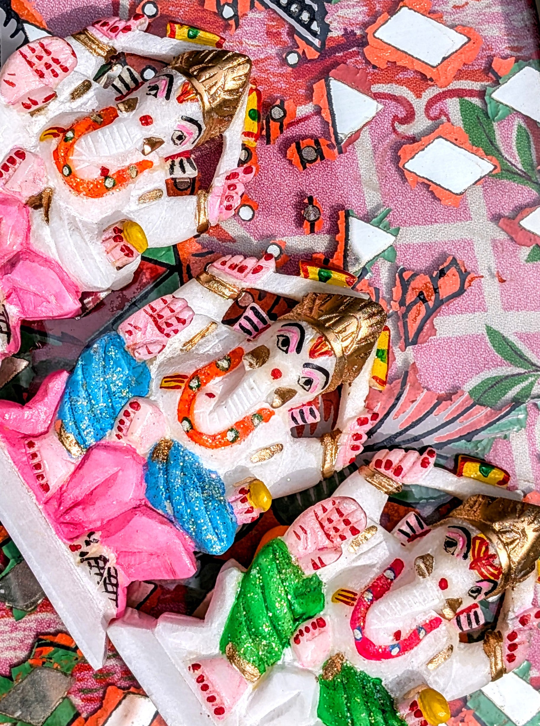 The most neon super kitsch Ganesh statues,,, hand carved in marble , then painted with neon and glitter colours..... India doing what it does best!!!!