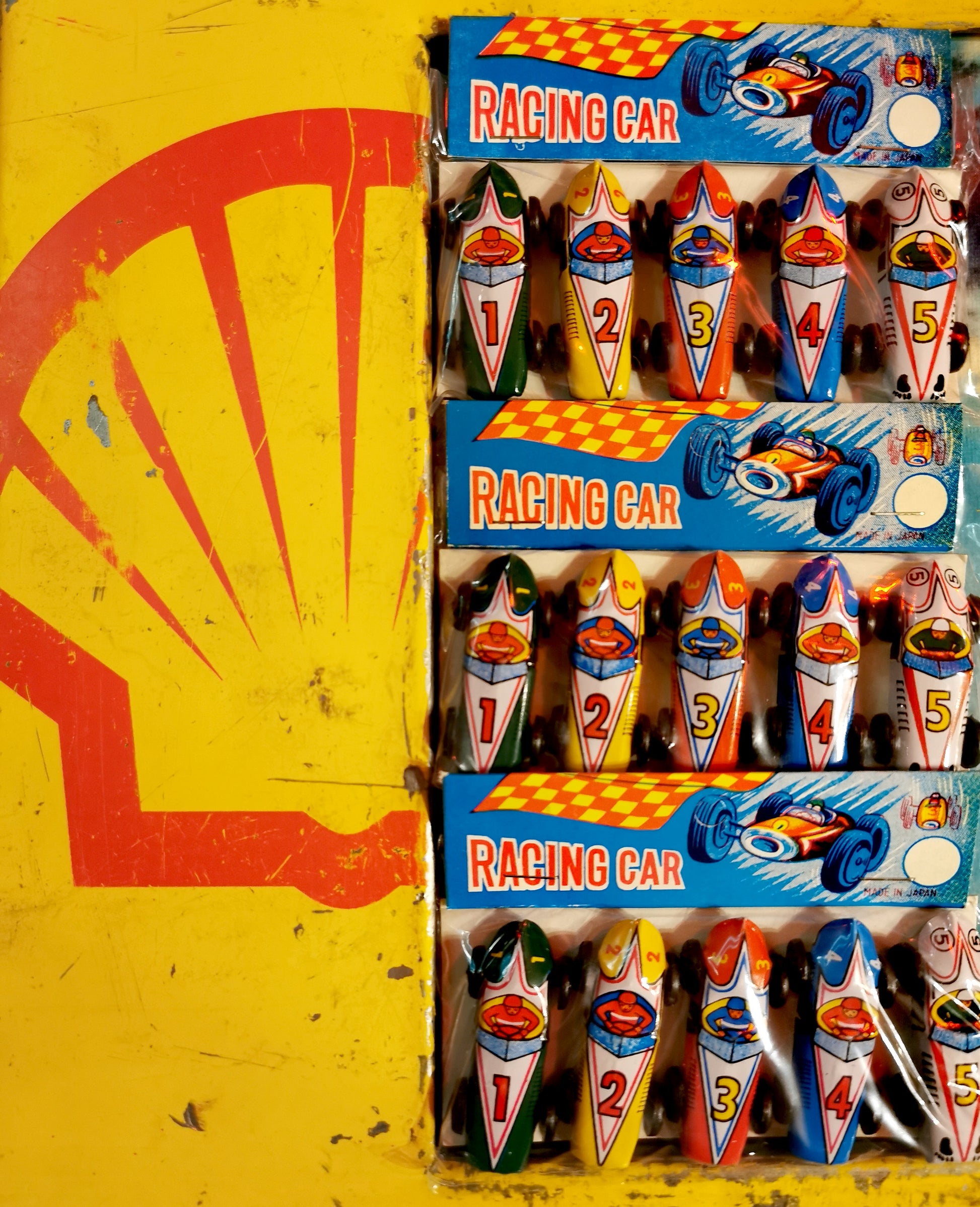 Printed tin and plastic wheels.