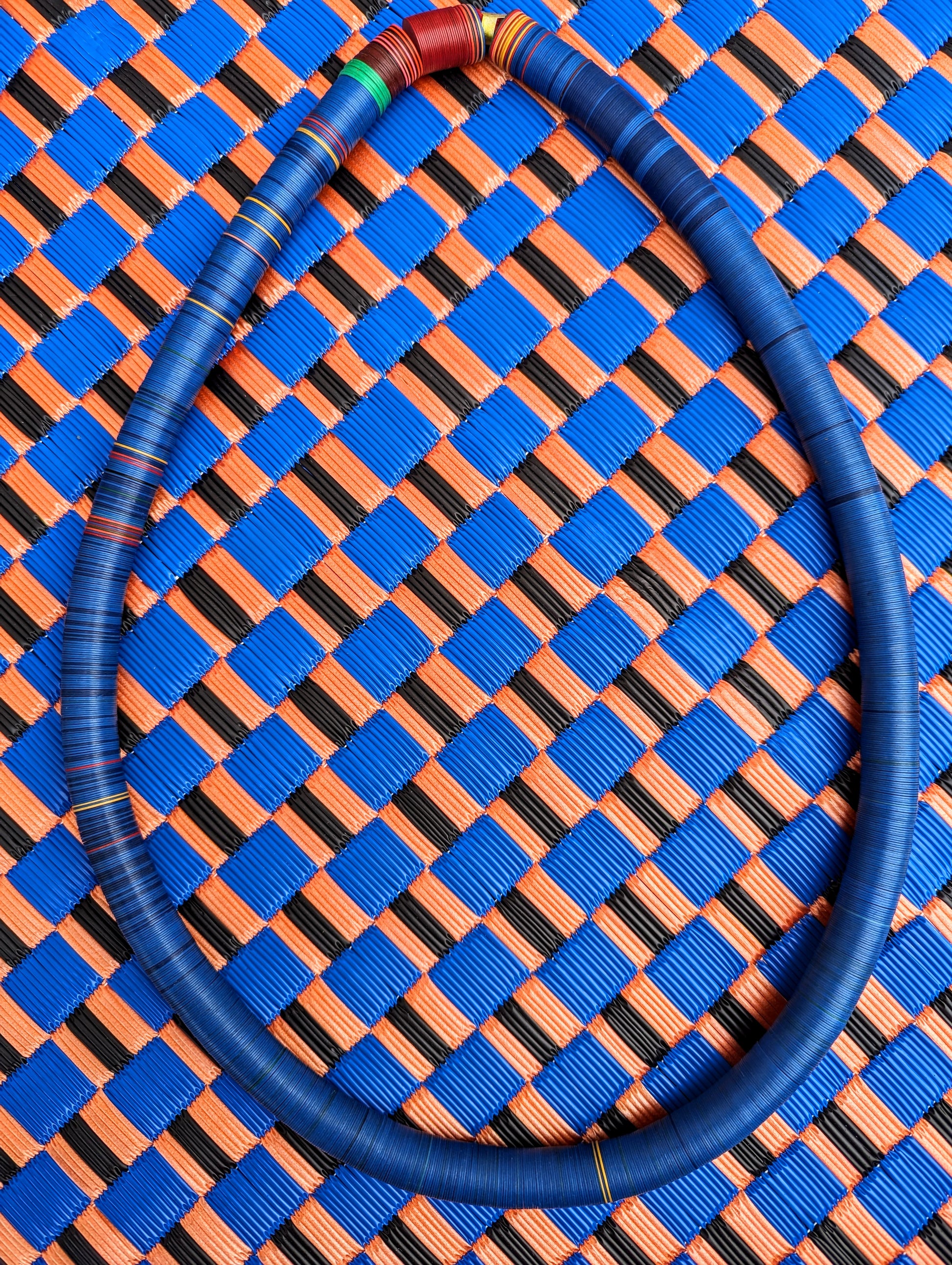 Statement stunning subtle shades of blue and indigo in these vintage necklaces made by hand of hundreds of discs die- cut from any plastic, bakelite,vinyl and vulcanite that could be found!