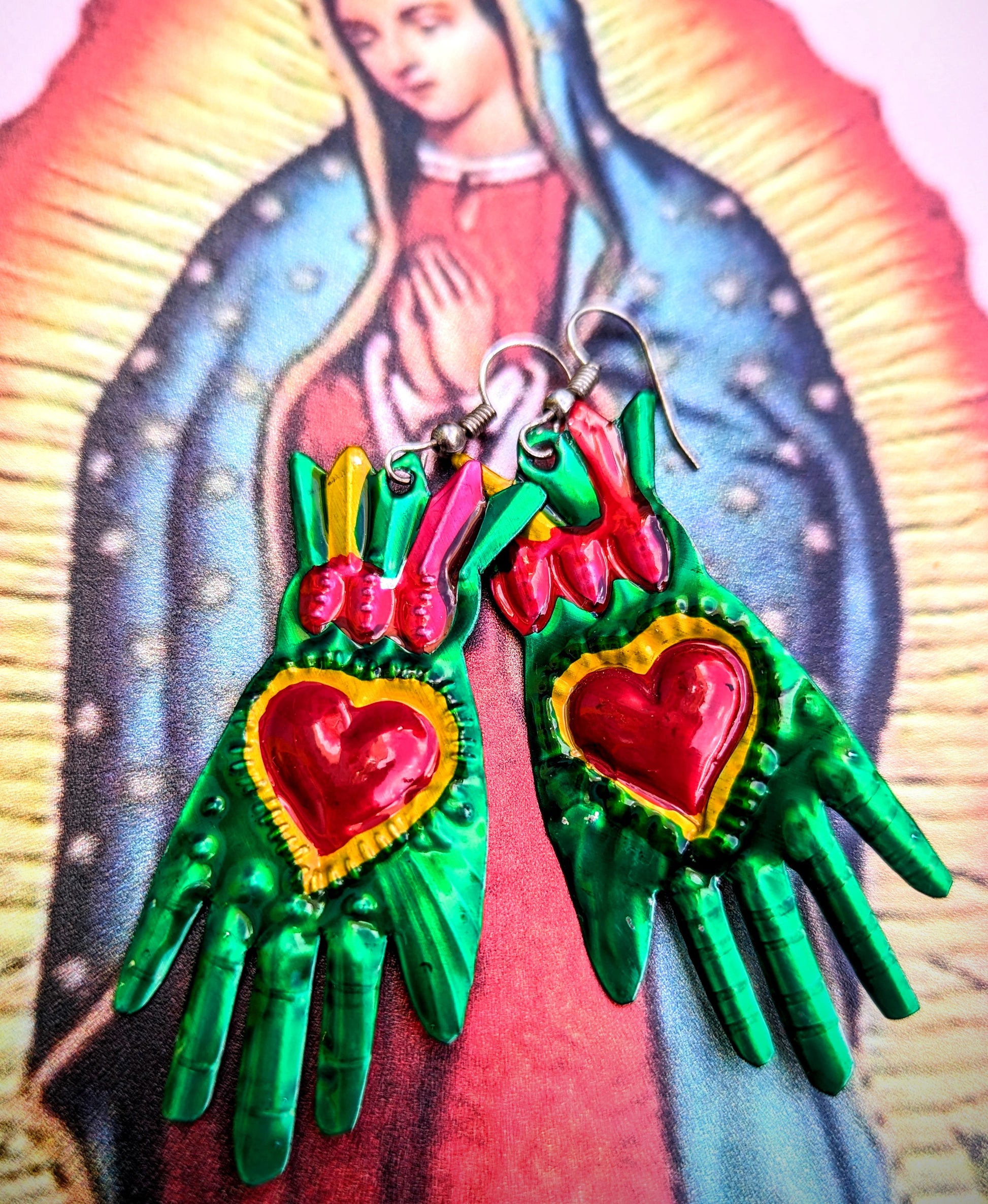 These became popular in Mexico when a self portrait by Frida Kahlo was exhibited with her wearing a pair of hand earrings gifted to her by Picasso!