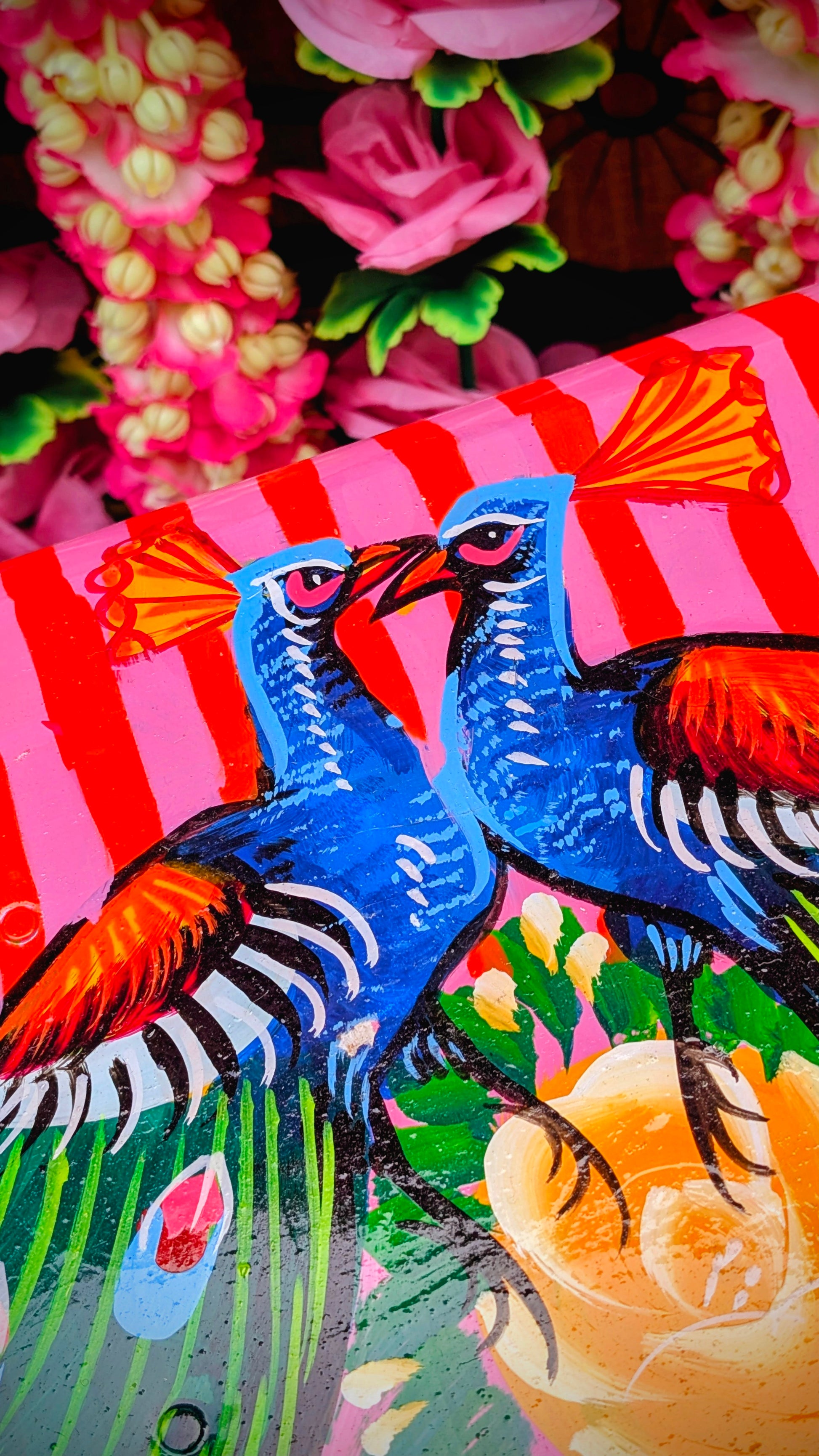 Handpainted in Pakistani by the artisans that paint the fabulously flamboyant trucks! These trunks are painted with heavy duty enamel paints onto recycled metal trunks. Super useful, beautiful storage!!....toys, textiles, paperwork or treasures will be safe and hidden away🏵️🌺🌼