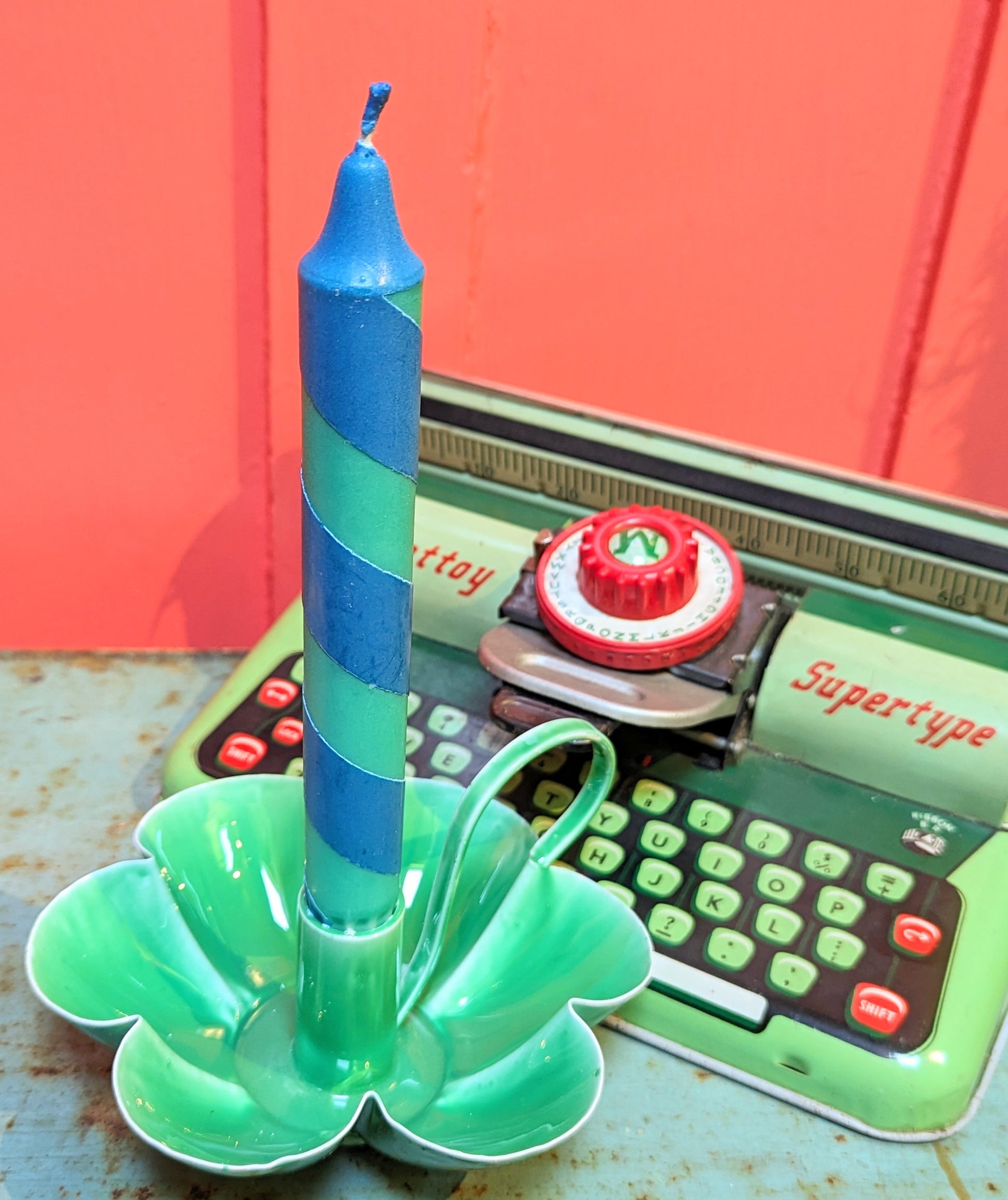 Pastel coloured scalloped metal candleholders with super Asian vintage appeal!!!
