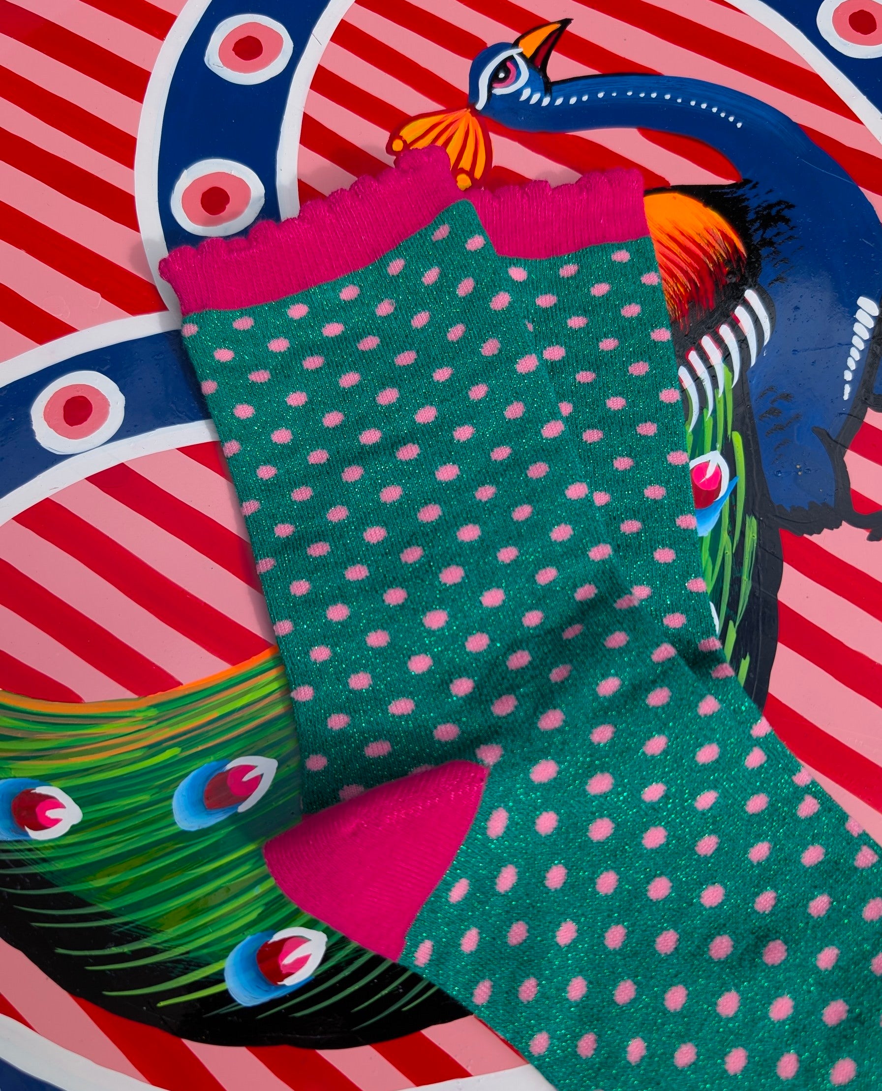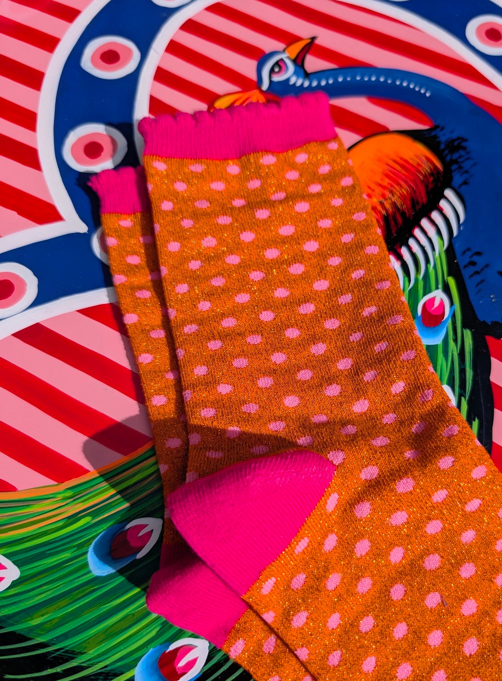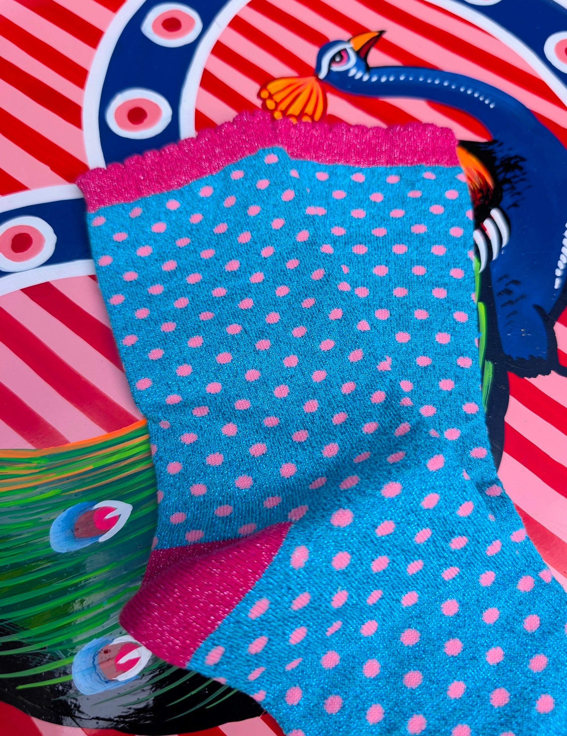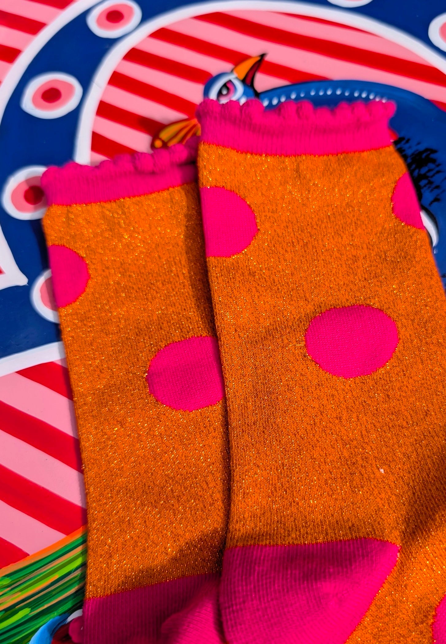 Disco-tastic socks, soft to the touch, made from a mix of cotton, spandex and lurex!