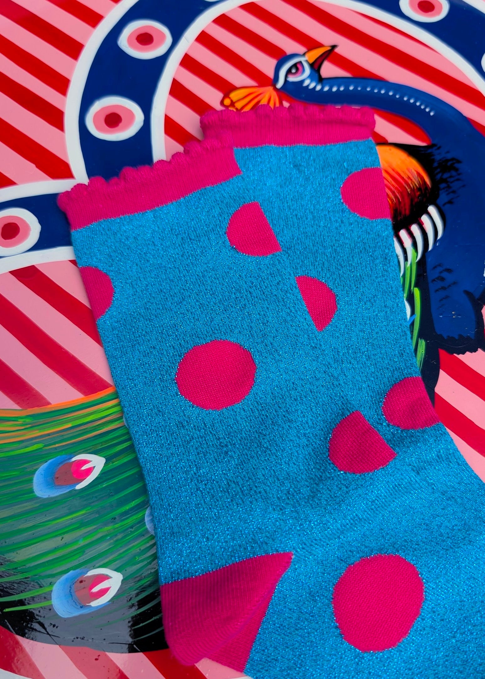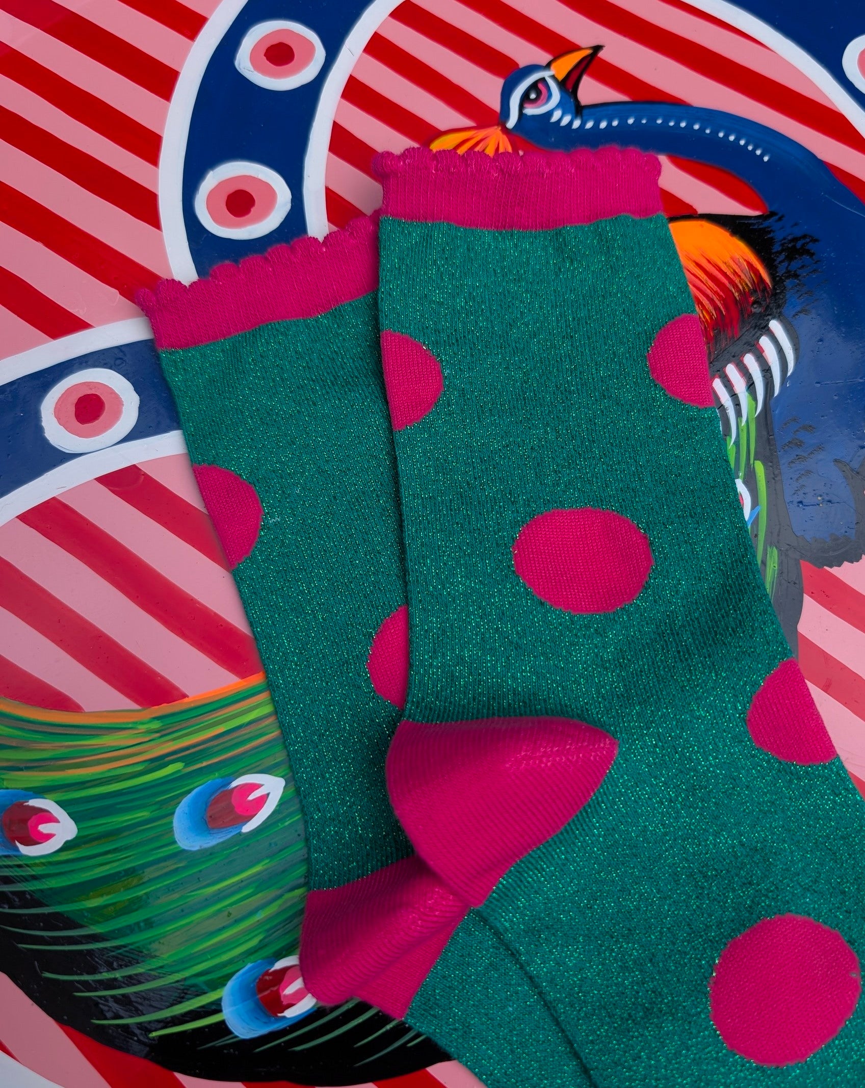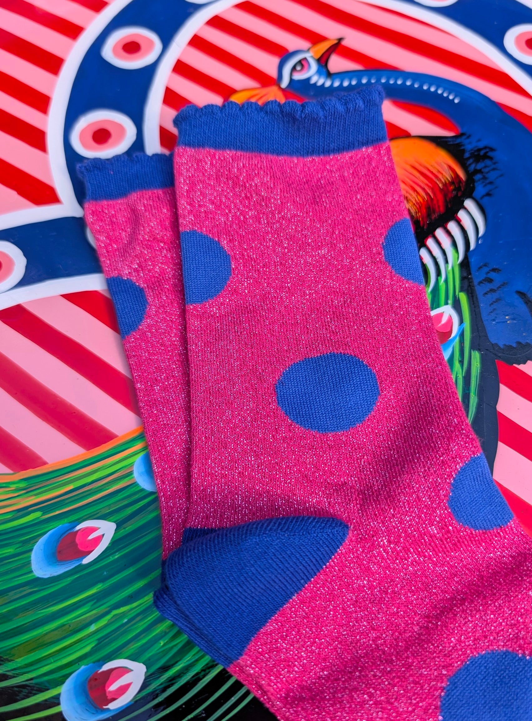 Disco-tastic socks, soft to the touch, made from a mix of cotton, spandex and lurex!