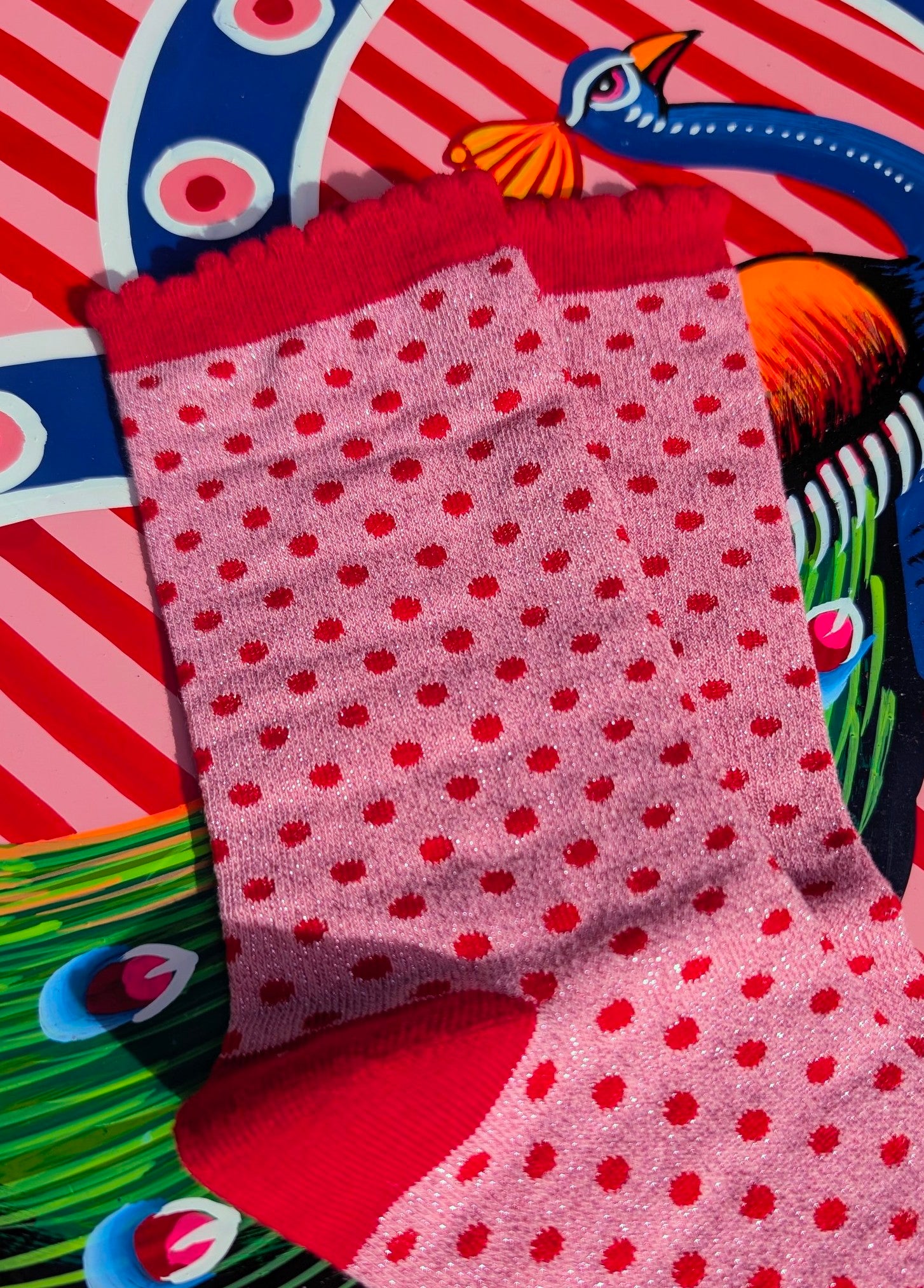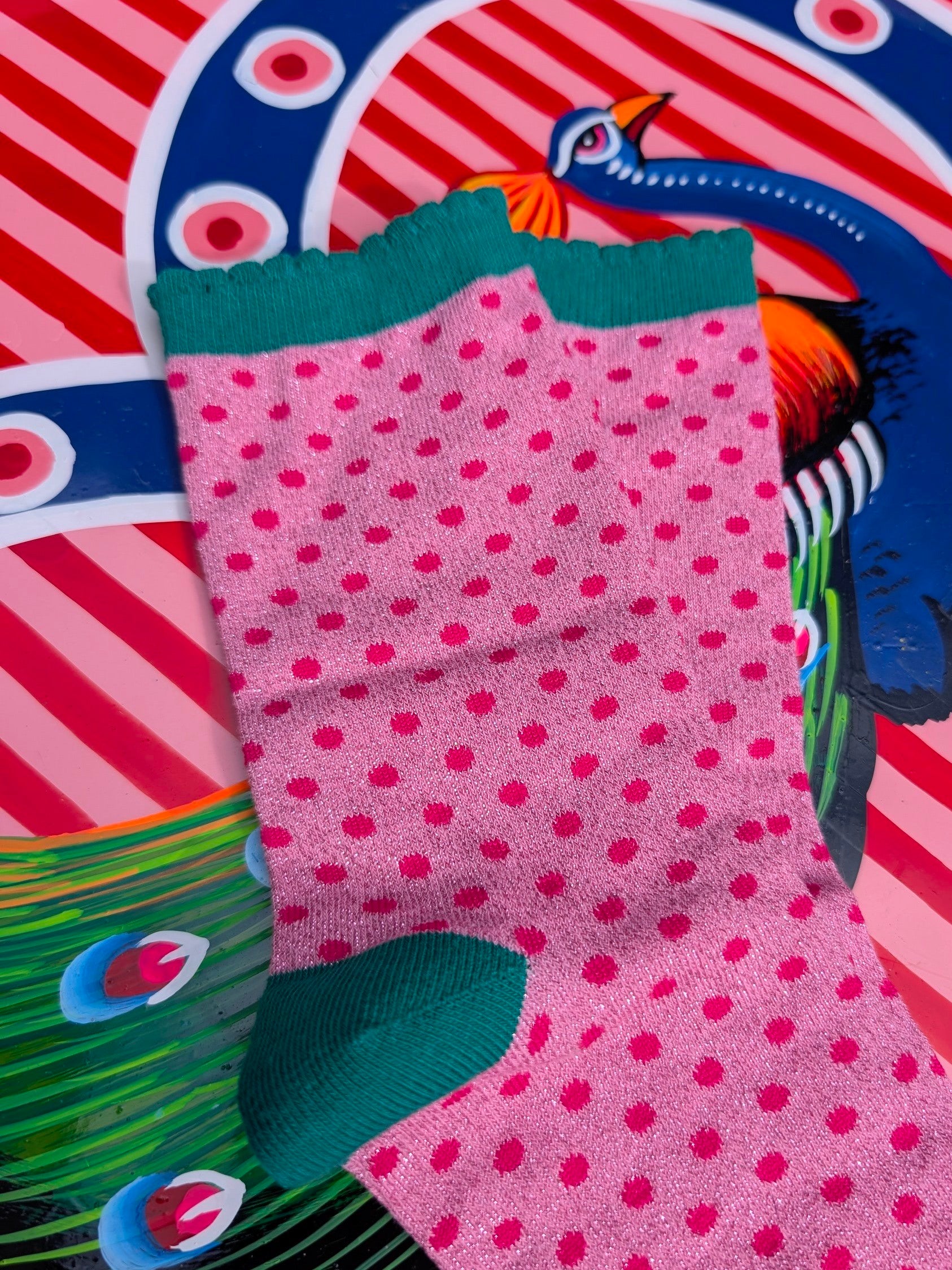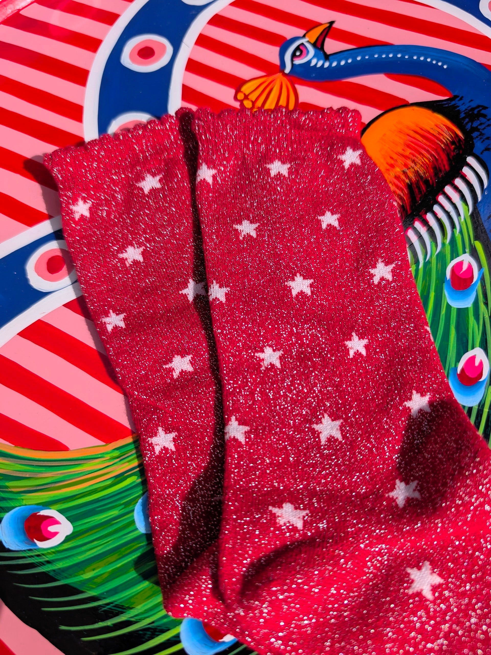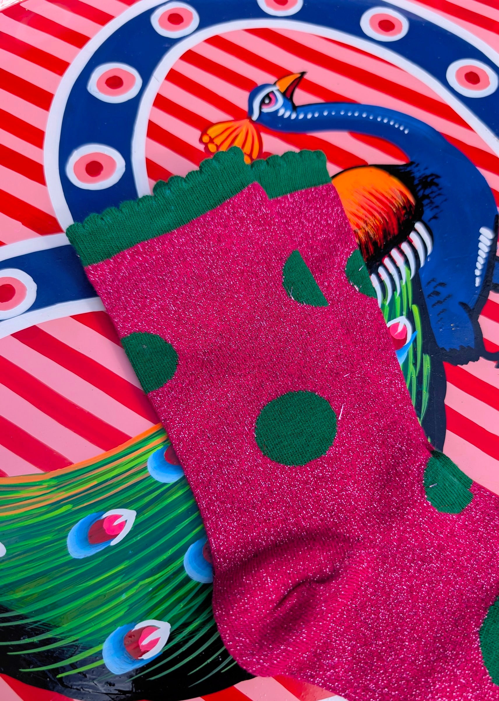 Disco-tastic socks, soft to the touch, made from a mix of cotton, spandex and lurex!