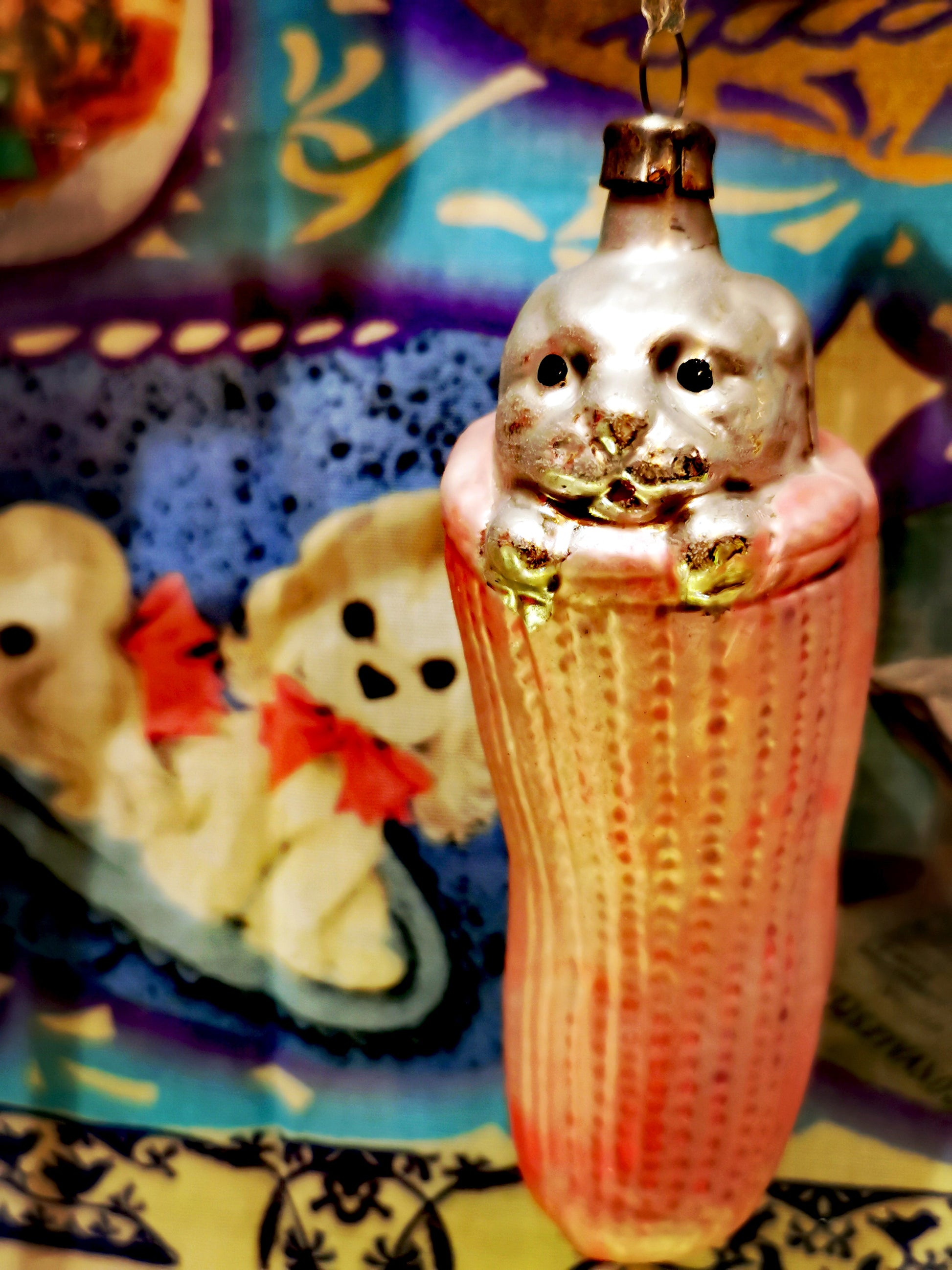 This German mouth blown and lovingly hand painted Puppy in a sock decoration will bring some Christmas splendor to your house and tree.